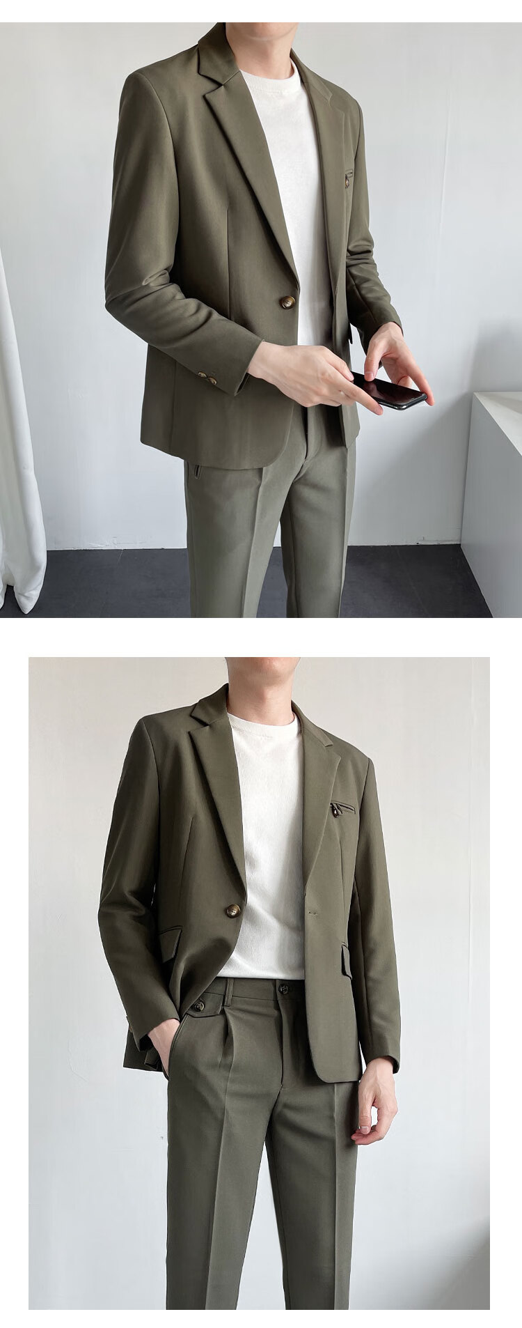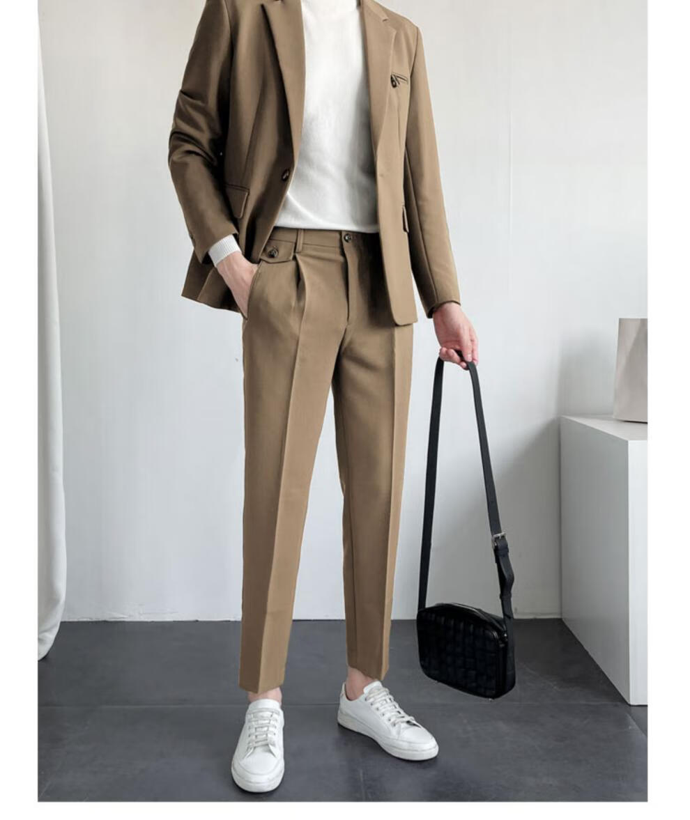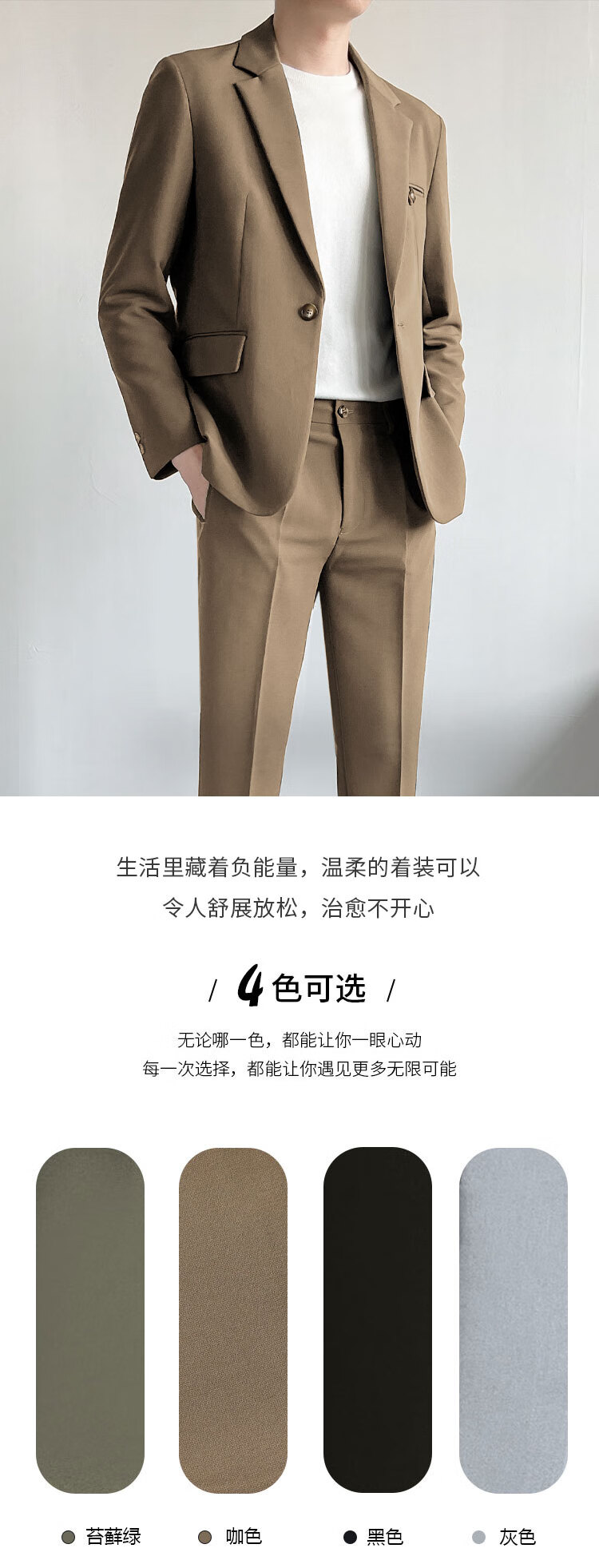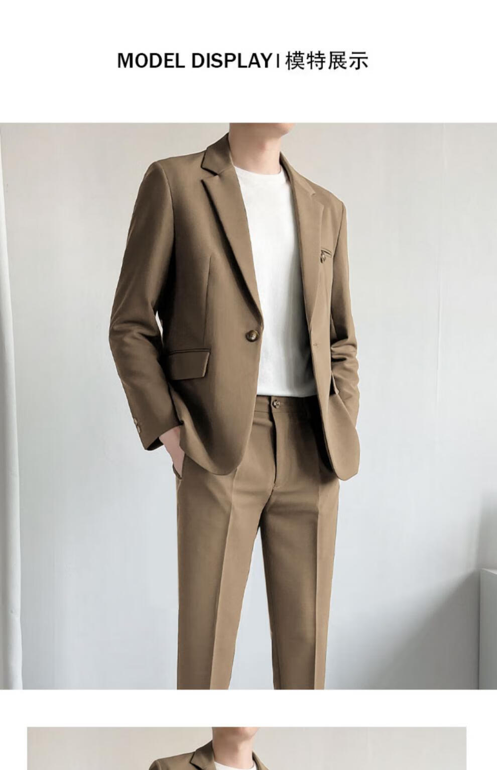 ROMON Casual Autumn and Winter Suit Men's Brown Loose, Handsome, Trendy and Mature Style Small Suit Jacket Brown Two-piece Suit + Pants L