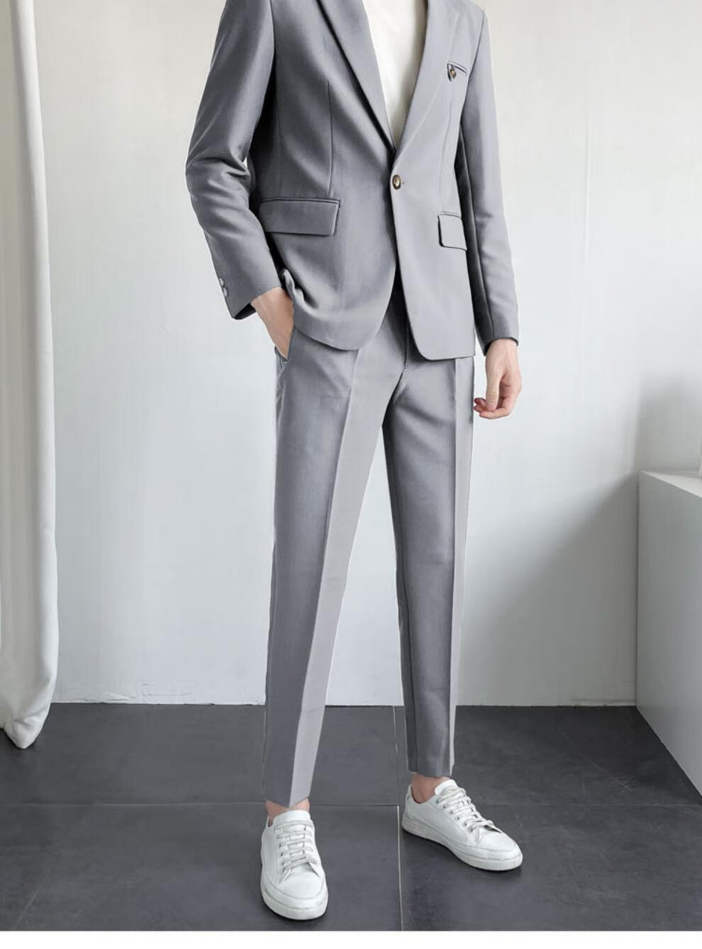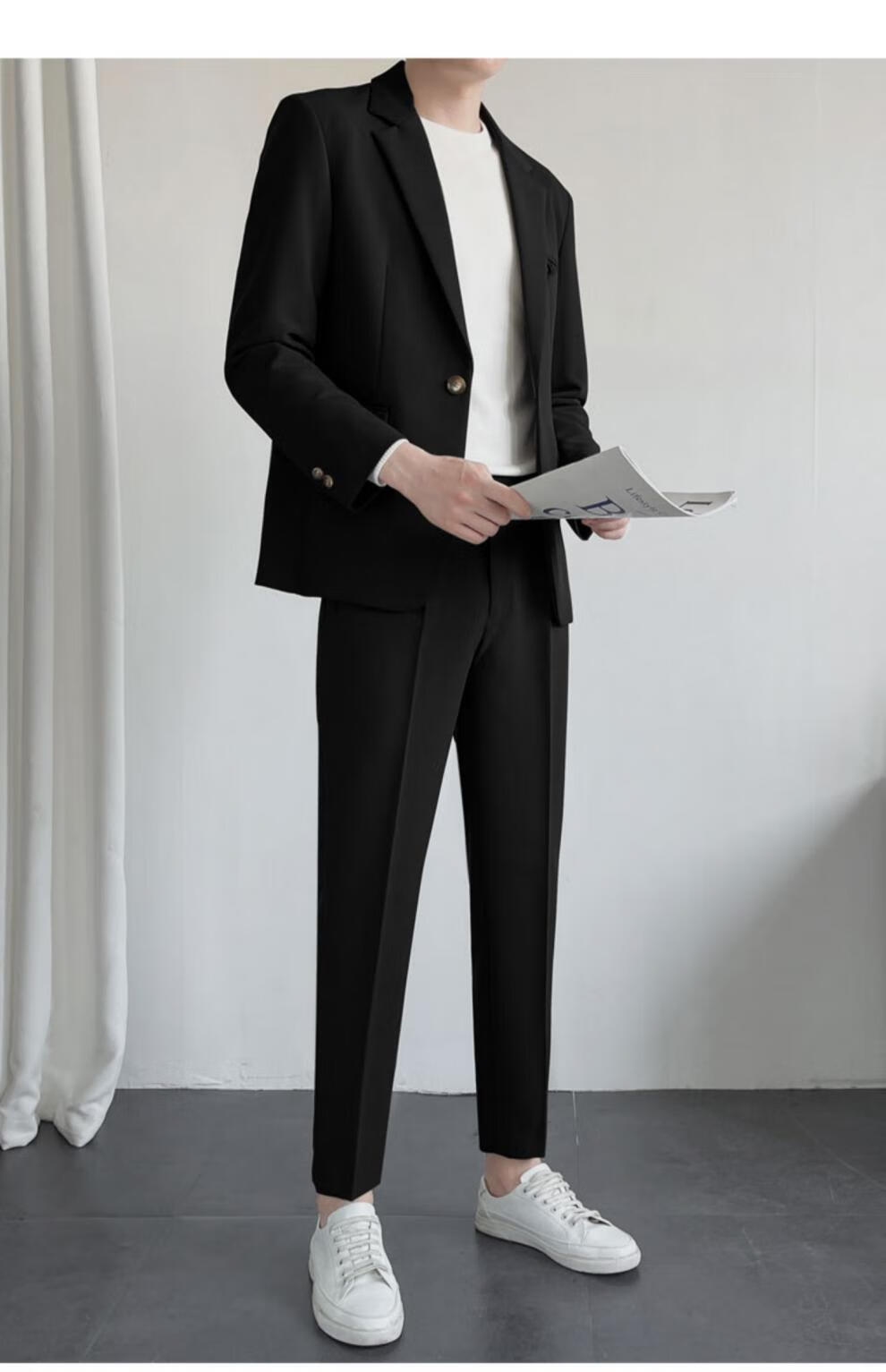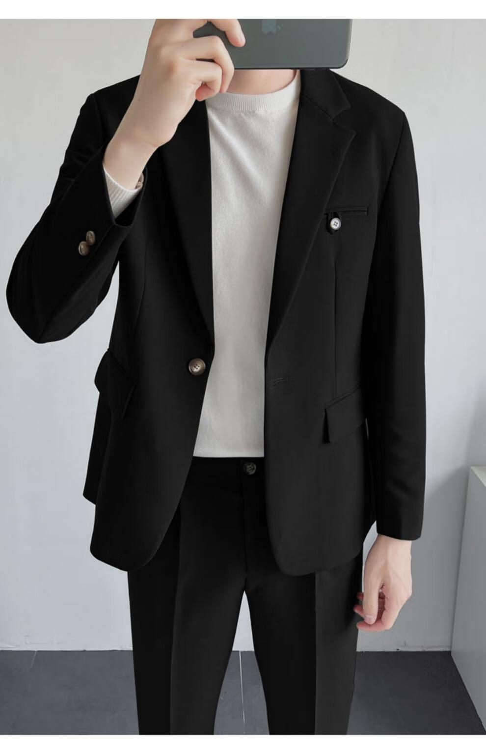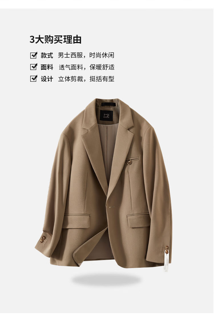 ROMON Casual Autumn and Winter Suit Men's Brown Loose, Handsome, Trendy and Mature Style Small Suit Jacket Brown Two-piece Suit + Pants L