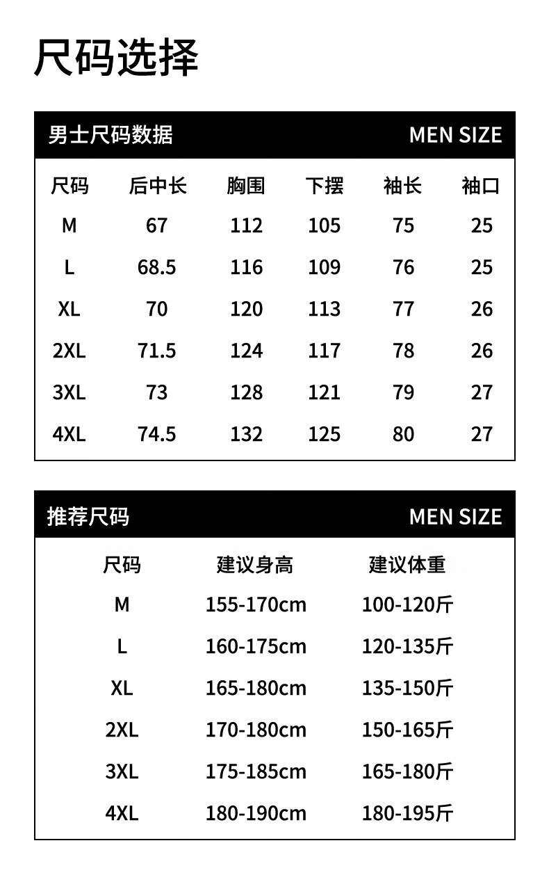 China (cm) 165 / 88-90 170 / 96-98 175 / 108-110 180 / 118-122 185 / 126-130