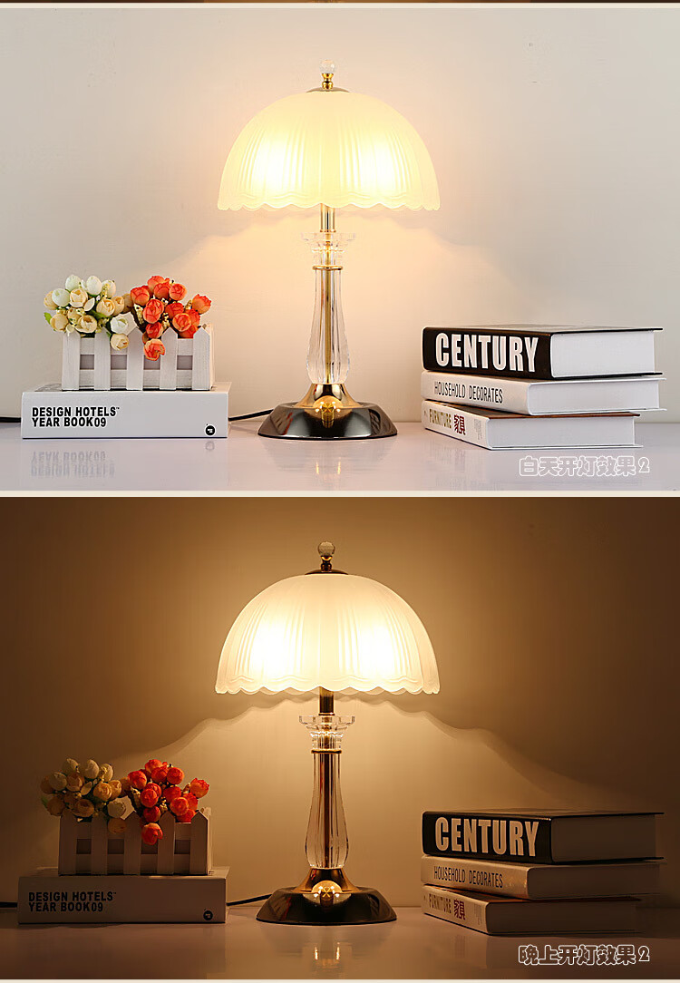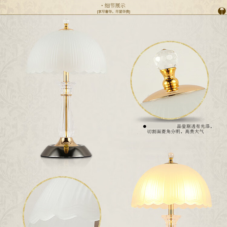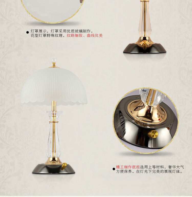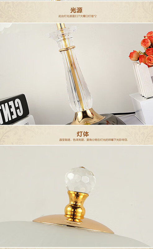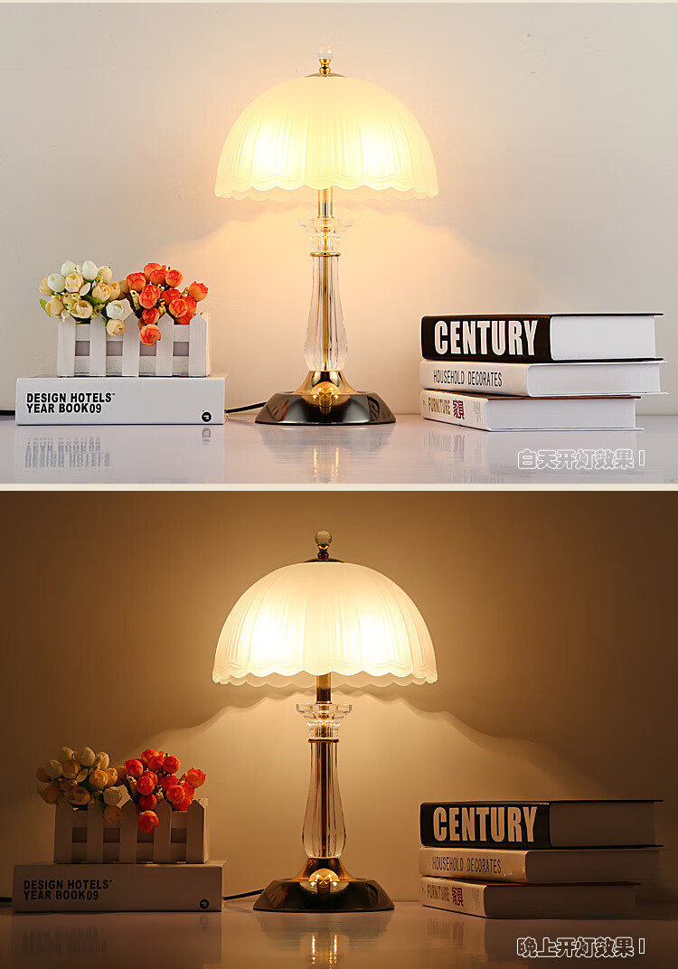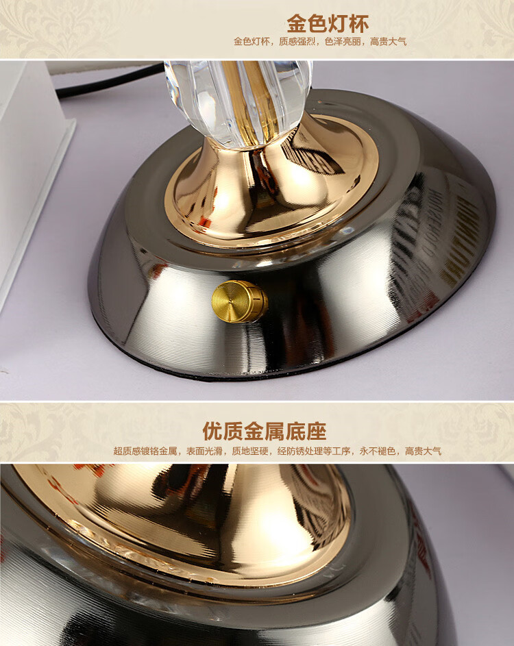 Yaotian Modern Simple European Style Dimmable LED Wedding Table Lamp Bedside Bedroom Breastfeeding Crystal Glass Table Lamp Dimmer Switch + 2 3W LED Bulbs