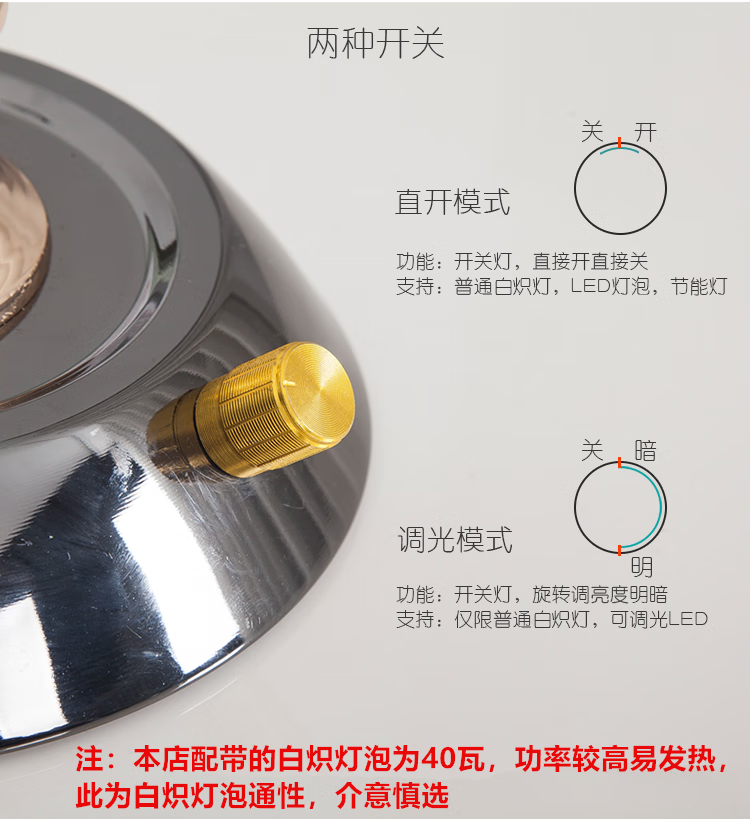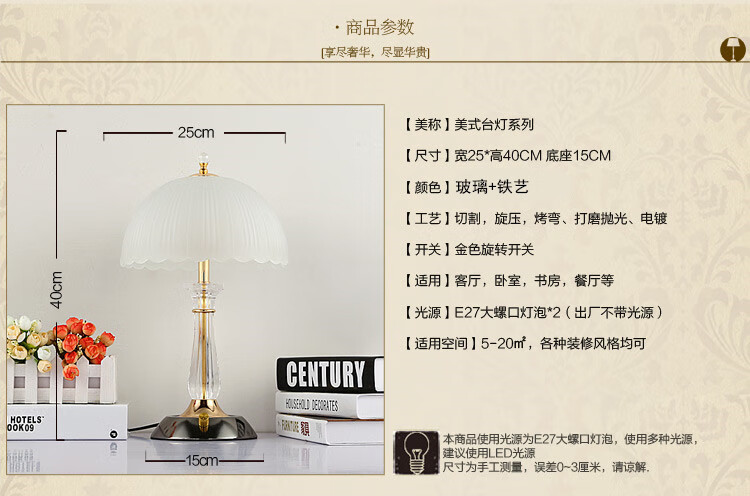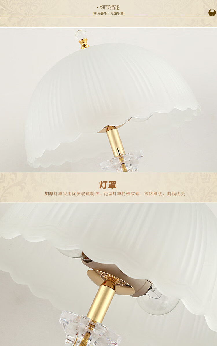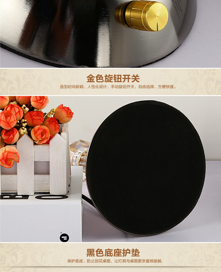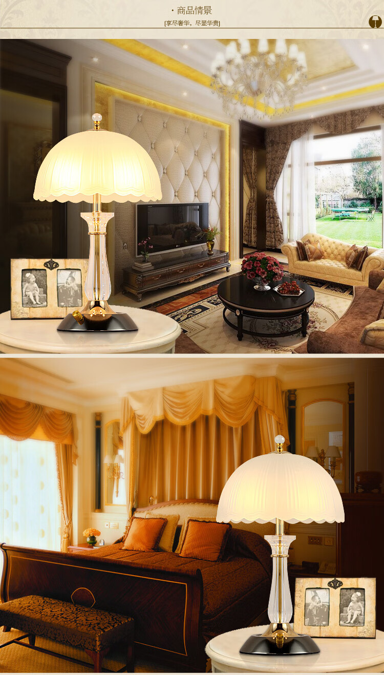 Yaotian Modern Simple European Style Dimmable LED Wedding Table Lamp Bedside Bedroom Breastfeeding Crystal Glass Table Lamp Dimmer Switch + 2 3W LED Bulbs