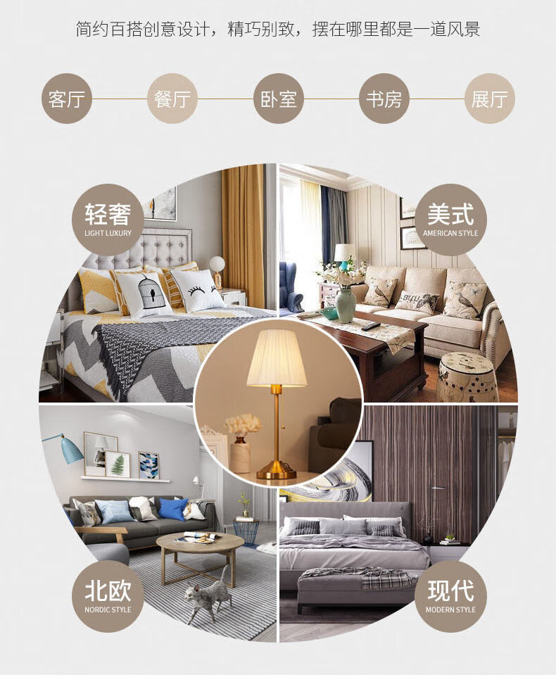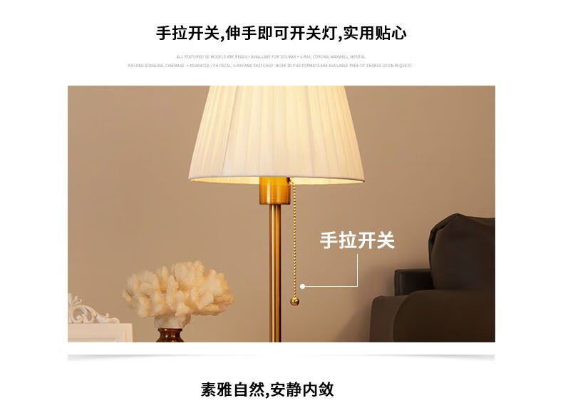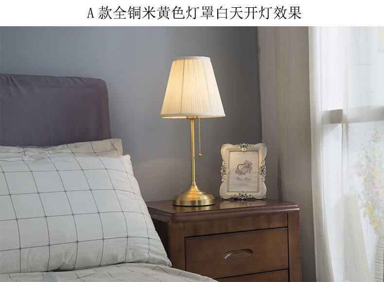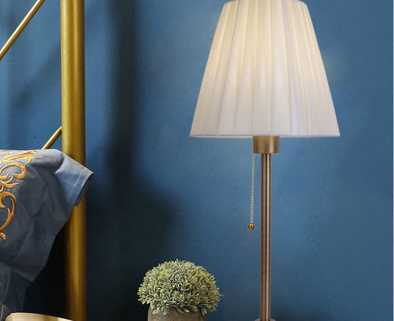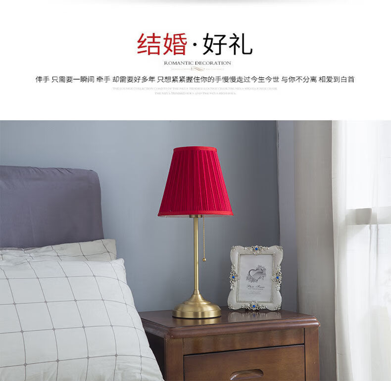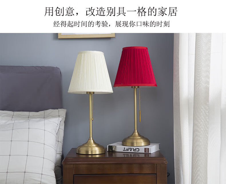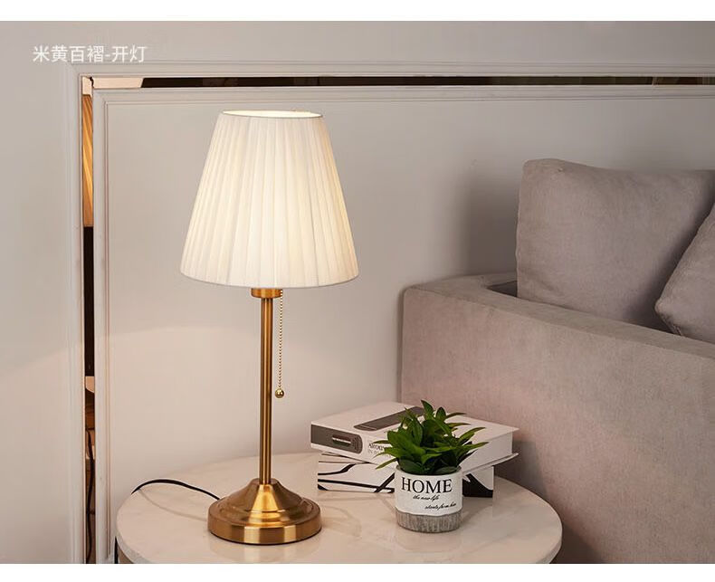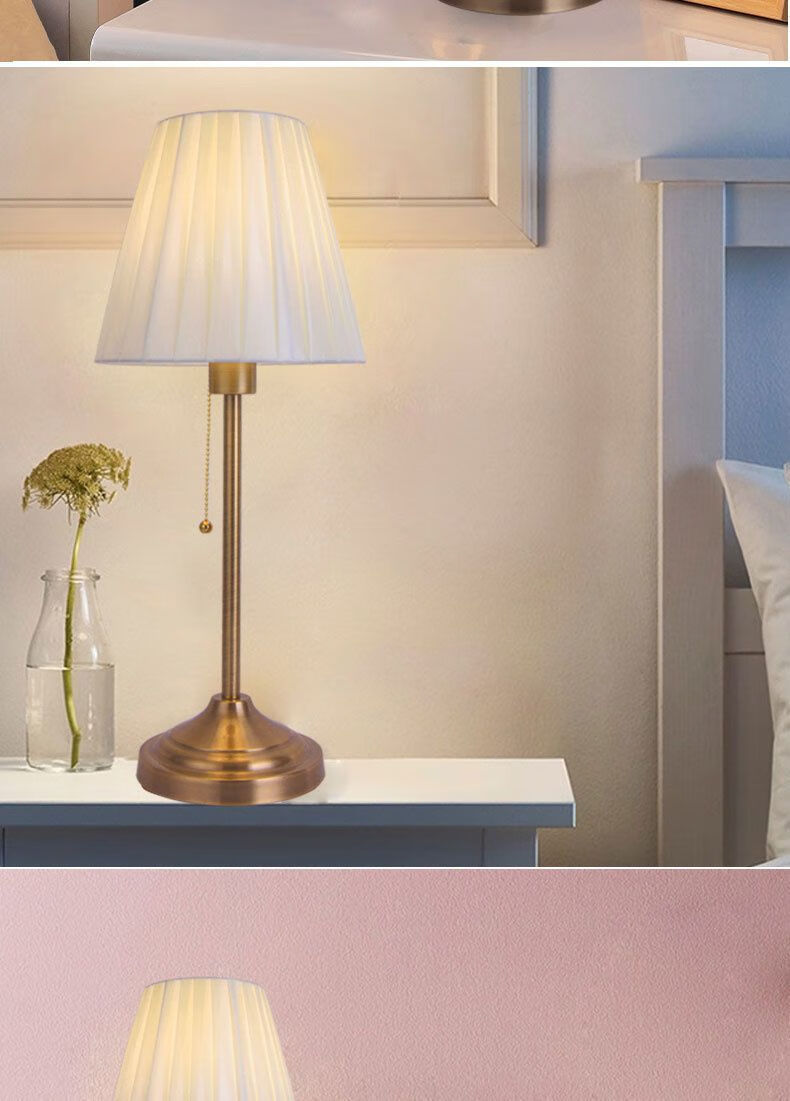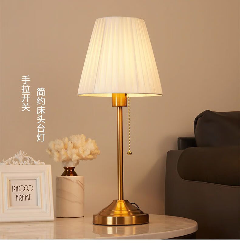 Yaotian Nordic Bedroom Small Table Lamp Bedside Study LED Lamp Creative Simple Modern Warmth Romantic Wedding Room Line Lamp Zunhuang Light Beige Style Pull Switch + 7 Watt Three-level Dimming LED