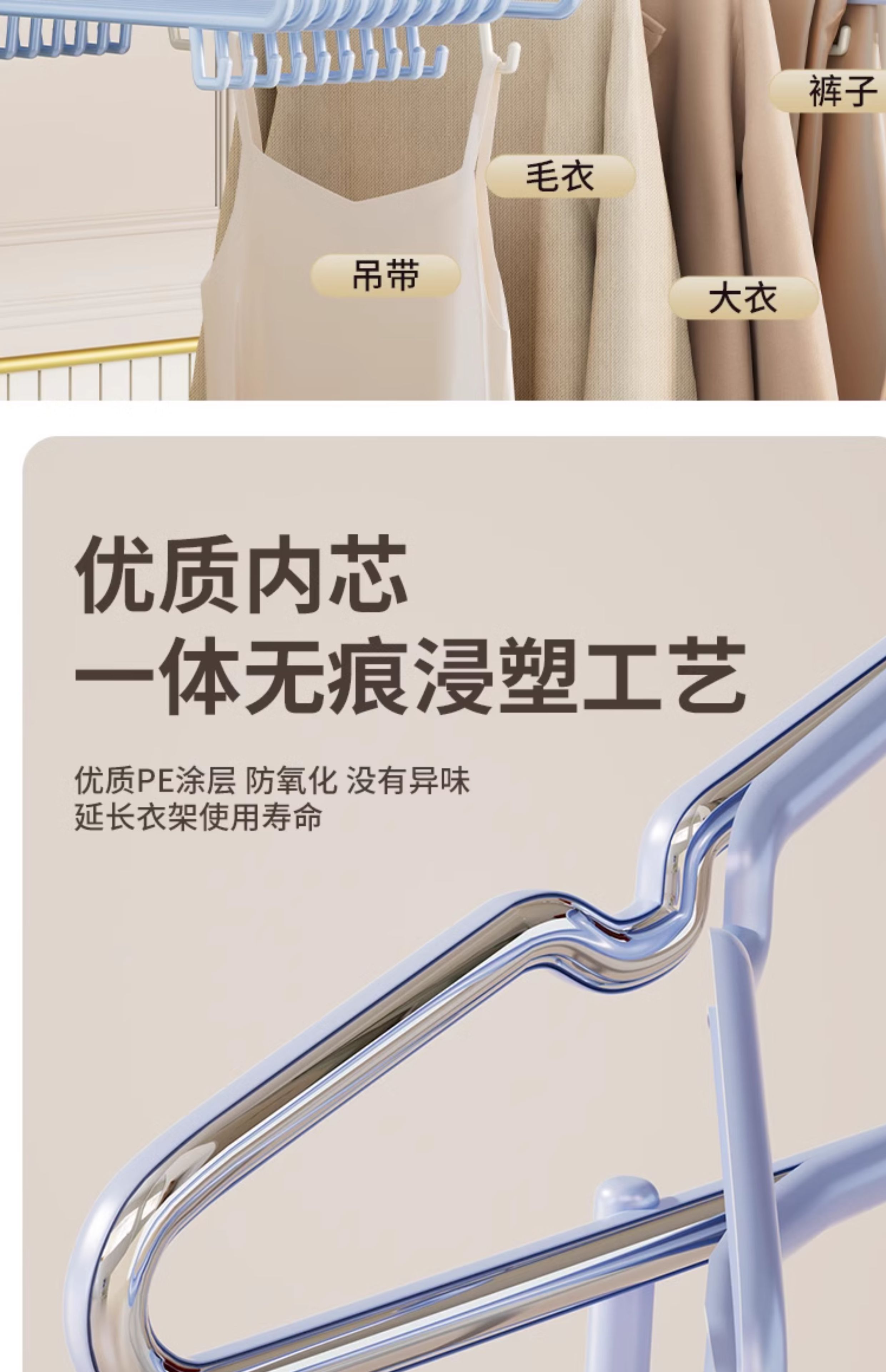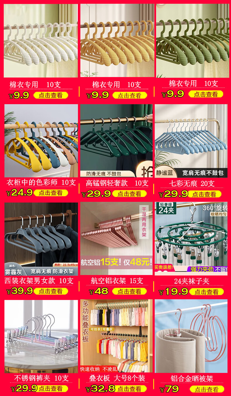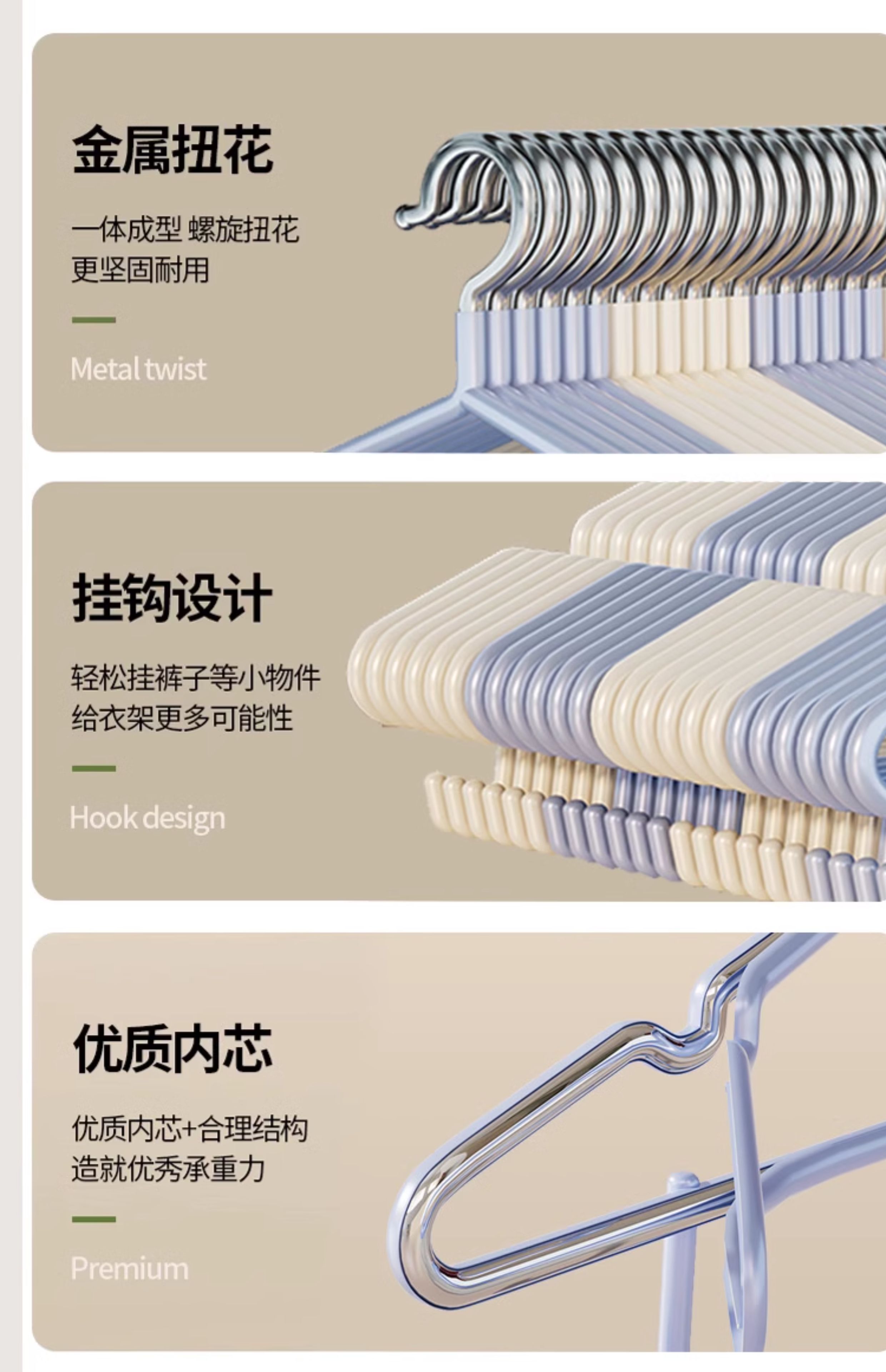 Xuanshitang 50-piece clothes hanger, traceless non-slip clothes drying rack, student dormitory clothes support clothes rack, pink, non-slip, non-bulging bag, 10-piece package
