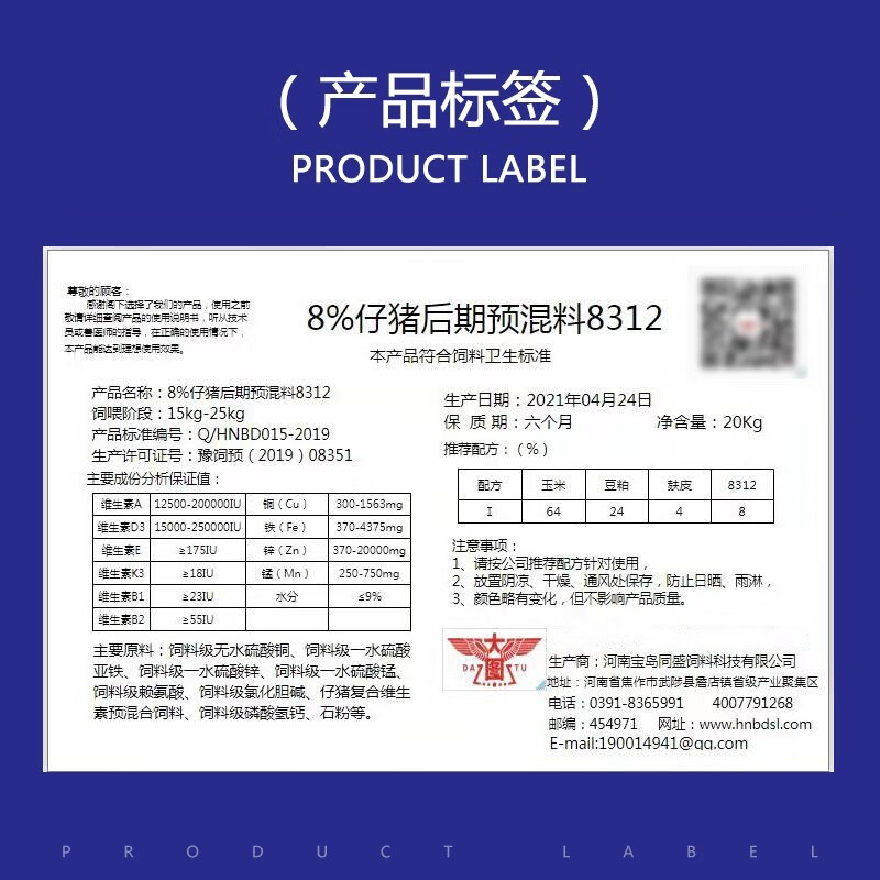 Henan Baodao 8% compound piglet premix has good digestion and immunity, strong feed intake, high growth, fast growth and good appetite 20kg/bag