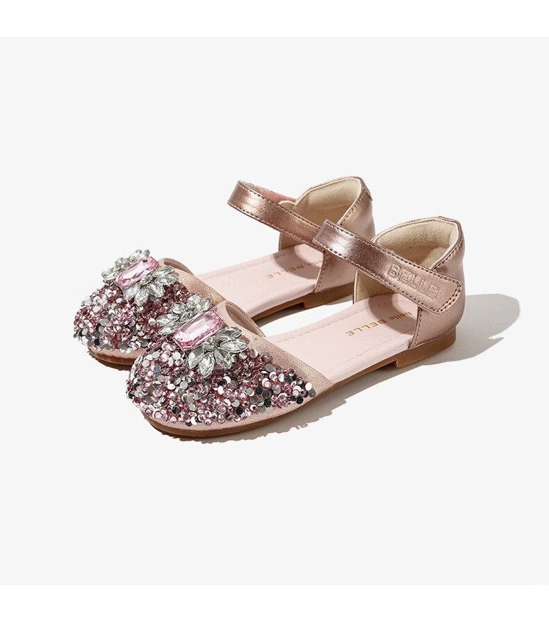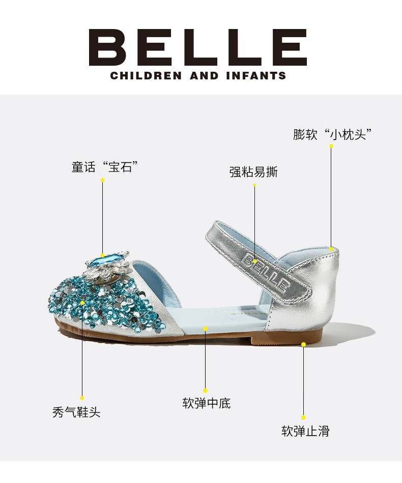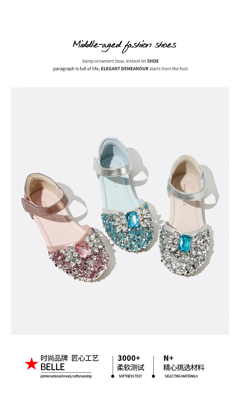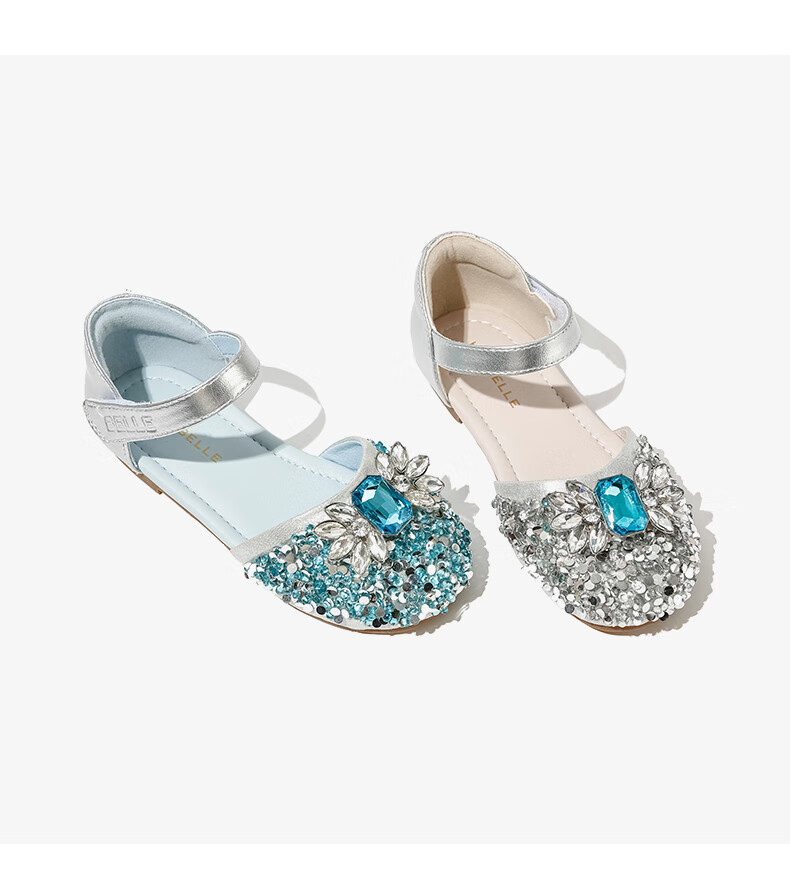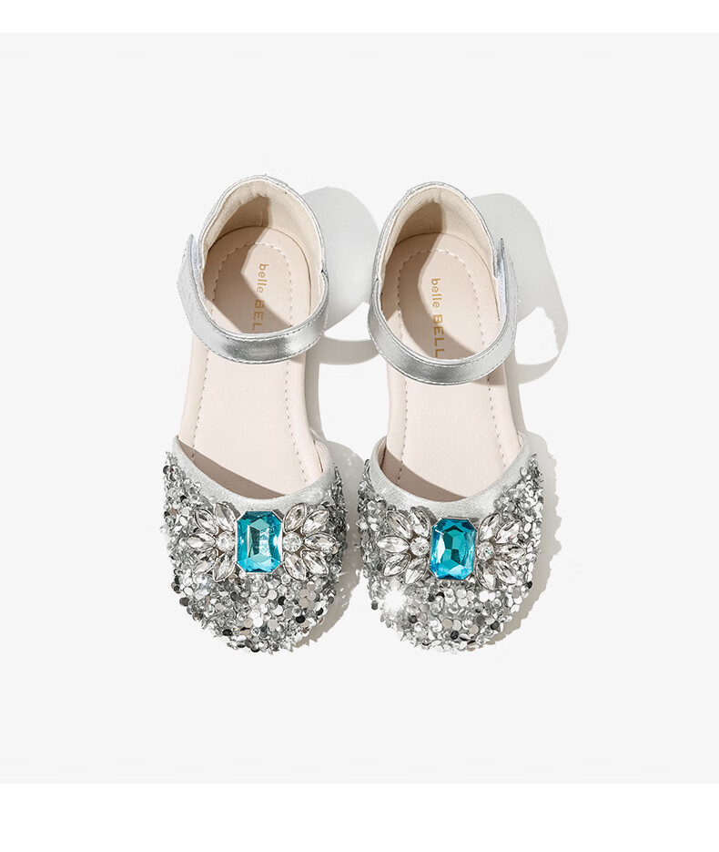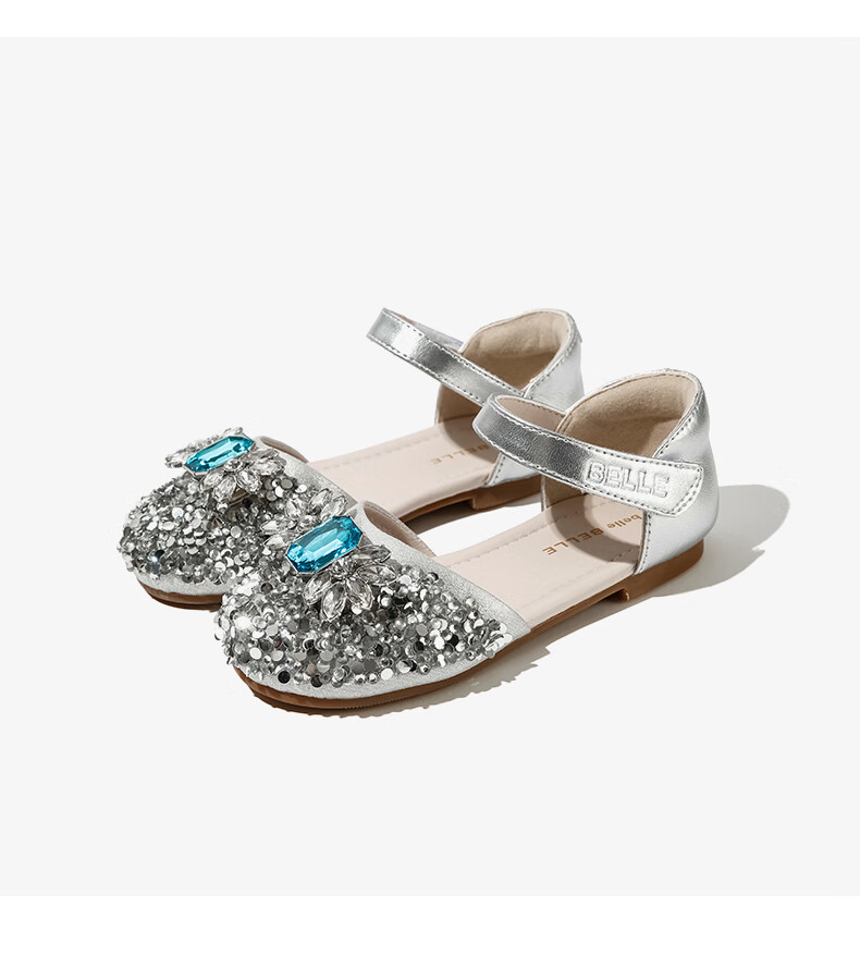 Belle Children's Shoes Children's Crystal Shoes Summer New Girls Princess Sandals Fashion Single Shoes Baotou Rhinestone Leather Shoes Star Diamond Silver 35 Foot Length 21.7-22.2cm