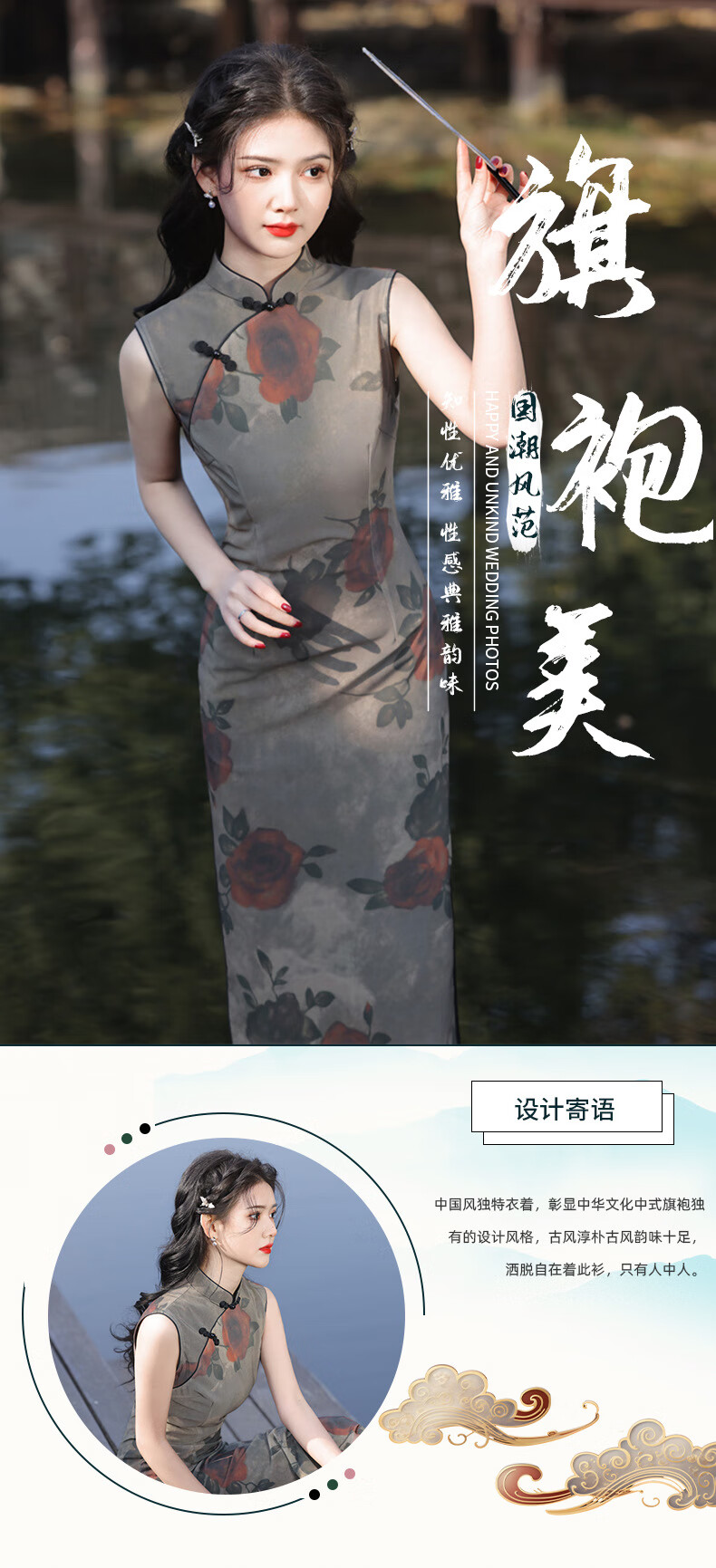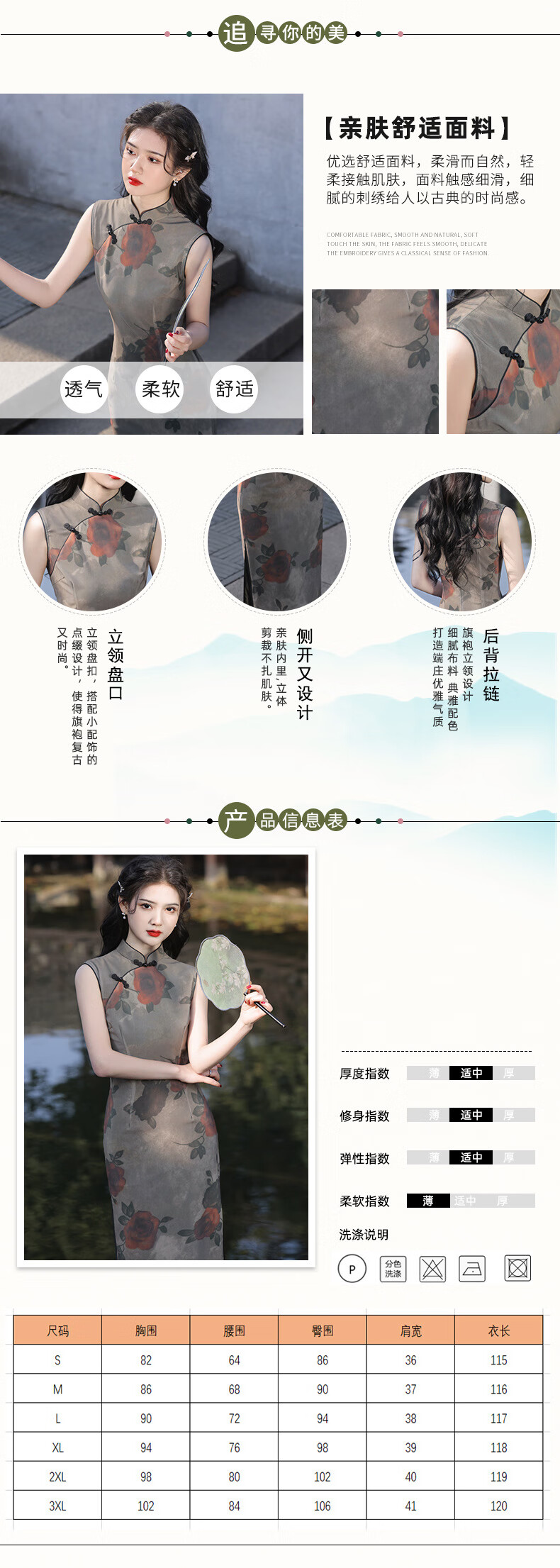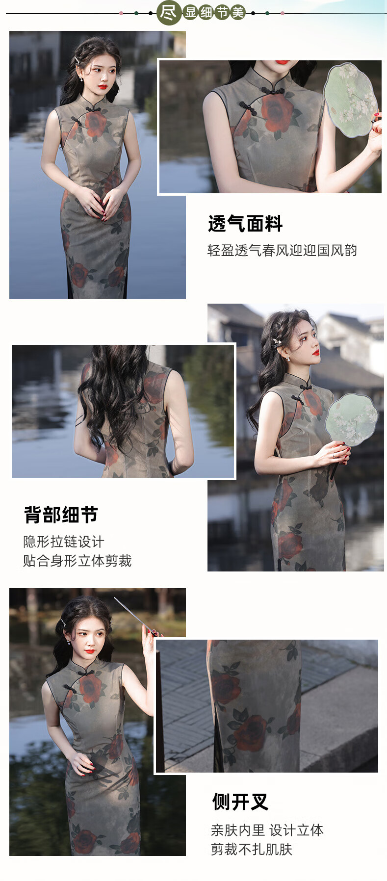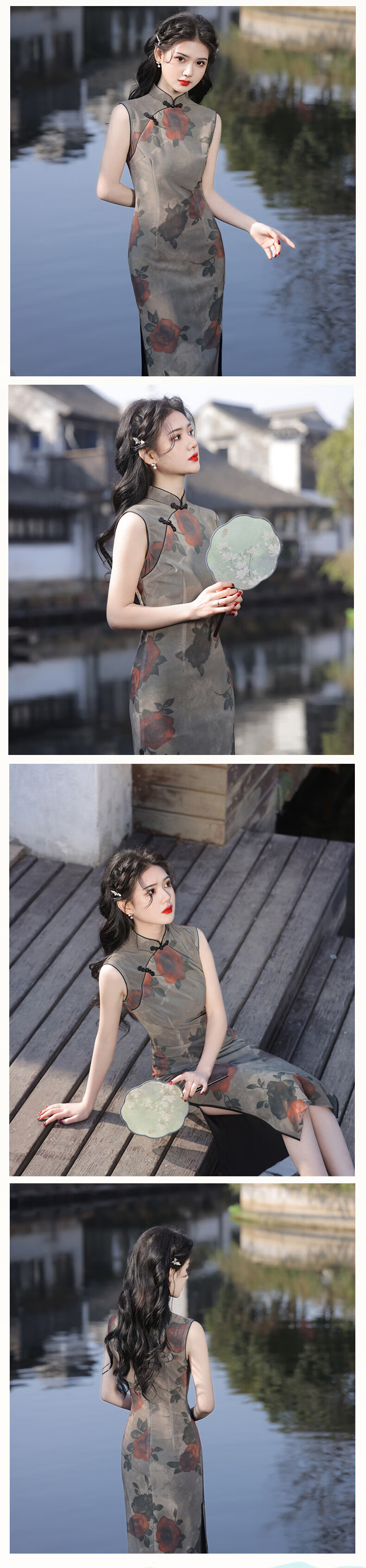 Du Yanzhi Spring and Summer New Style Mesh Printed Rose Double Layer Mid-Length Cheongsam Sleeveless Republic of China Style Old Shanghai Cheongsam Rose 2XL 120-130Jin Jin equals 0.5kg (skirt 119CM)