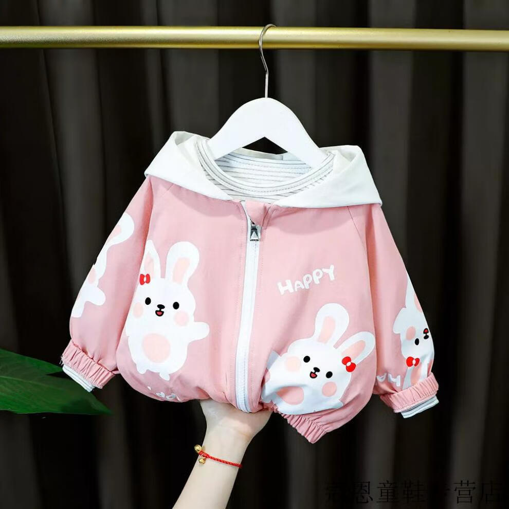 Disney (Disney) Baby Cartoon Hooded Jacket 2024 Spring and Autumn Korean Version Boys and Girls Tops Children's Jackets Baby Style Windbreaker XC 07 Little Flower Jacket Pink 80