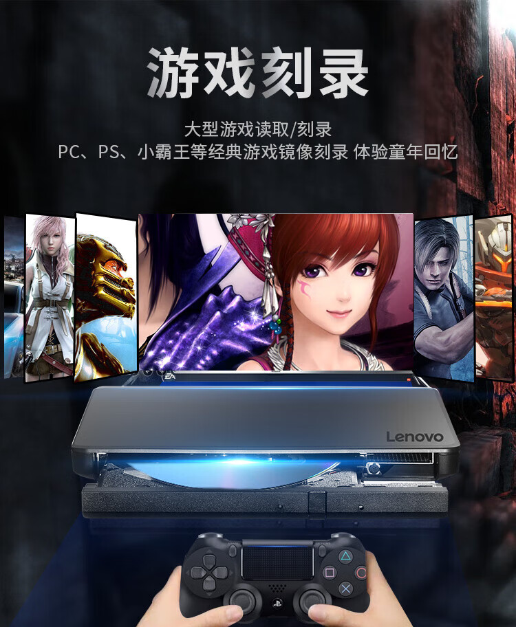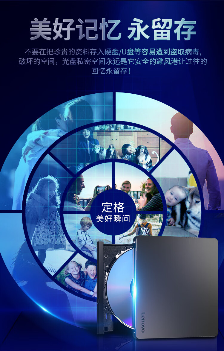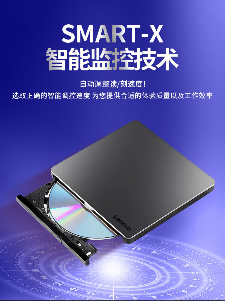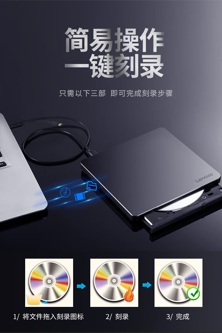 Lenovo thinkplus external optical drive burner 8x speed reading and burning integrated USB/Type-c dual interface suitable for laptops desktop DVD external optical drive burner DB Blu-ray model ultra-clear audio and video high-speed reading and burning