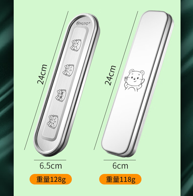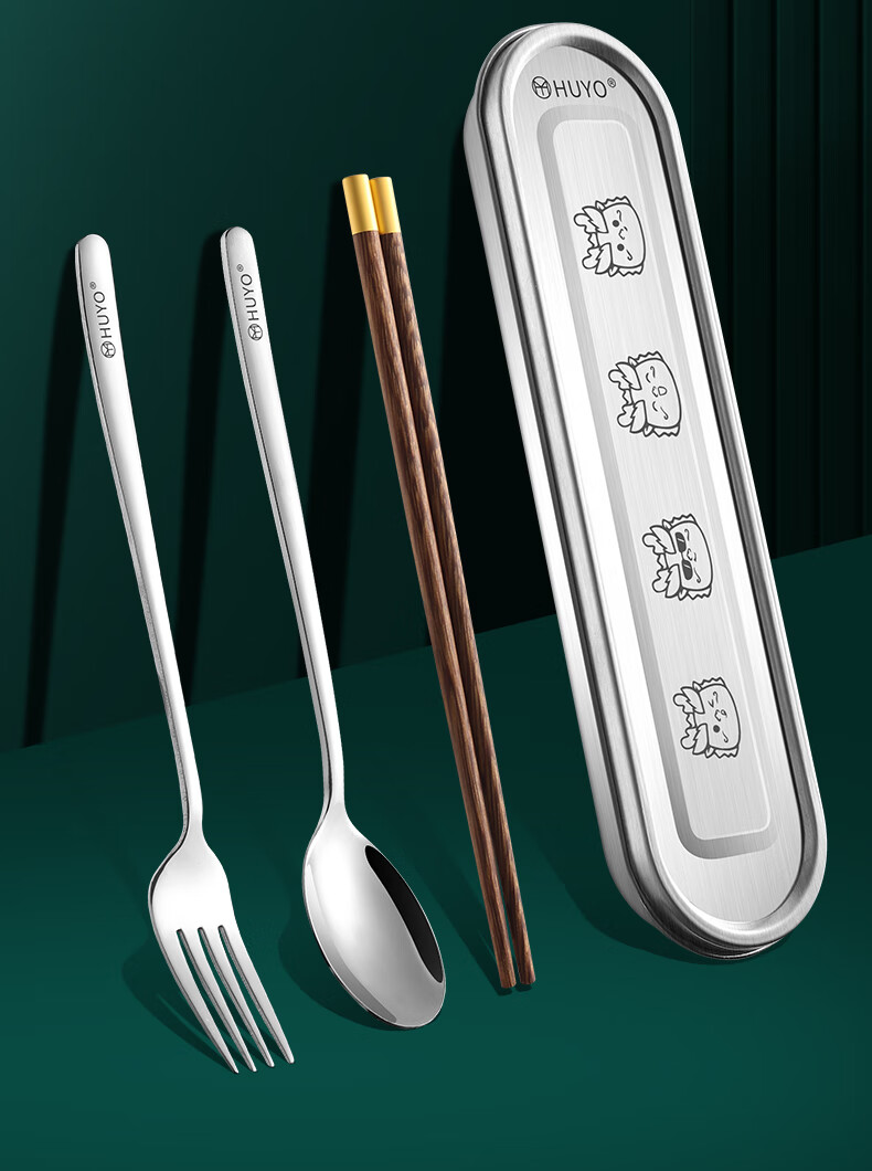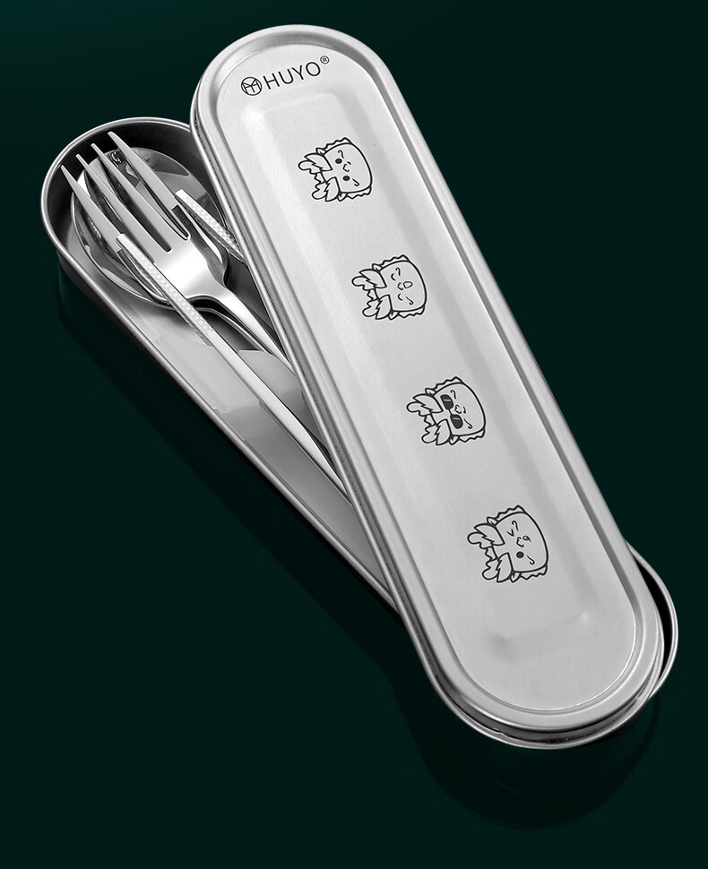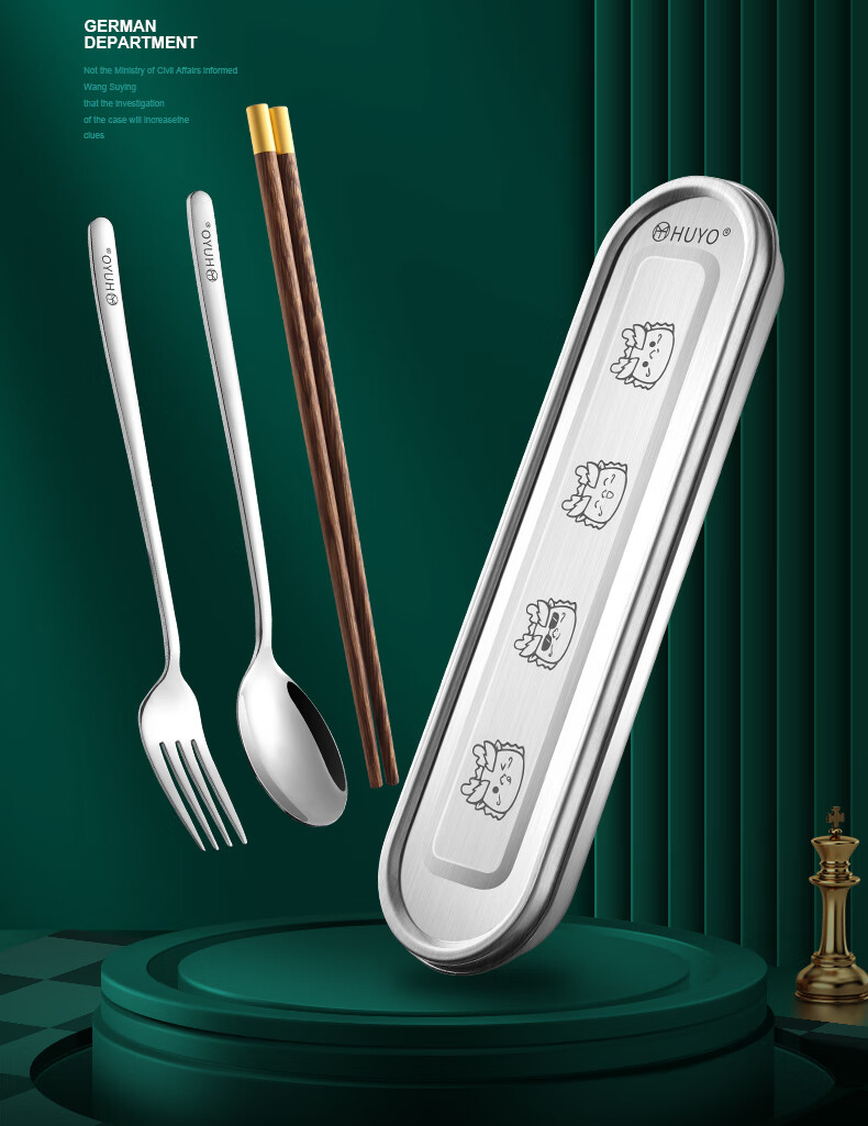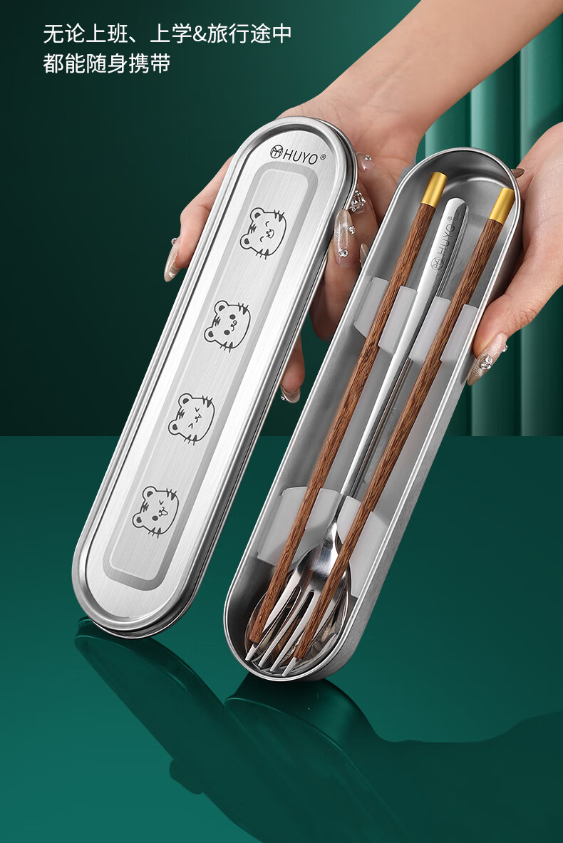 HUYO316 Stainless Steel Portable Tableware Box Student Spoon Chopstick Set Children's Tableware Storage Box Empty Box for School 316 Oval Box Auspicious Dragon + Wooden Chopsticks + 316 Spoon