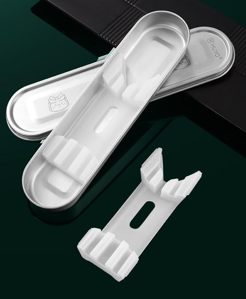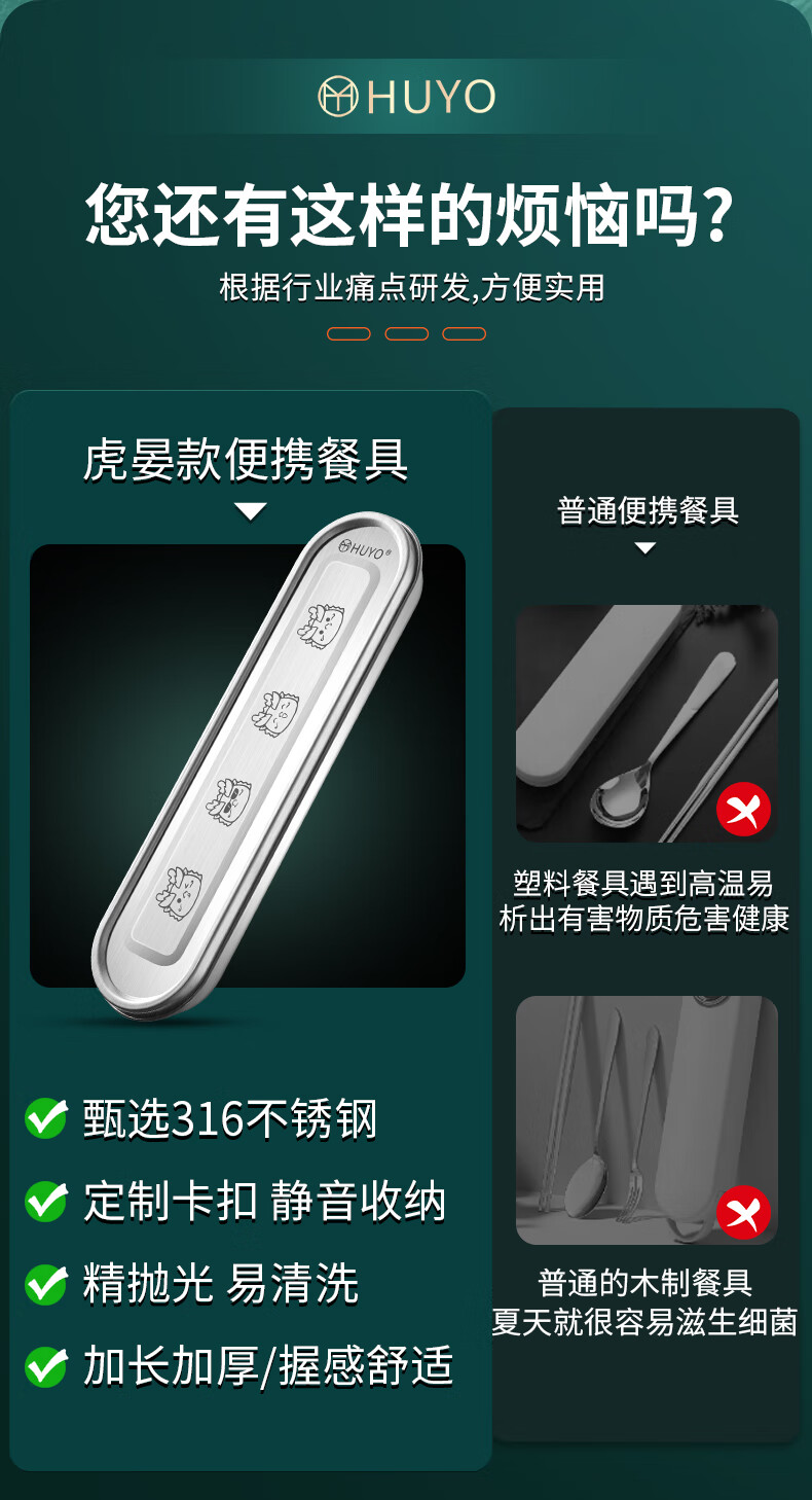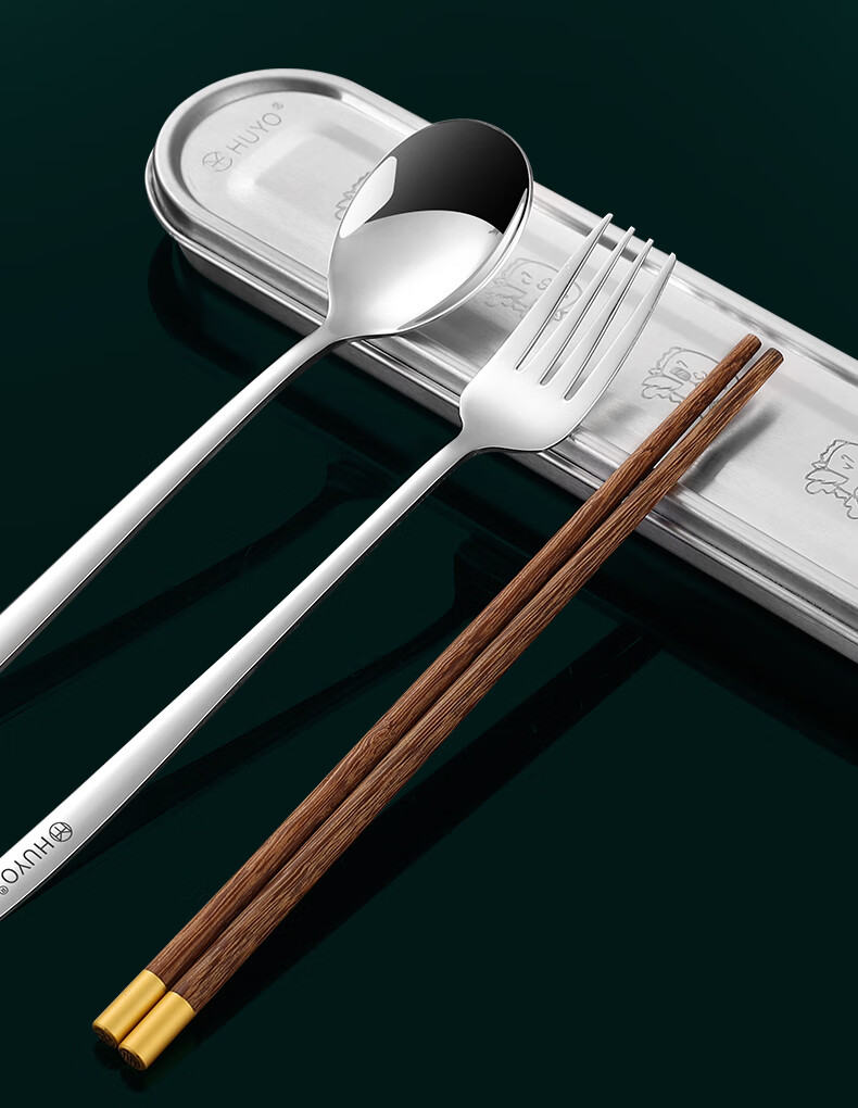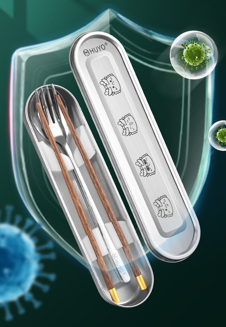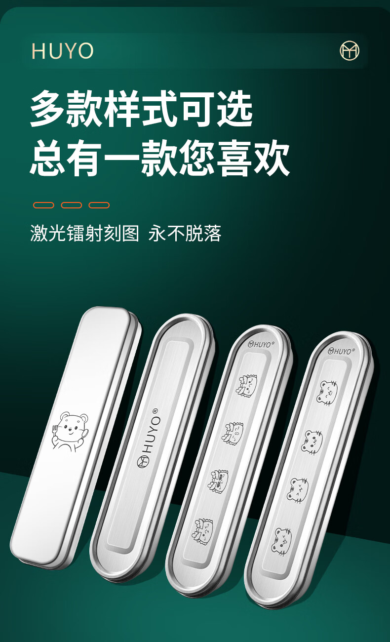 HUYO316 Stainless Steel Portable Tableware Box Student Spoon Chopstick Set Children's Tableware Storage Box Empty Box for School 316 Oval Box Auspicious Dragon + Wooden Chopsticks + 316 Spoon