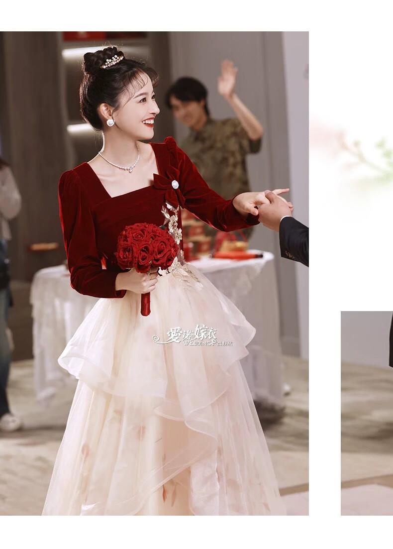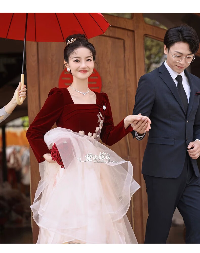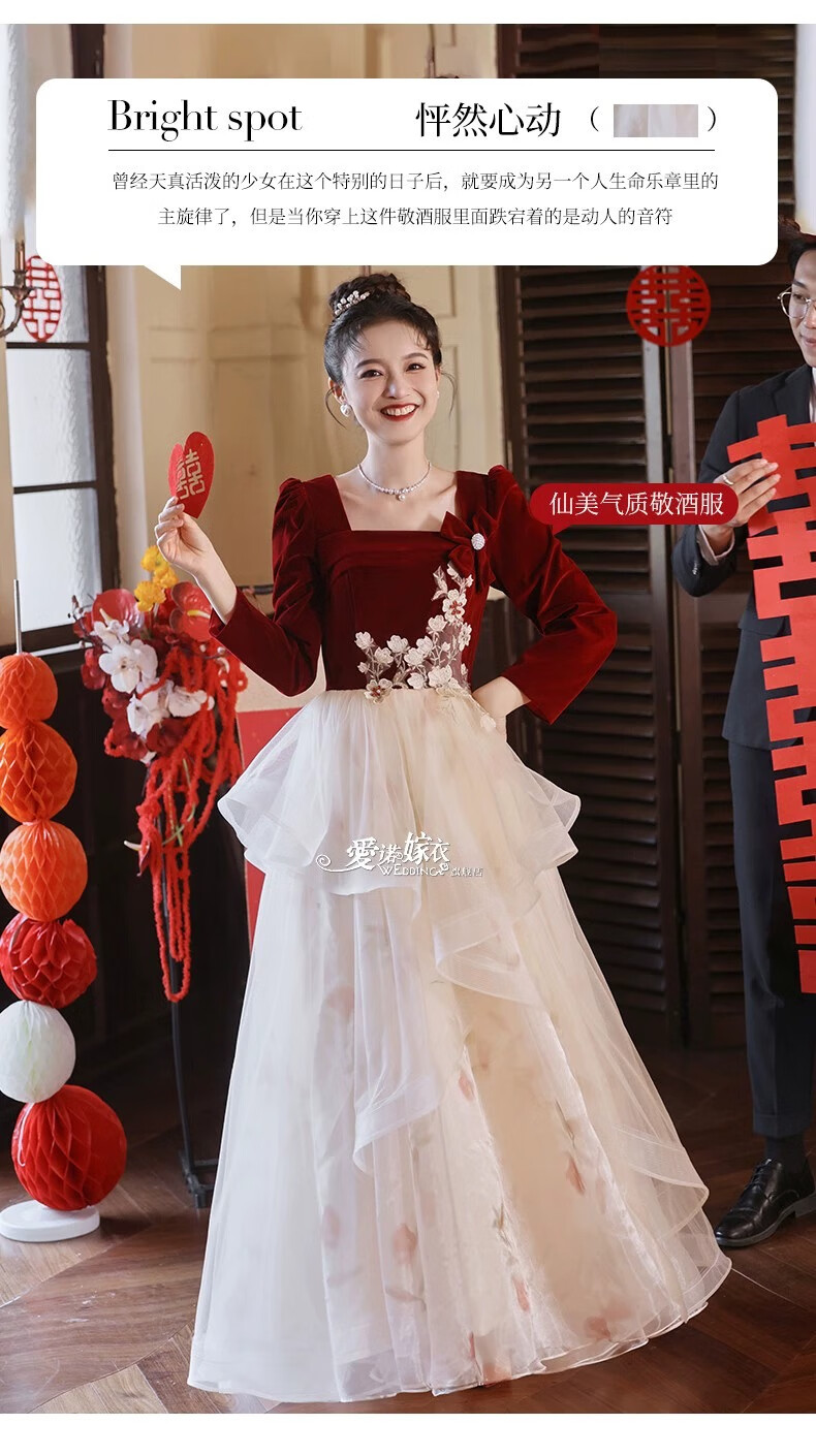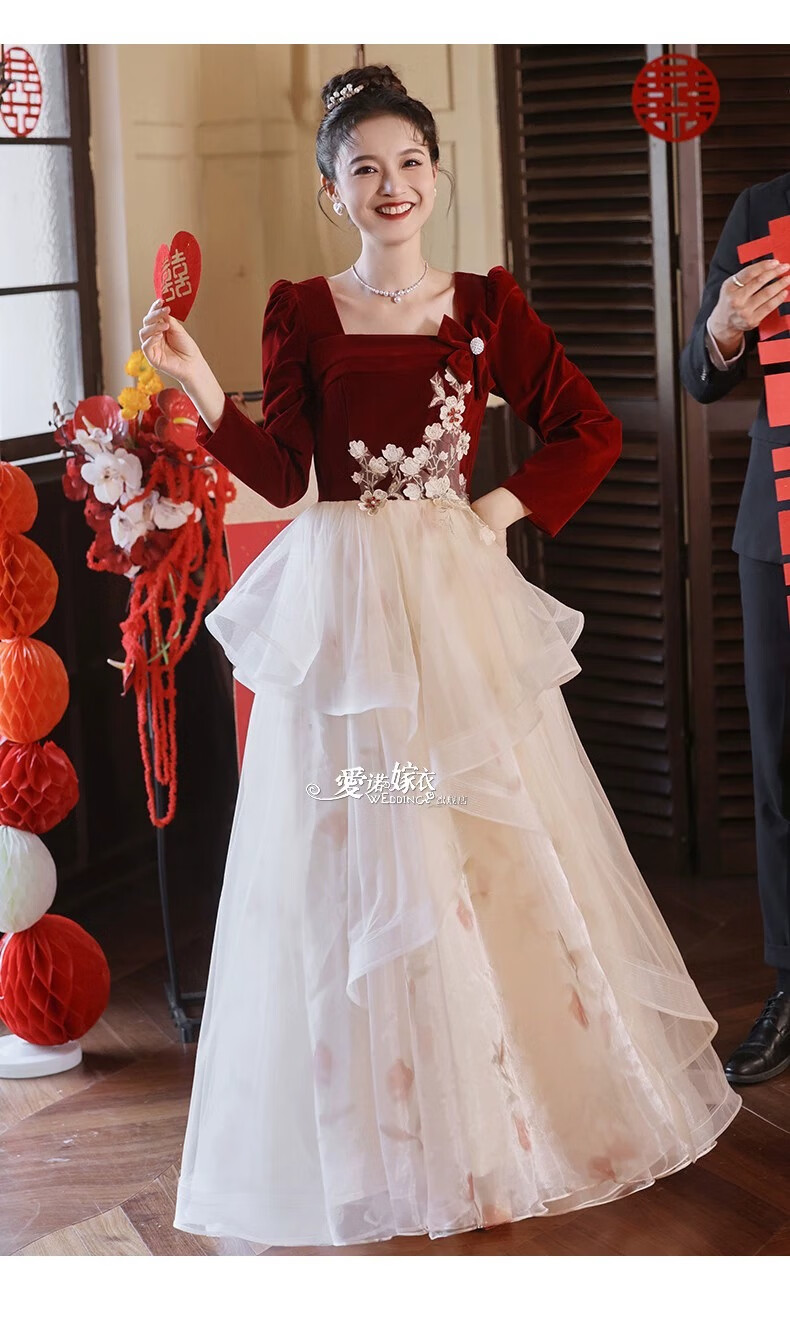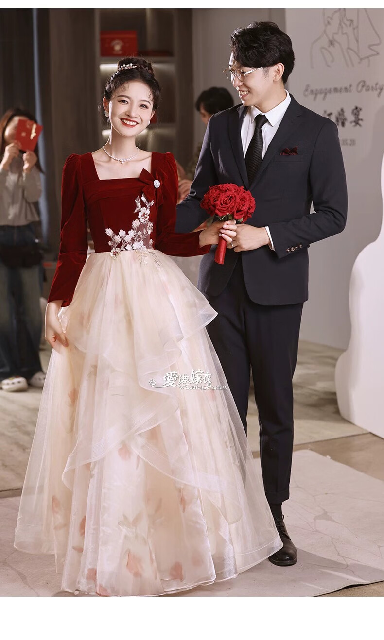 Li Baixin French Toast Wear 2025 New Bride Wedding Engagement Wedding Evening Dress Women's High-Quality Home Casual Clothes Long Sleeve Burgundy Long Style L Recommended 100-110 Jin Jin equals 0.5 kg