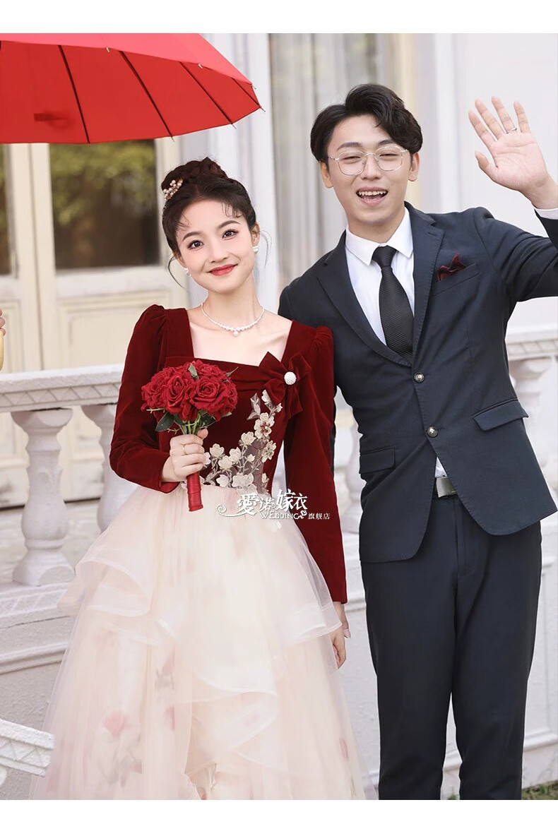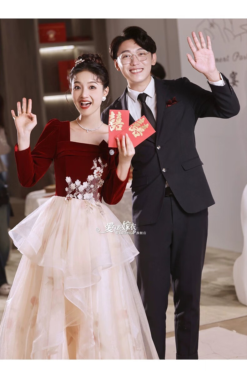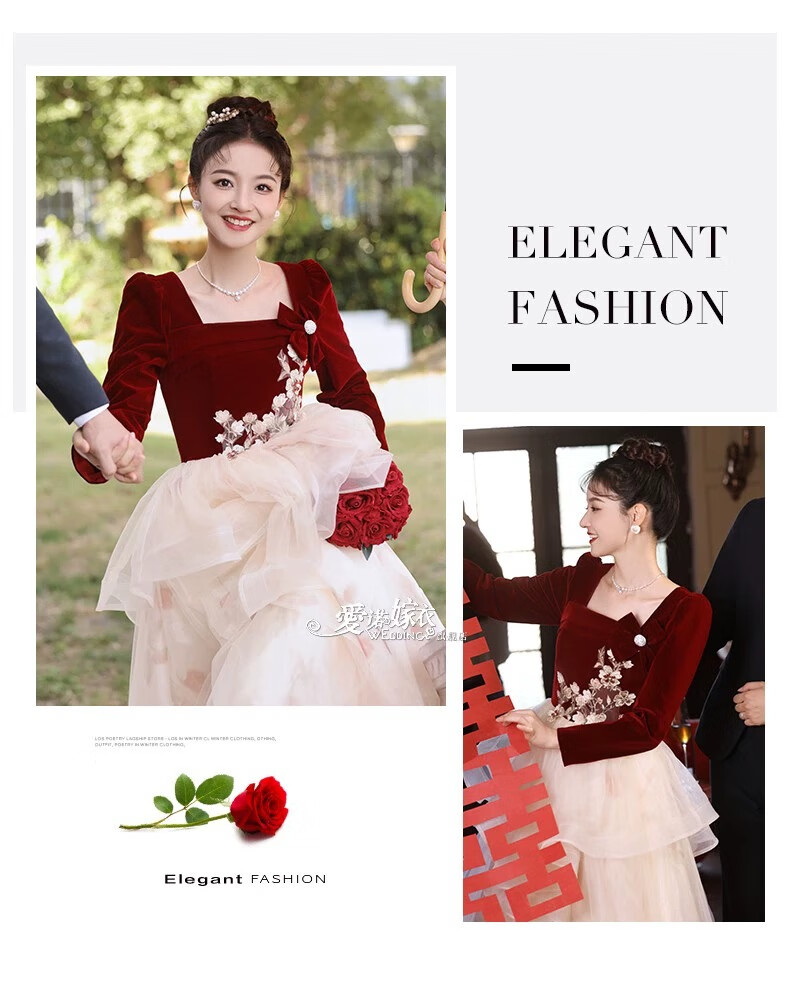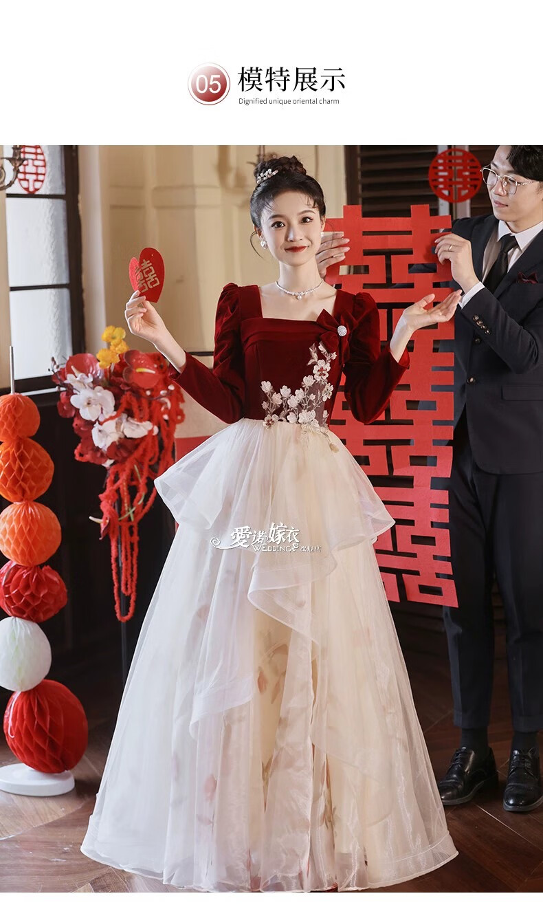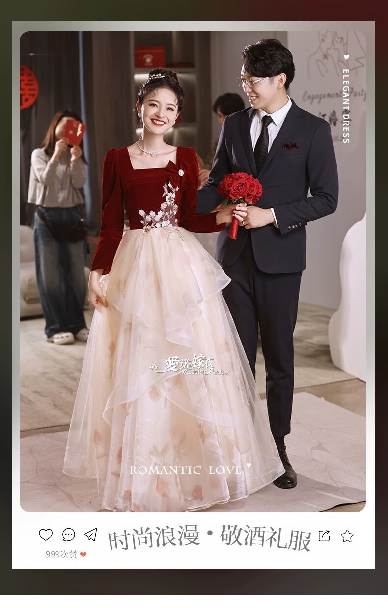 Li Baixin French Toast Wear 2025 New Bride Wedding Engagement Wedding Evening Dress Women's High-Quality Home Casual Clothes Long Sleeve Burgundy Long Style L Recommended 100-110 Jin Jin equals 0.5 kg
