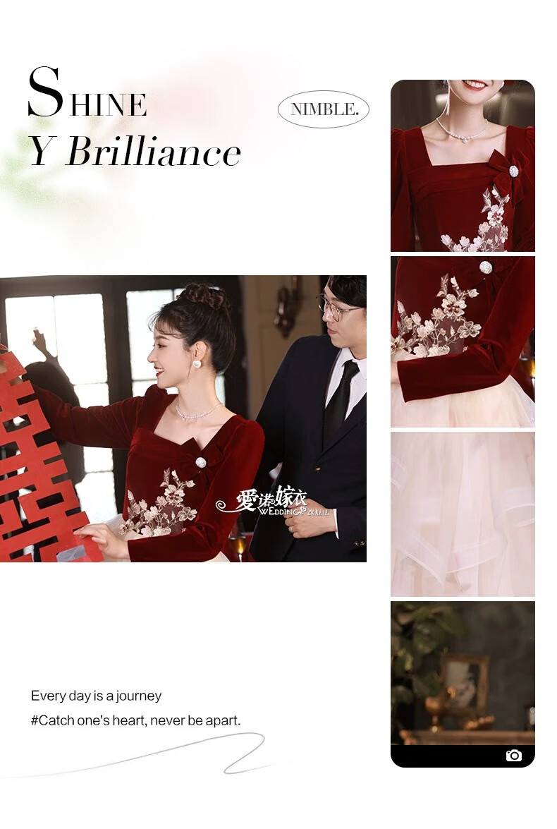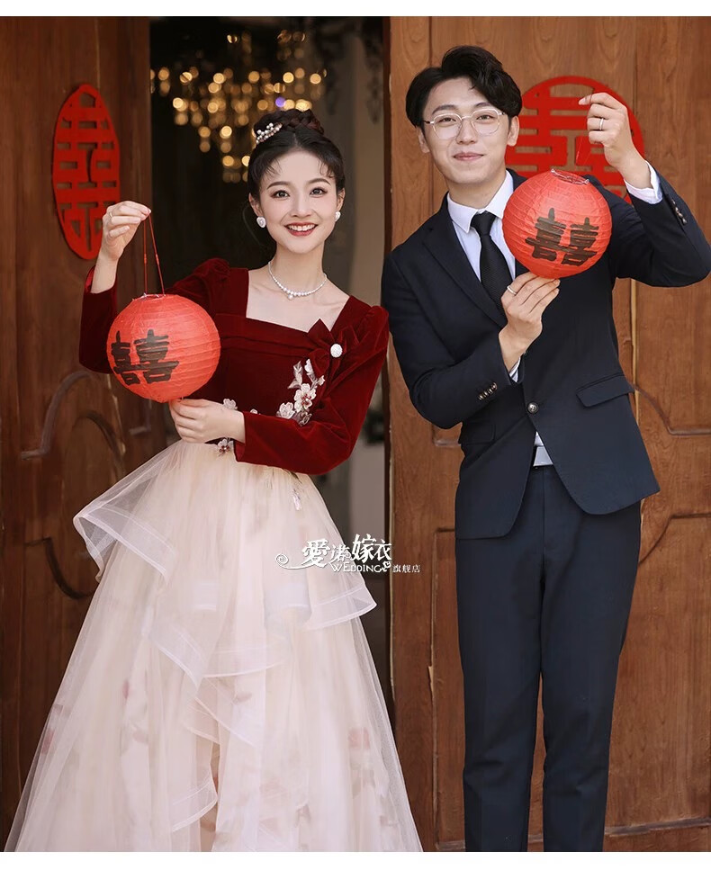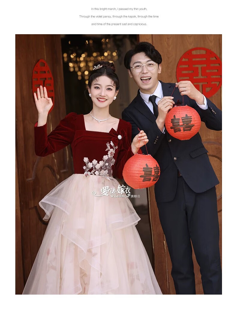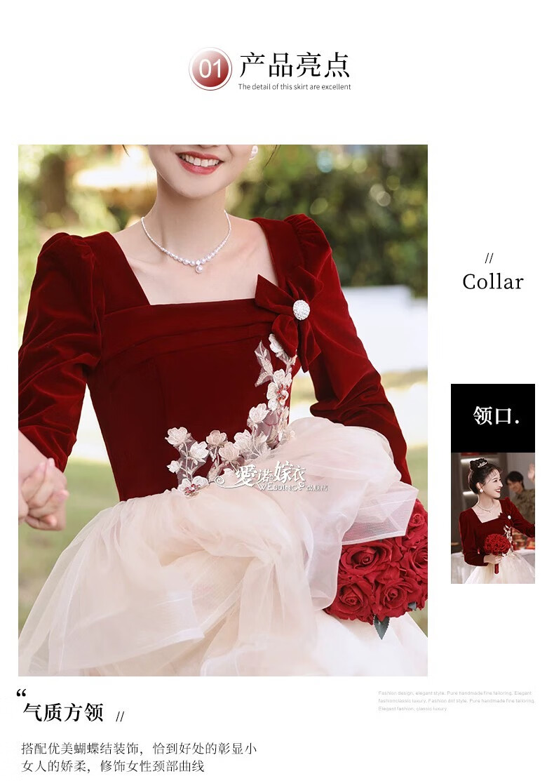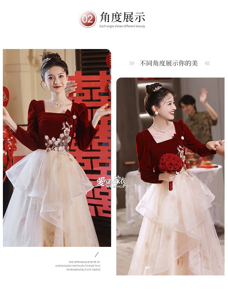 Li Baixin French Toast Wear 2025 New Bride Wedding Engagement Wedding Evening Dress Women's High-Quality Home Casual Clothes Long Sleeve Burgundy Long Style L Recommended 100-110 Jin Jin equals 0.5 kg