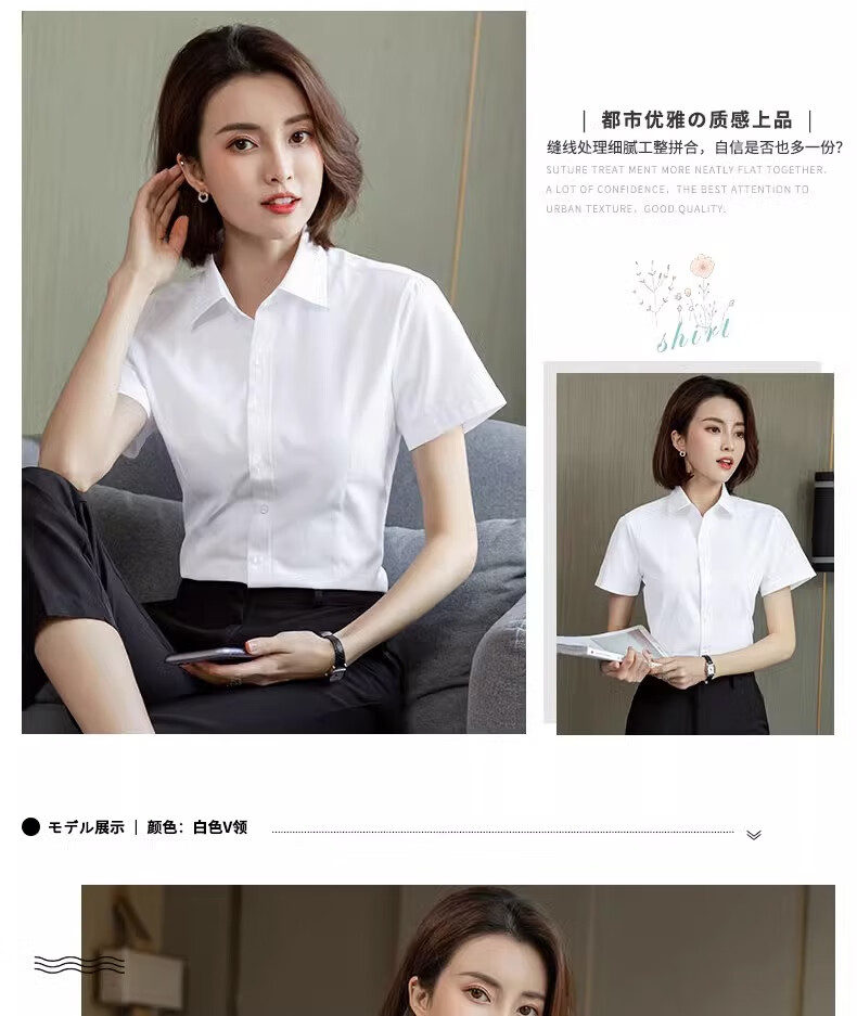 EAEOVNI short-sleeved shirt women's business wear summer cotton women's white shirt commuting interview bank formal temperament work clothes pure white short-sleeved square collar 37 98-108Jin Jin equals 0.5 kg