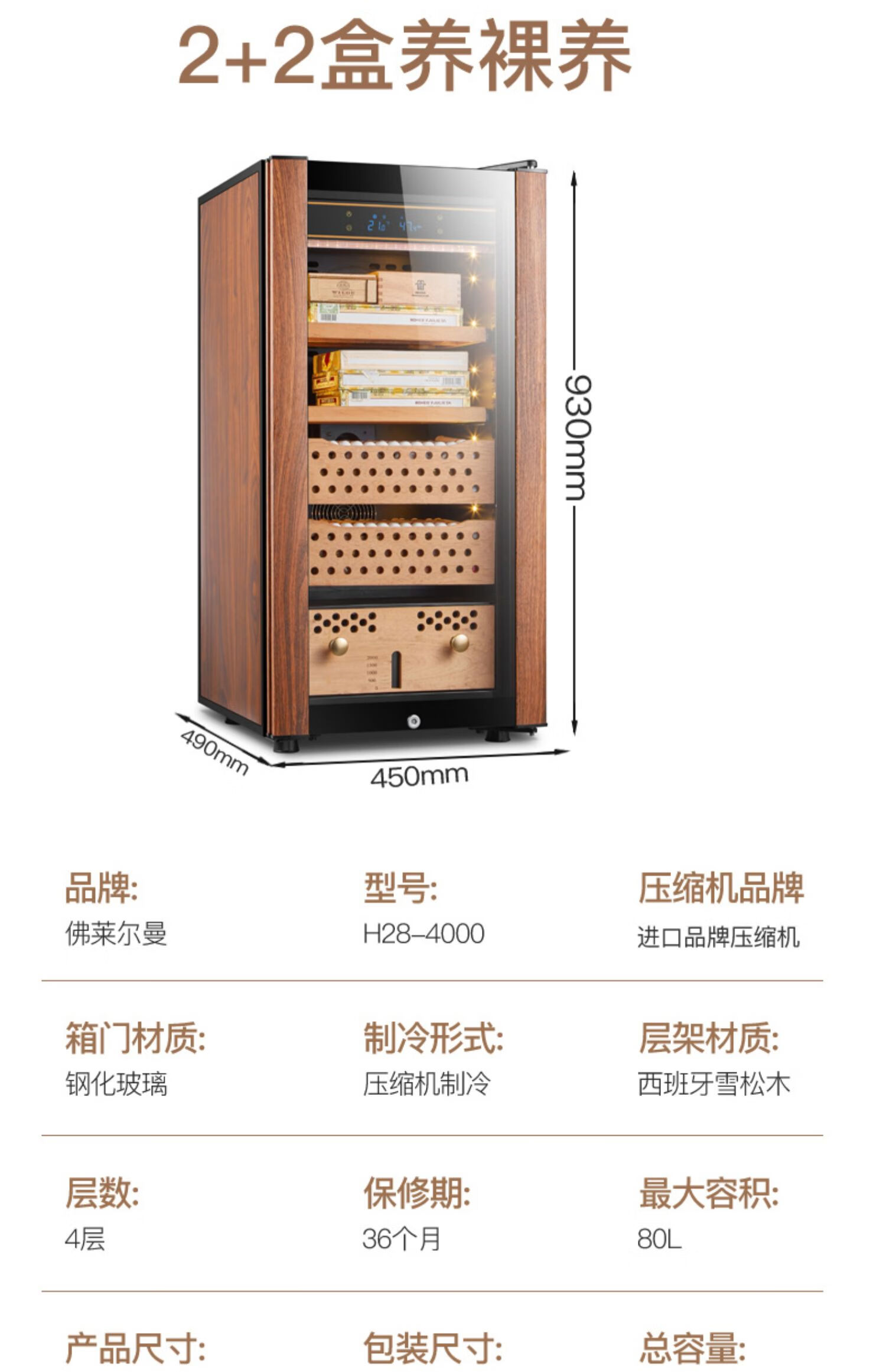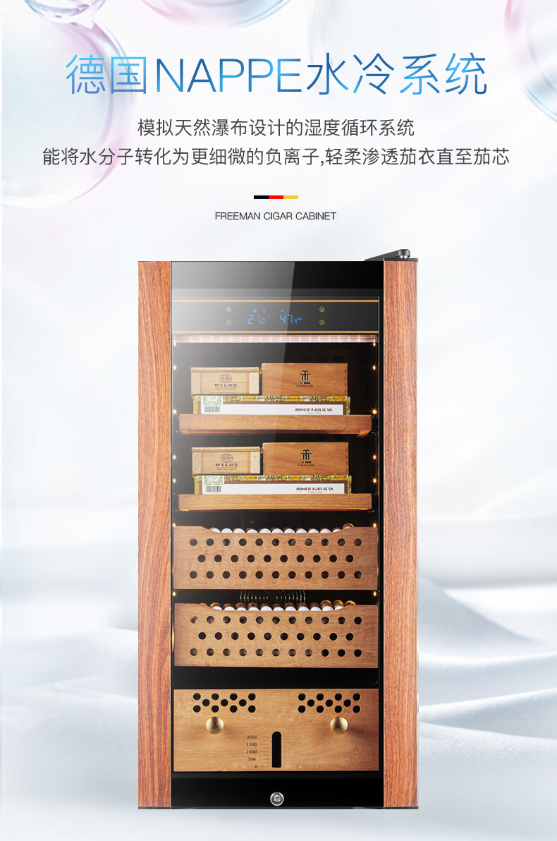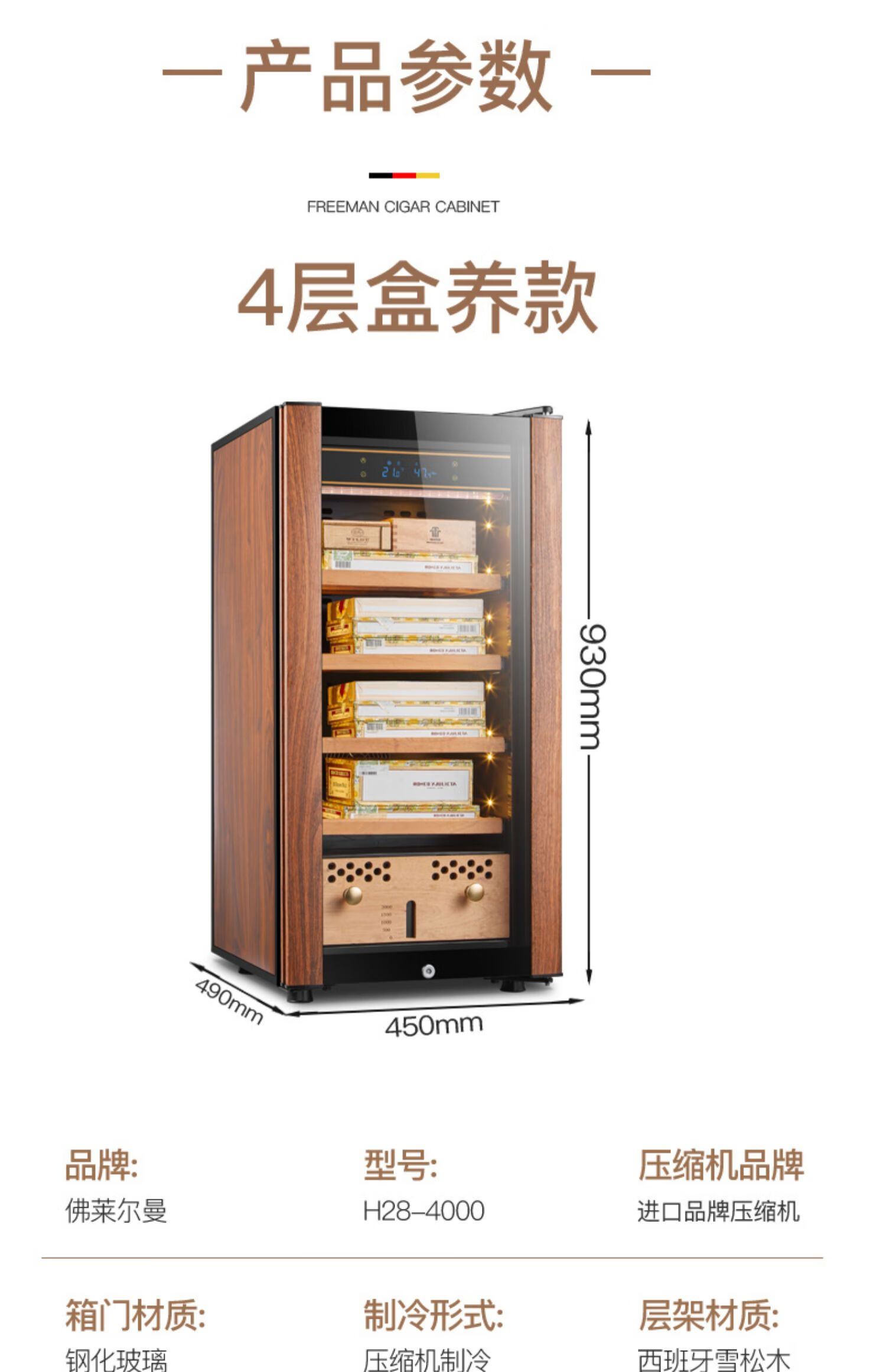 Double small HM-70 compressor cigar cabinet constant temperature and humidity household cedar wood red wine humidifier 48 bottles 4-layer box maintenance polymer