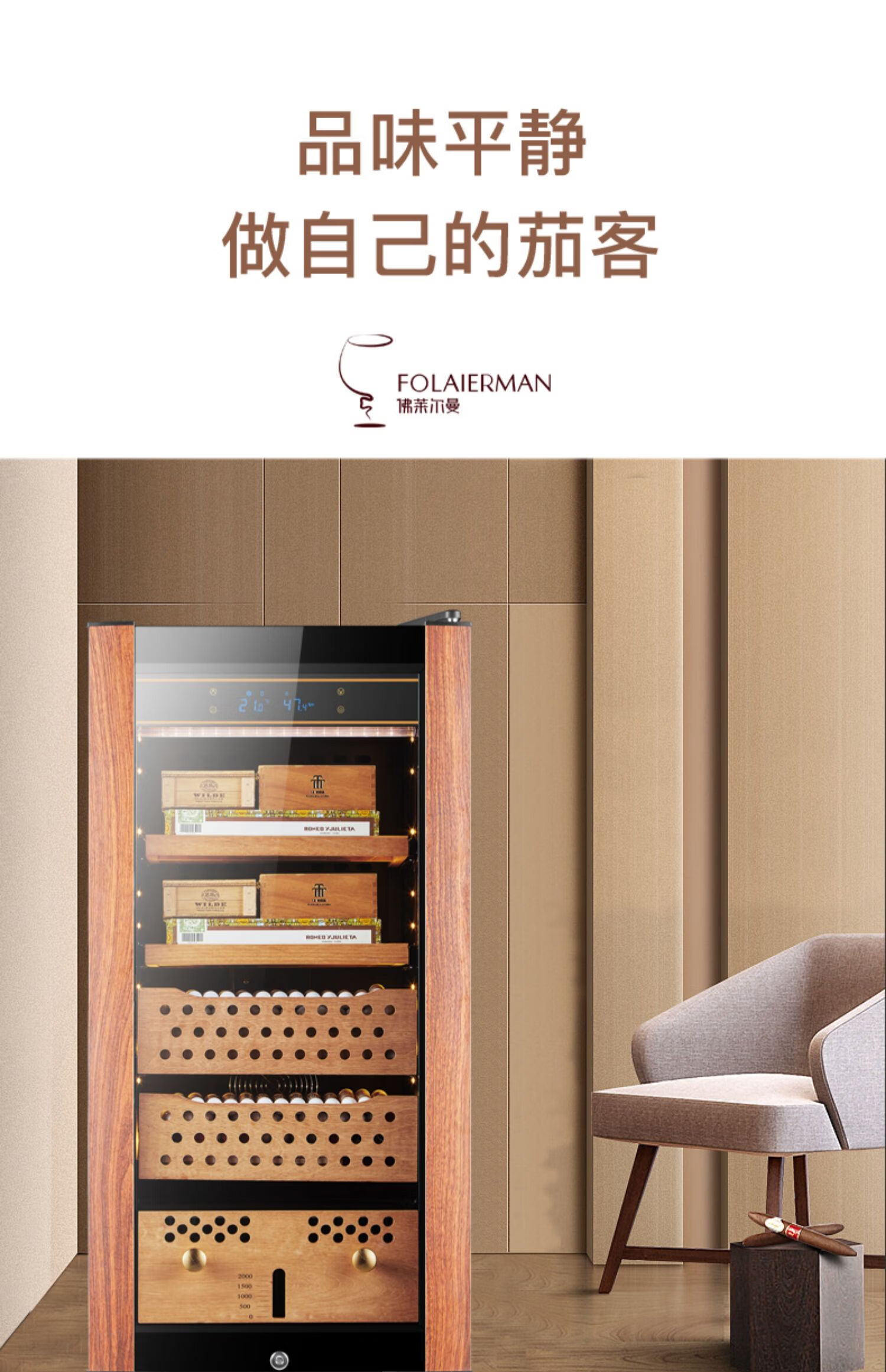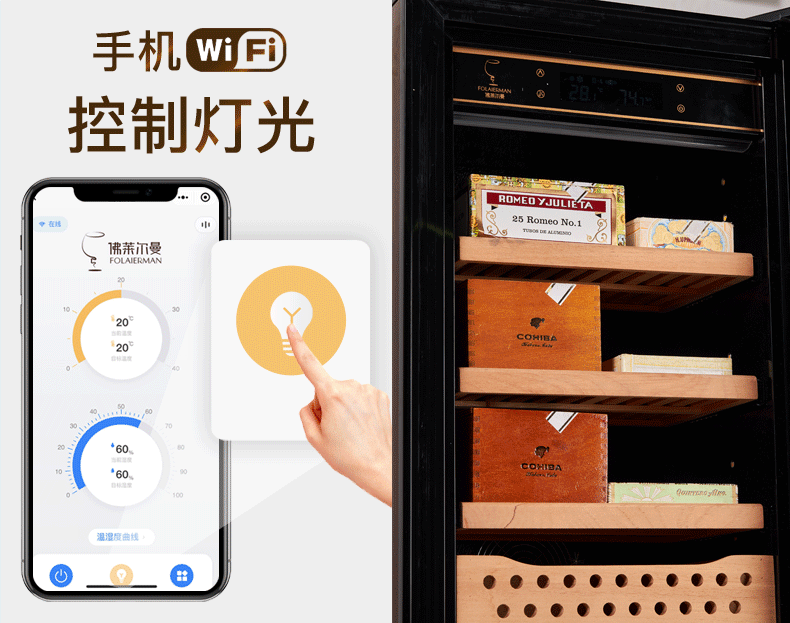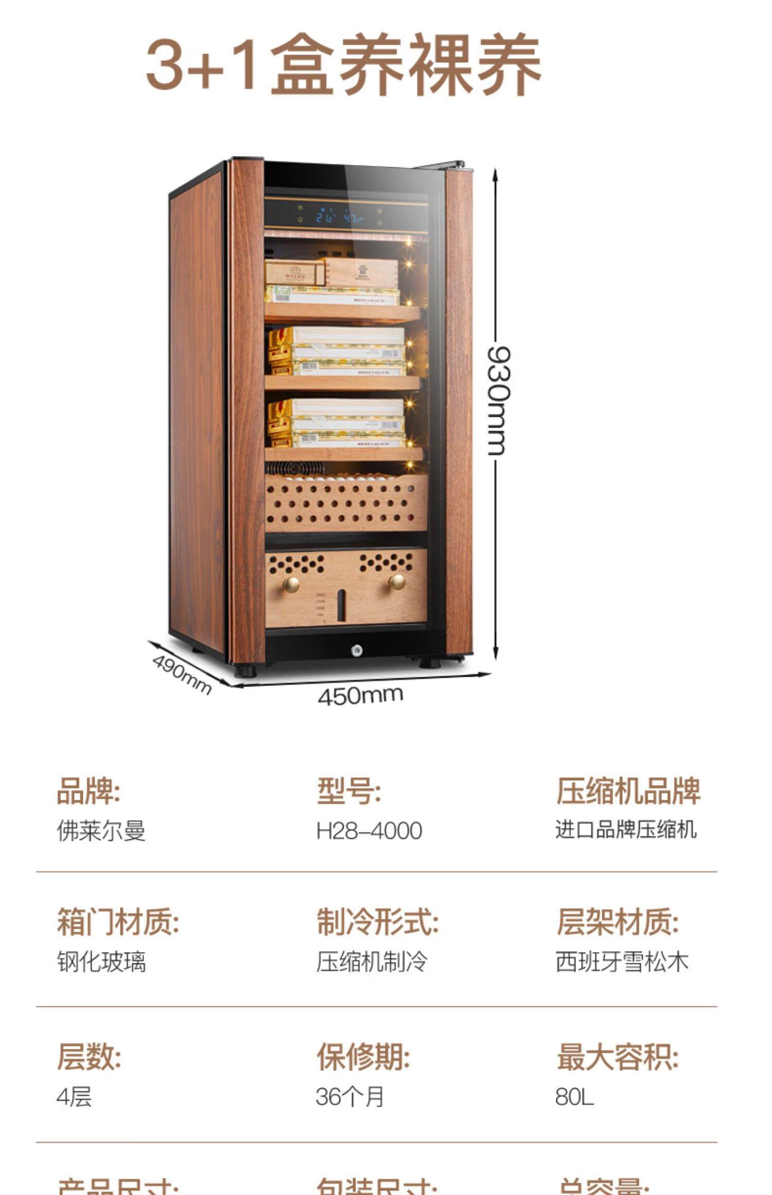 Double small HM-70 compressor cigar cabinet constant temperature and humidity household cedar wood red wine humidifier 48 bottles 4-layer box maintenance polymer