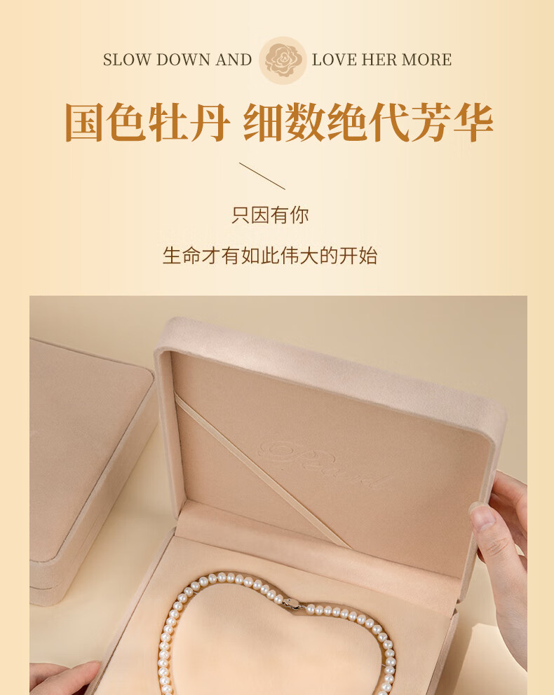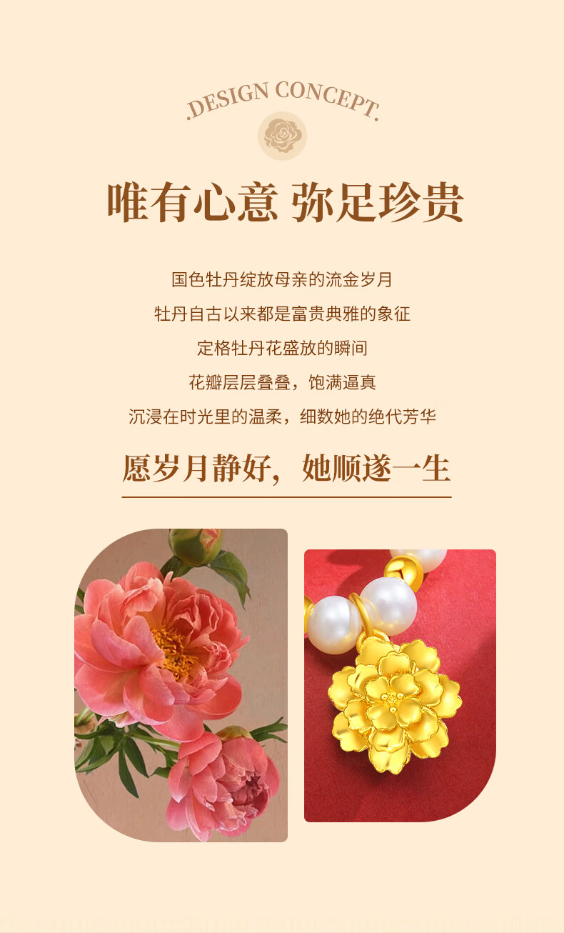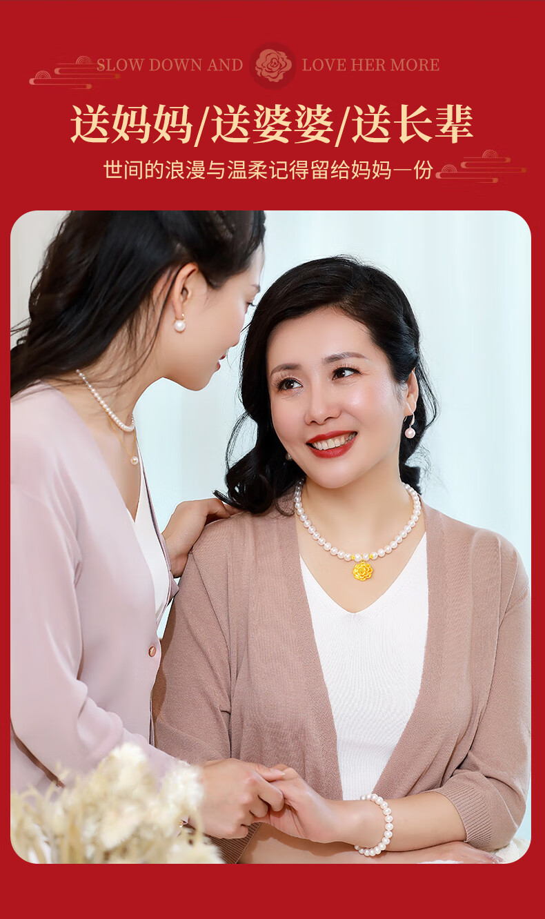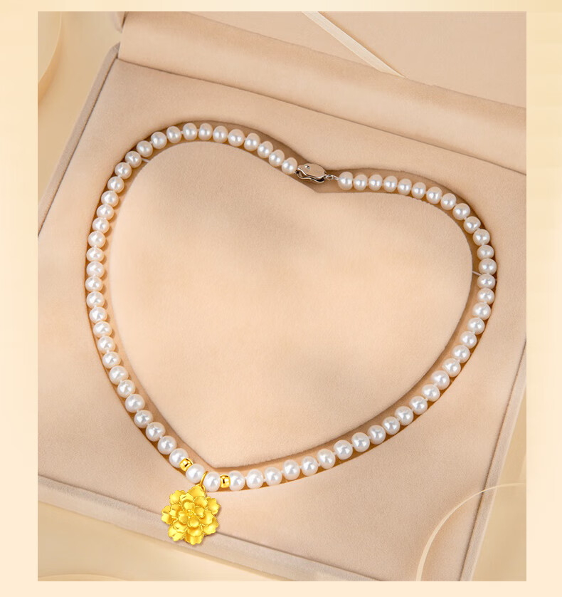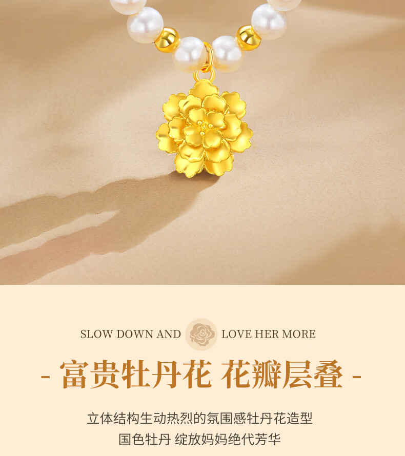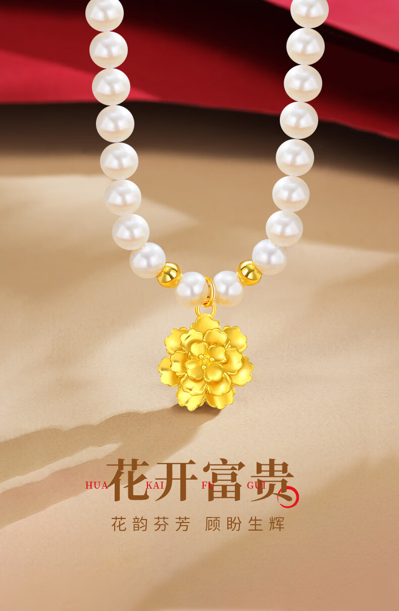 Chinese Gold Pearl Necklace Mother's Style Pure Gold Peony Pendant Anniversary Gift for Wife and Mother's Birthday Practical Jingsuda Pure Gold Rich Peony Pearl Necklace