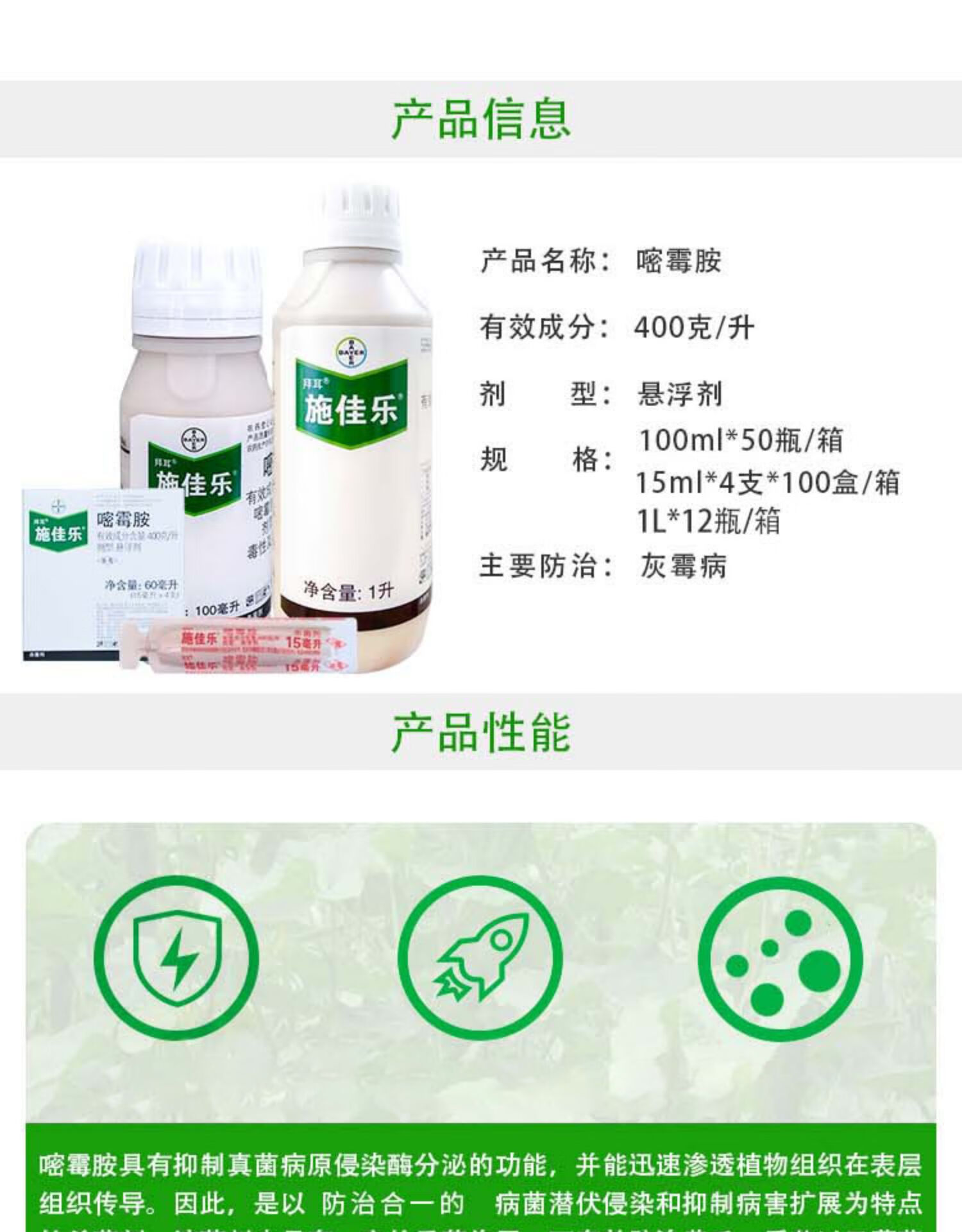 Bayer Bayer Shijialuo 40% pyrimethanamine tomato cucumber grape gray mold pesticide fungicide application of lemimycin 15ml