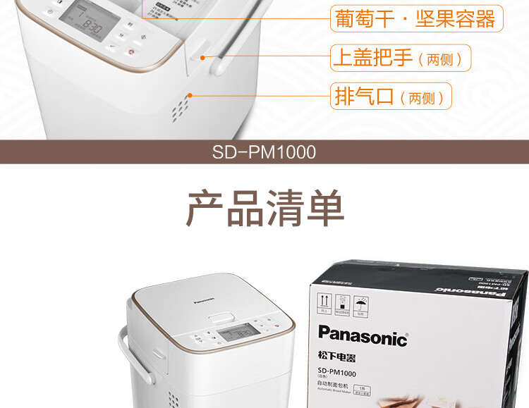 Panasonic Bread Machine Fully Automatic Bread Machine Household Bread Machine Fully Automatic Intelligent Baking Multifunctional Dough Mixer Natural Yeast Dual Temperature Control Kneader SD-PM1000 Display Machine 94 New Machine Brand New Unused/Slightly Scratched