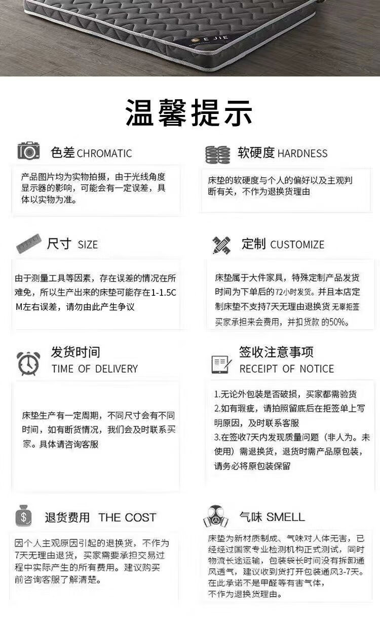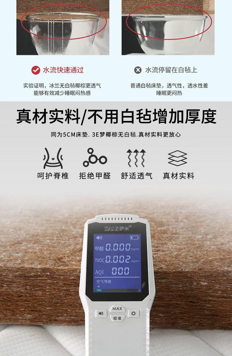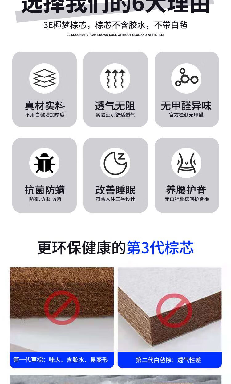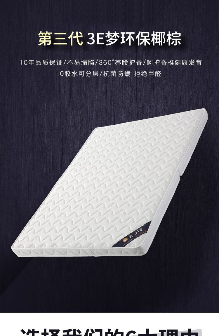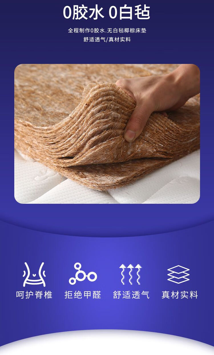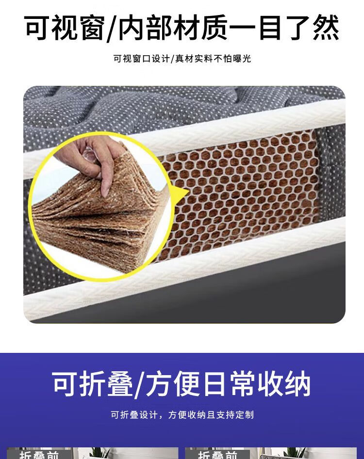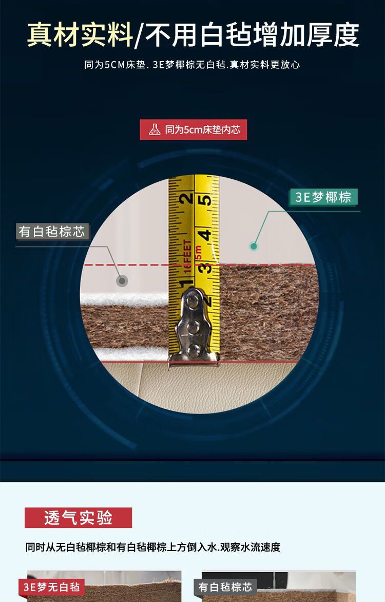 Quanyou Environmental Protection Coconut Palm Mattress Hard Cushion Latex Mattress 1.5m 1.8m Single and Double Household Folding Economical Mattress Direct Sales One-piece 5cm Environmentally Friendly 3E Brown + Knitted White 900mm *1900mm