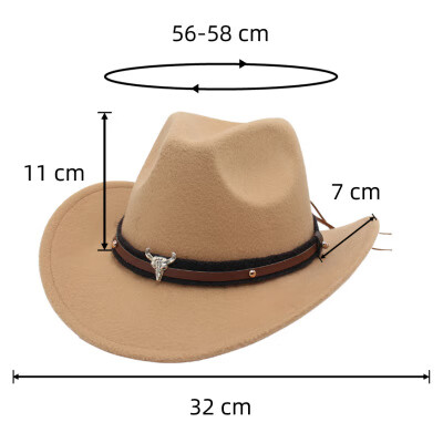 ESQTJF Tibetan tilt-up hat Western cowboy hat Tibetan felt hat new cow head prairie plateau ethnic style outdoor hat brown (cowboy calf head) M (56-58cm)