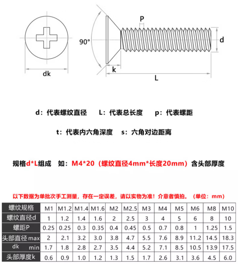 Bingneng 316 stainless steel countersunk head screw cross recessed flat head machine bolt extended machine wire screw GB819 fastener M2.5*22 50 pieces