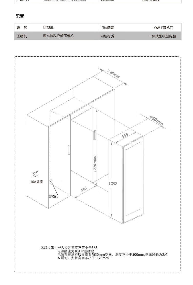 Faseeny ultra-thin embedded red wine cabinet constant temperature wine cabinet constant temperature and humidity cigar cabinet wine cabinet cold drink beer tea storage fresh cabinet built-in wine cabinet Embraco frequency conversion wine cabinet ice bar combination/Embraco frequency conversion 93 bottles 470L