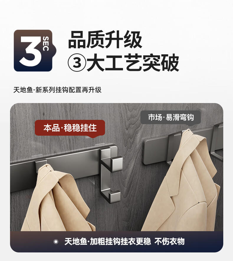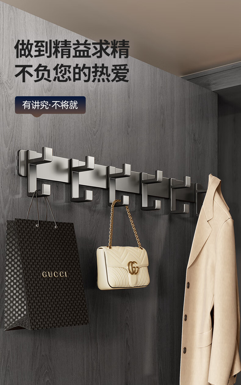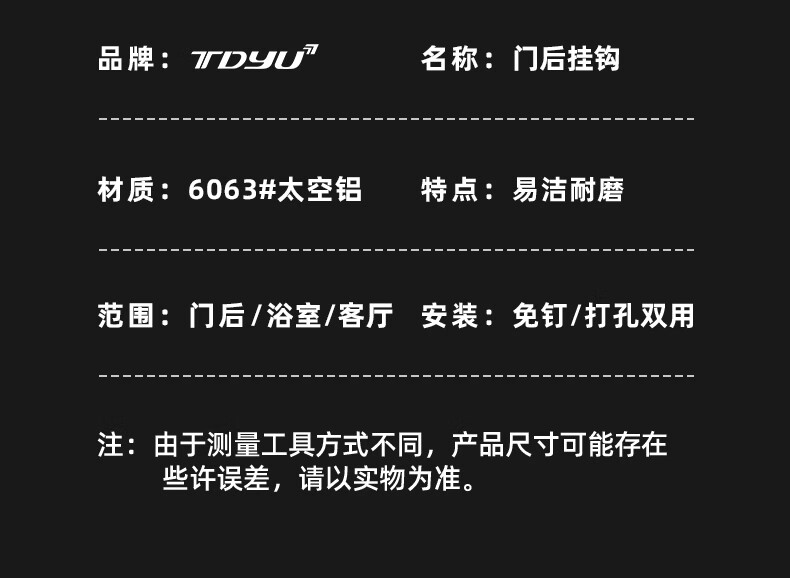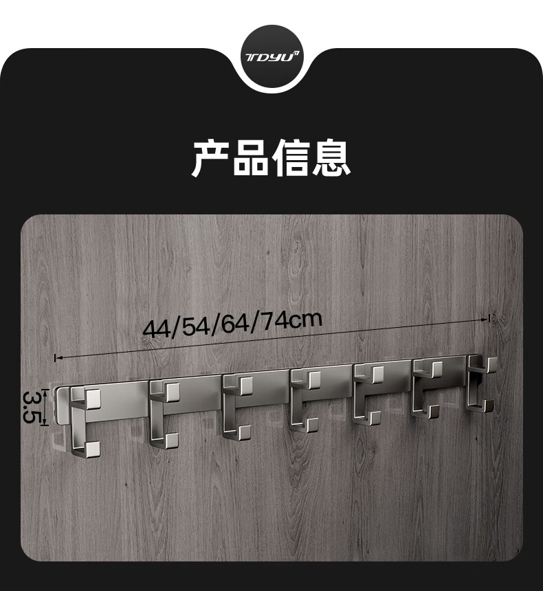 Tiandiyu (TDYU) behind-the-door clothes hanger, wall hook, hole punching in the wall, bedroom entrance door clothes hook, high-end clothes hanger, gun gray, double row, five hooks = 10 hooks