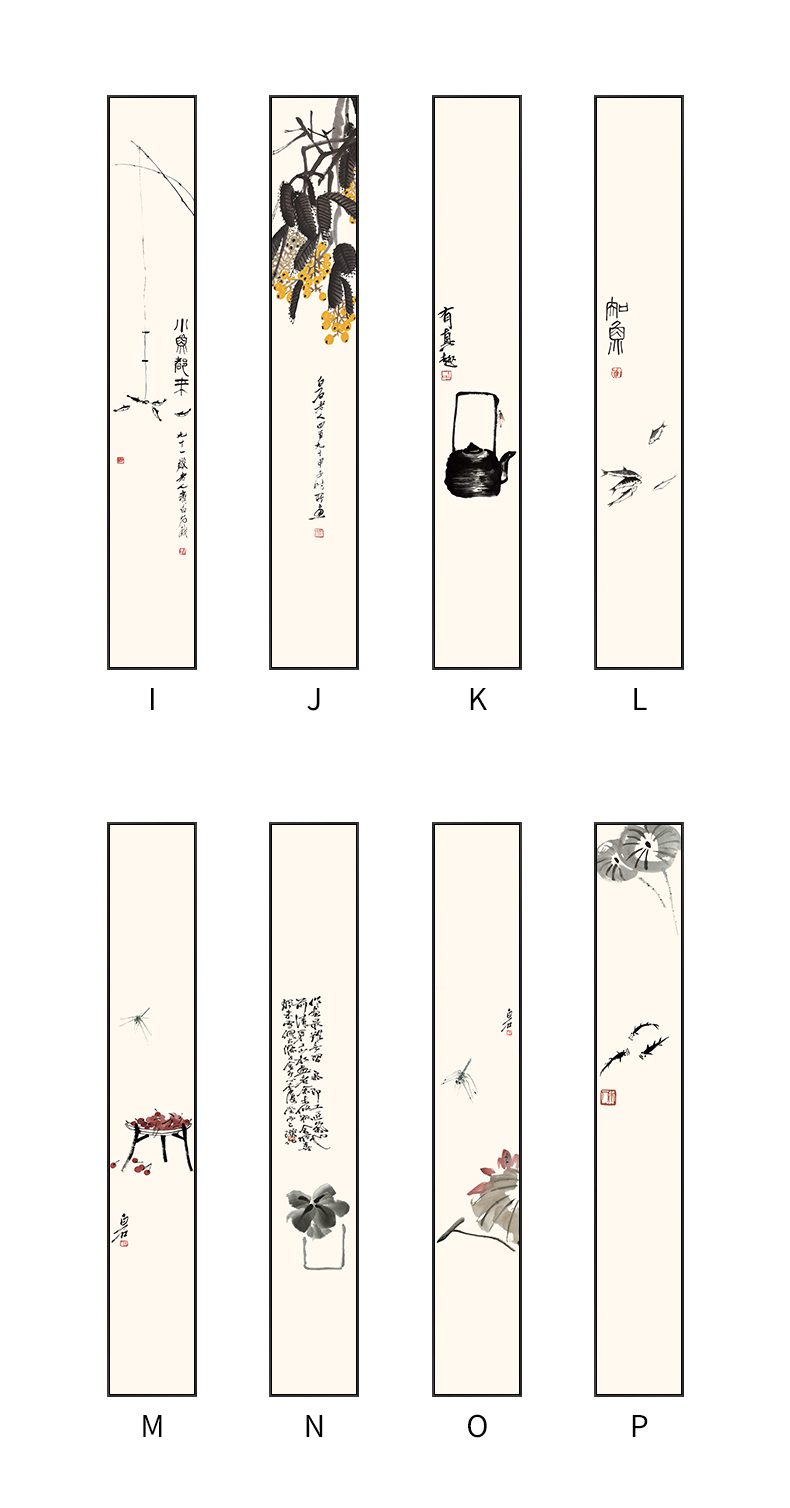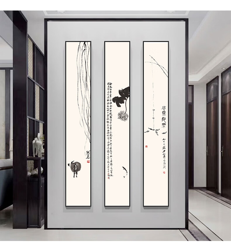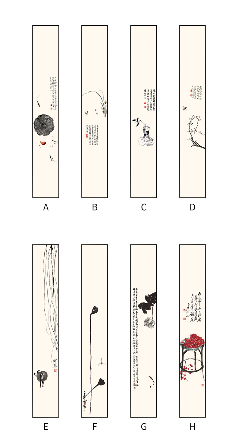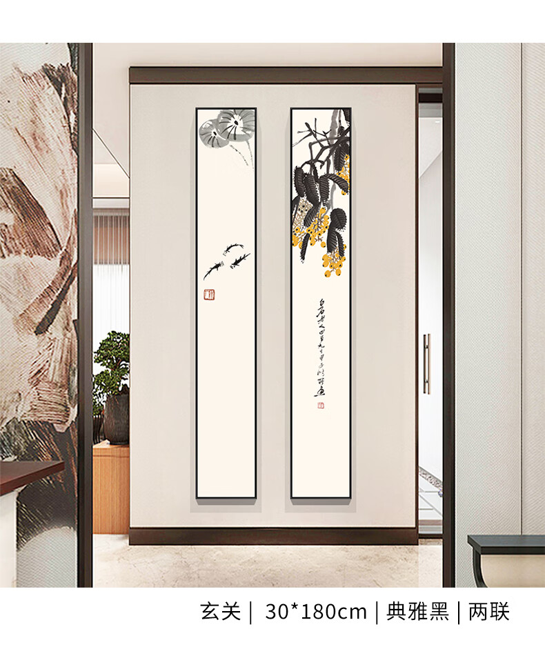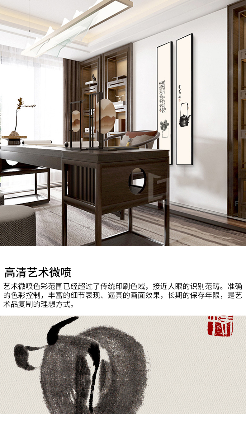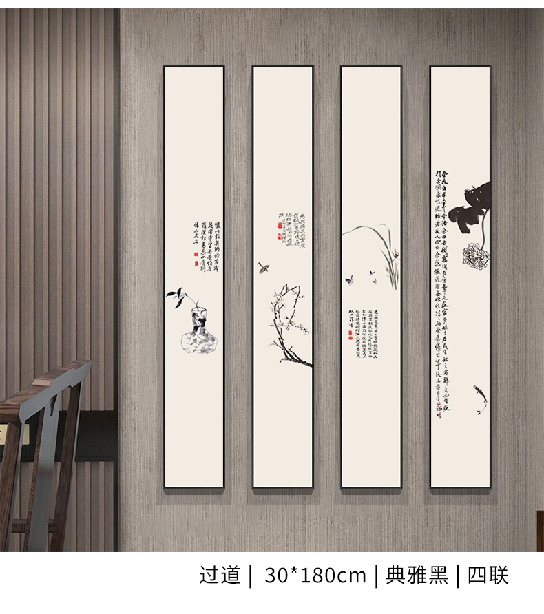 Liuran Painting Art New Chinese Style Living Room Decoration Painting Narrow Strip Porch Hanging Painting Vertical Zen Ink Painting Tea Room Background Wall Corridor Mural Quadruple Combination (B.C.D.G Style by Default) 20*120CM Elegant Black (Environmentally Friendly Frame + Canvas)
