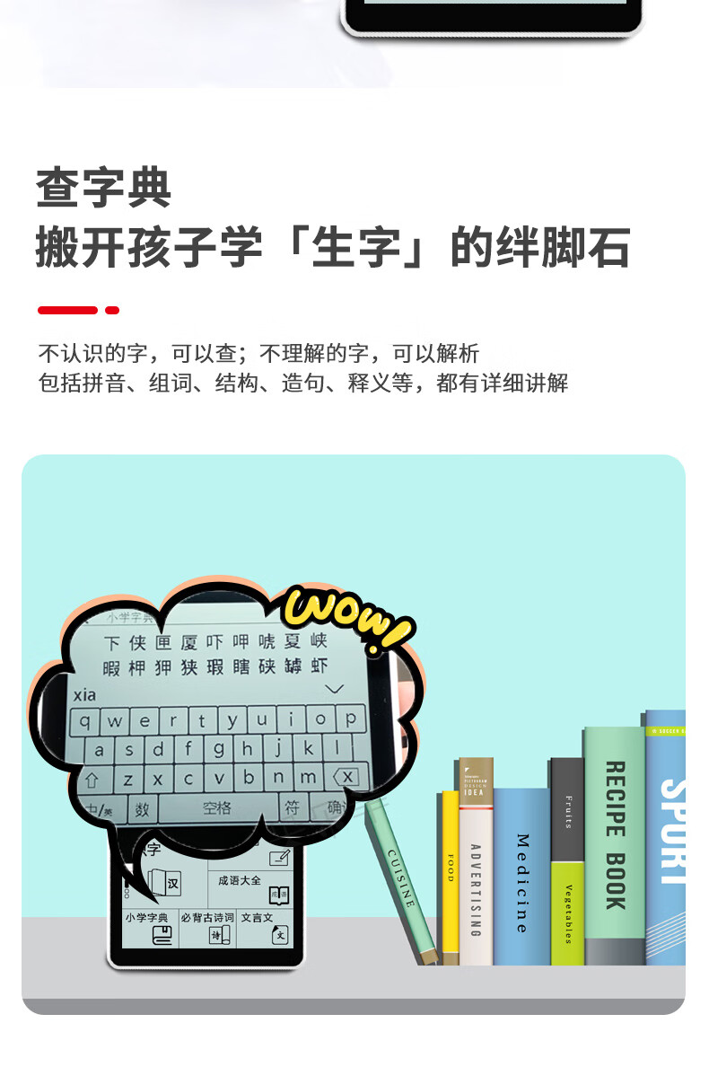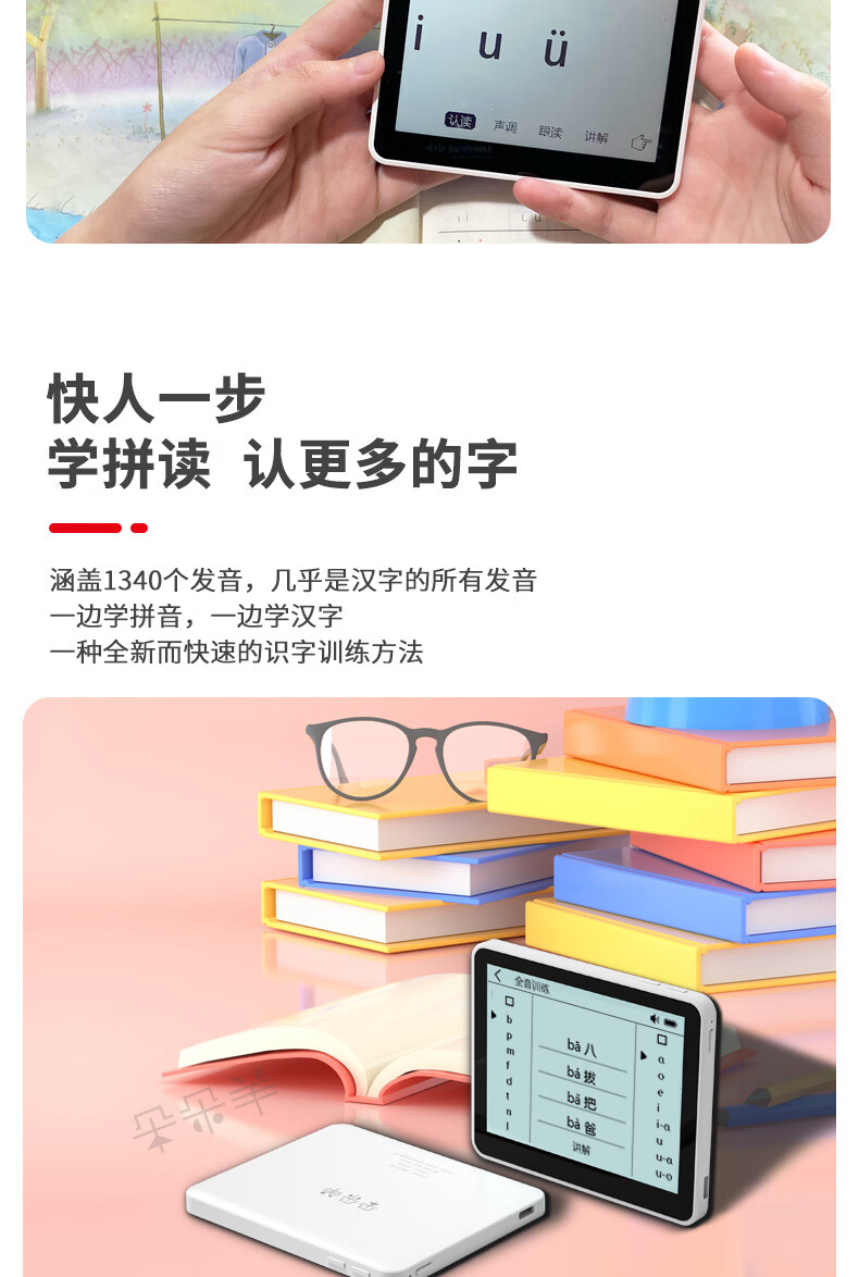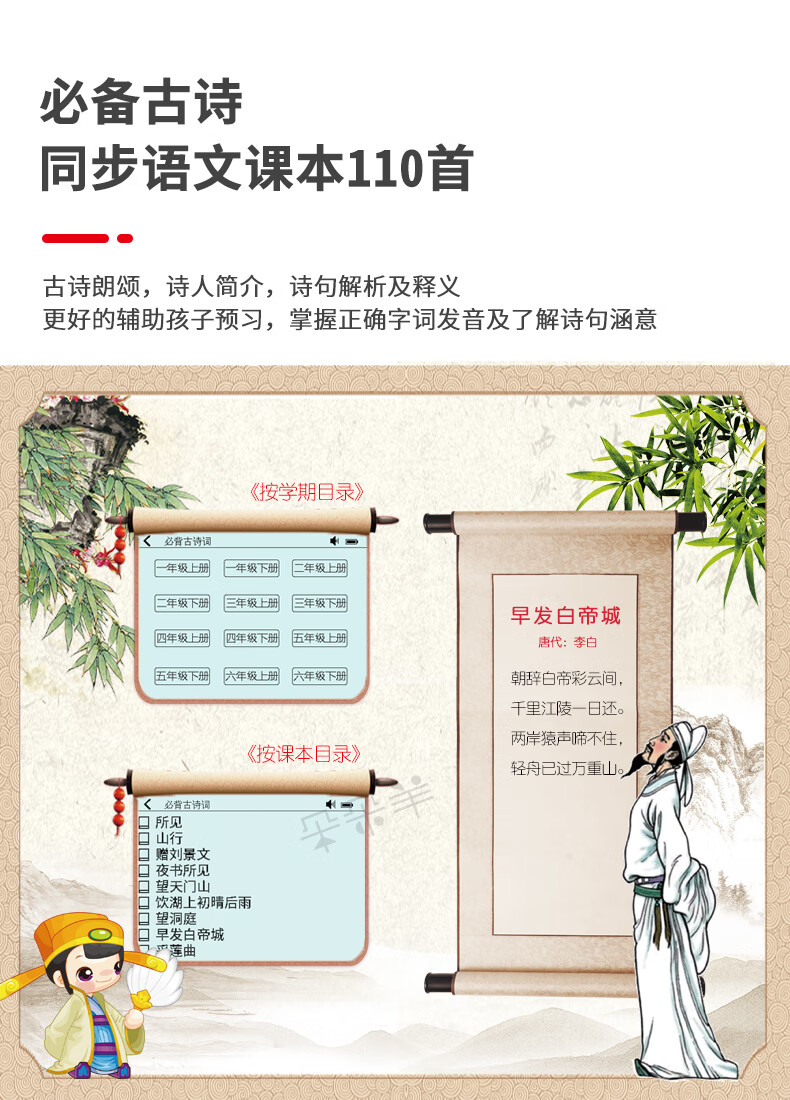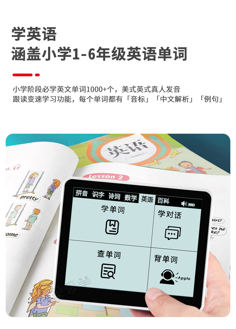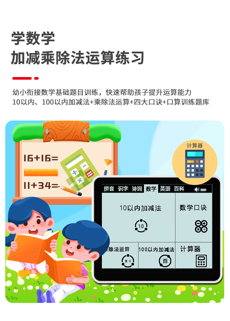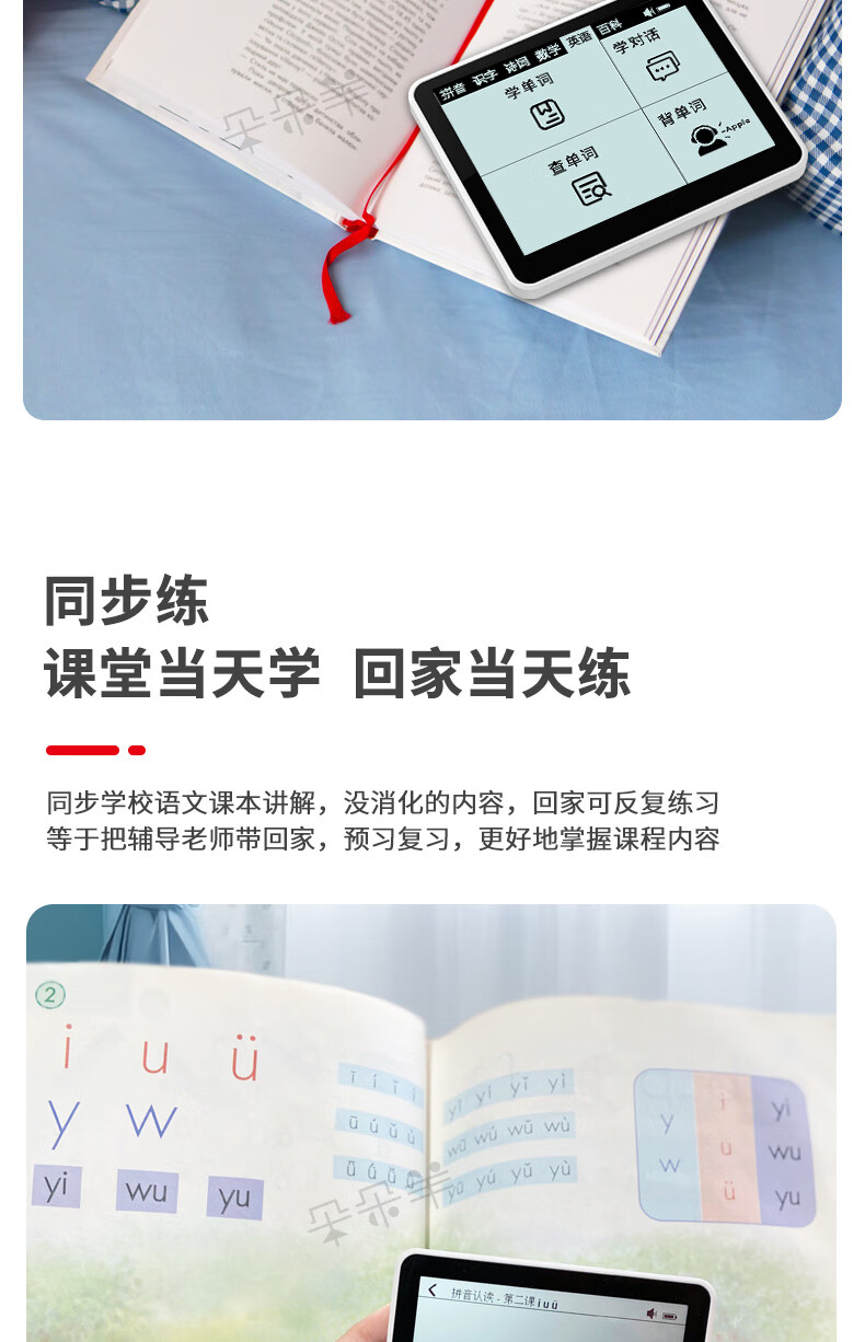 Duoduoyang Pinyin recognition synchronizes primary school Chinese, English and math learning. Young children connect students' word spelling training, ancient poetry point reading machine, early education artifact. Dictionary for grades 1-6. Language, math and English comprehensive learning package. Original silicone cover + special storage box