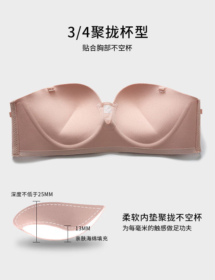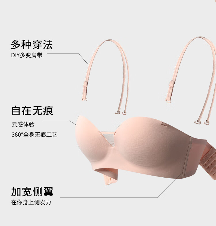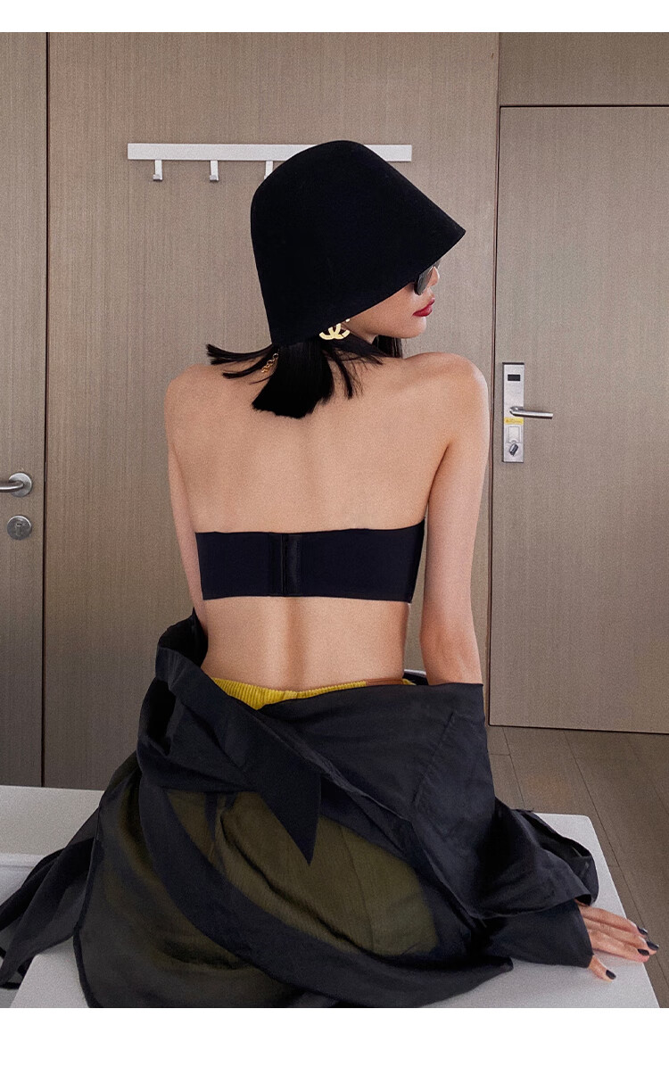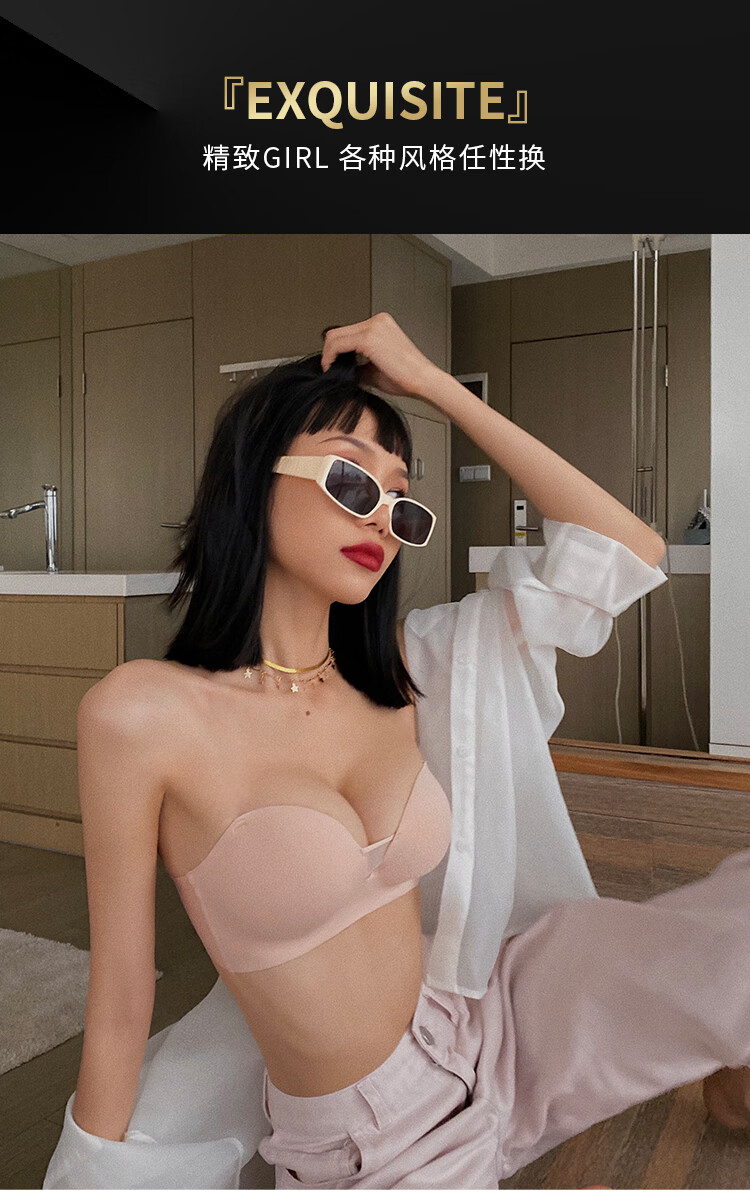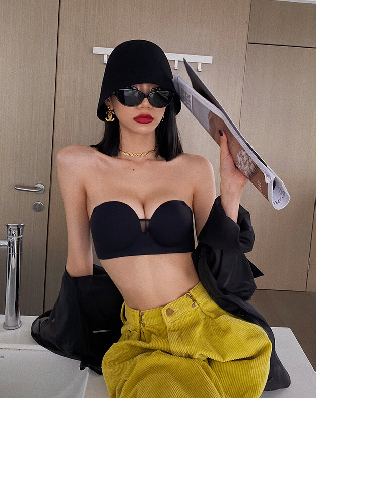 Strapless summer sexy cross-strap invisible bra underwear, anti-slip, anti-sagging, auxiliary breast collection, anti-exposure, black 75AB