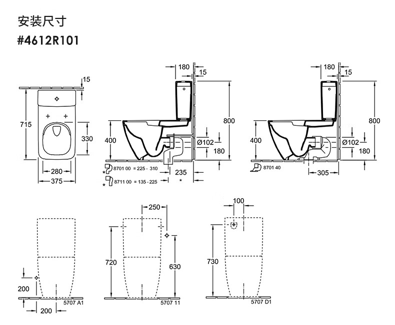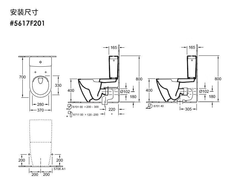 German Villeroy & Boch one-piece ceramic toilet toilet household split-type floor-to-ceiling toilet high-impact direct-rotation flush Subway 2.0/5617F201+5706A101 305