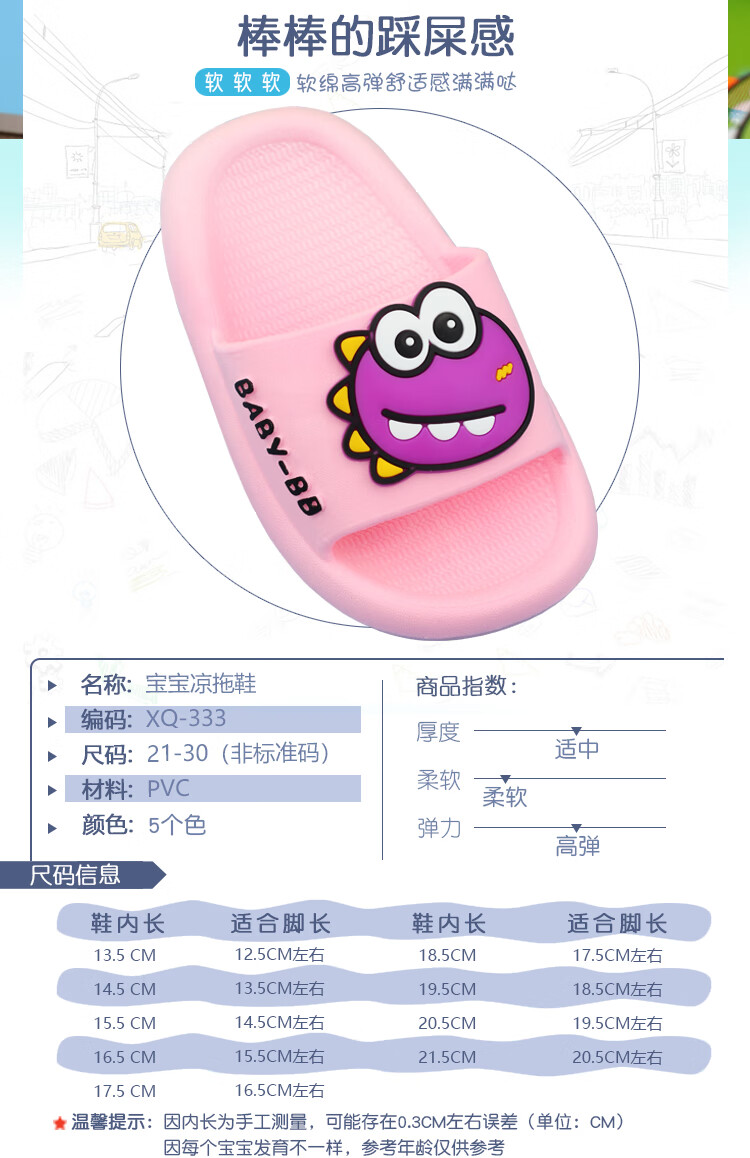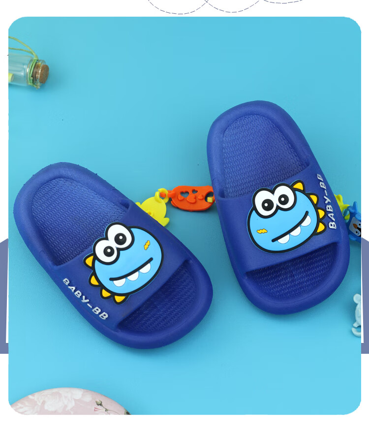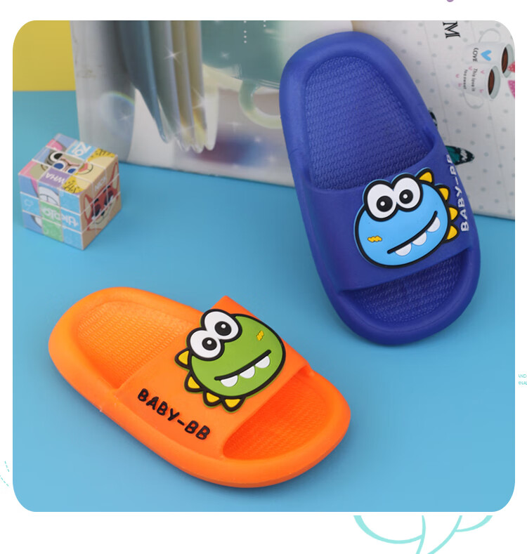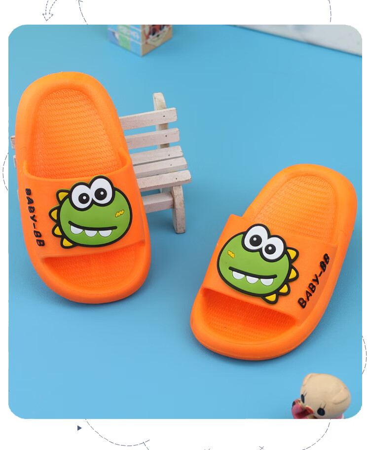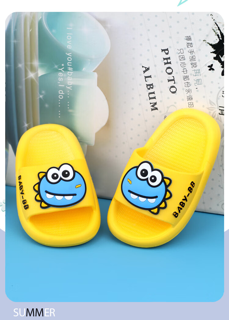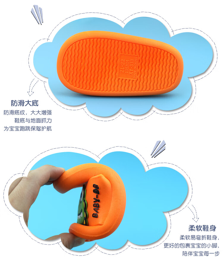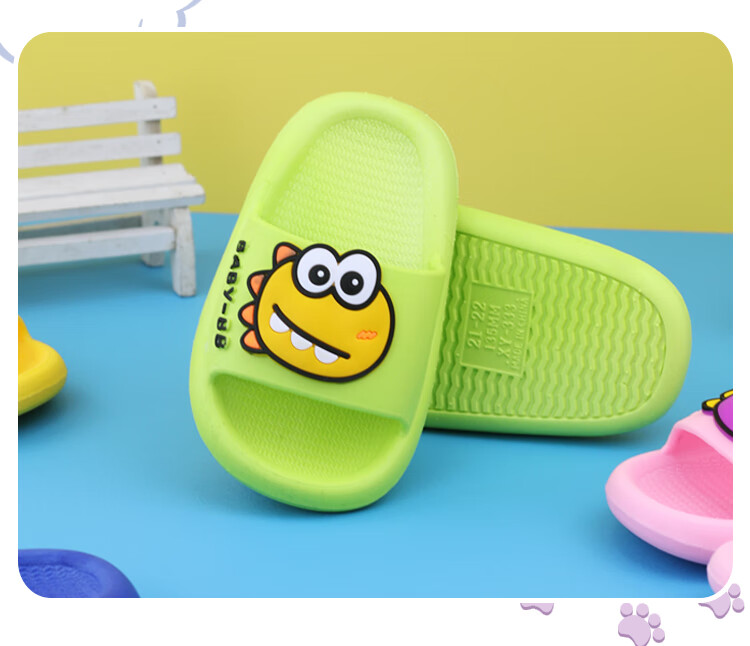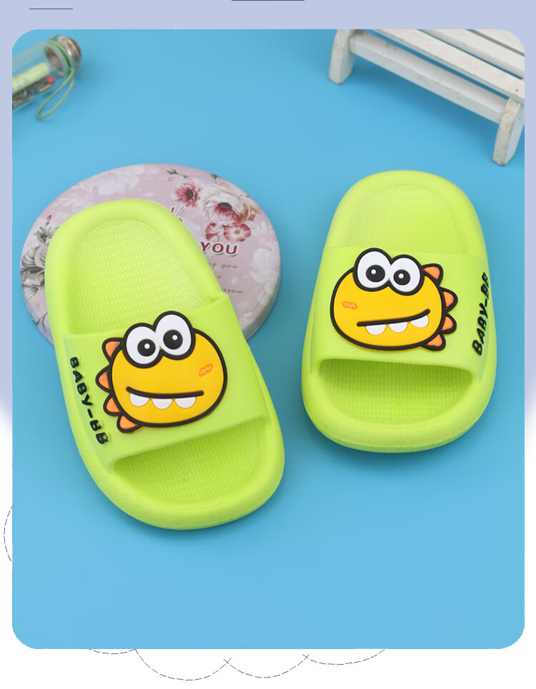 G.duck boy baby slippers summer one and a half year old children's shoes indoor children's non-slip 3-year-old girl's slippers soft green size 15 inner length 13.5CM (suitable