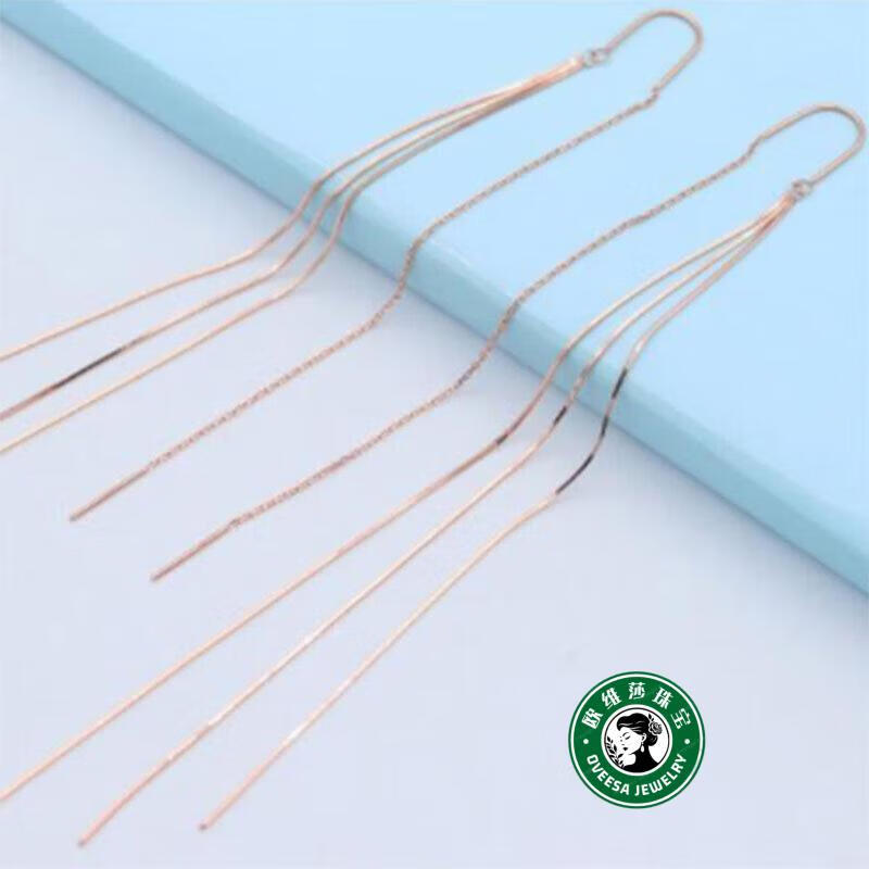 DR-FLVVS ear wire color gold 18k gold Russian purple gold earrings new fashion simple temperament plated 18K rose gold snake bone flow tassel ear wire (pair of rose gold)
