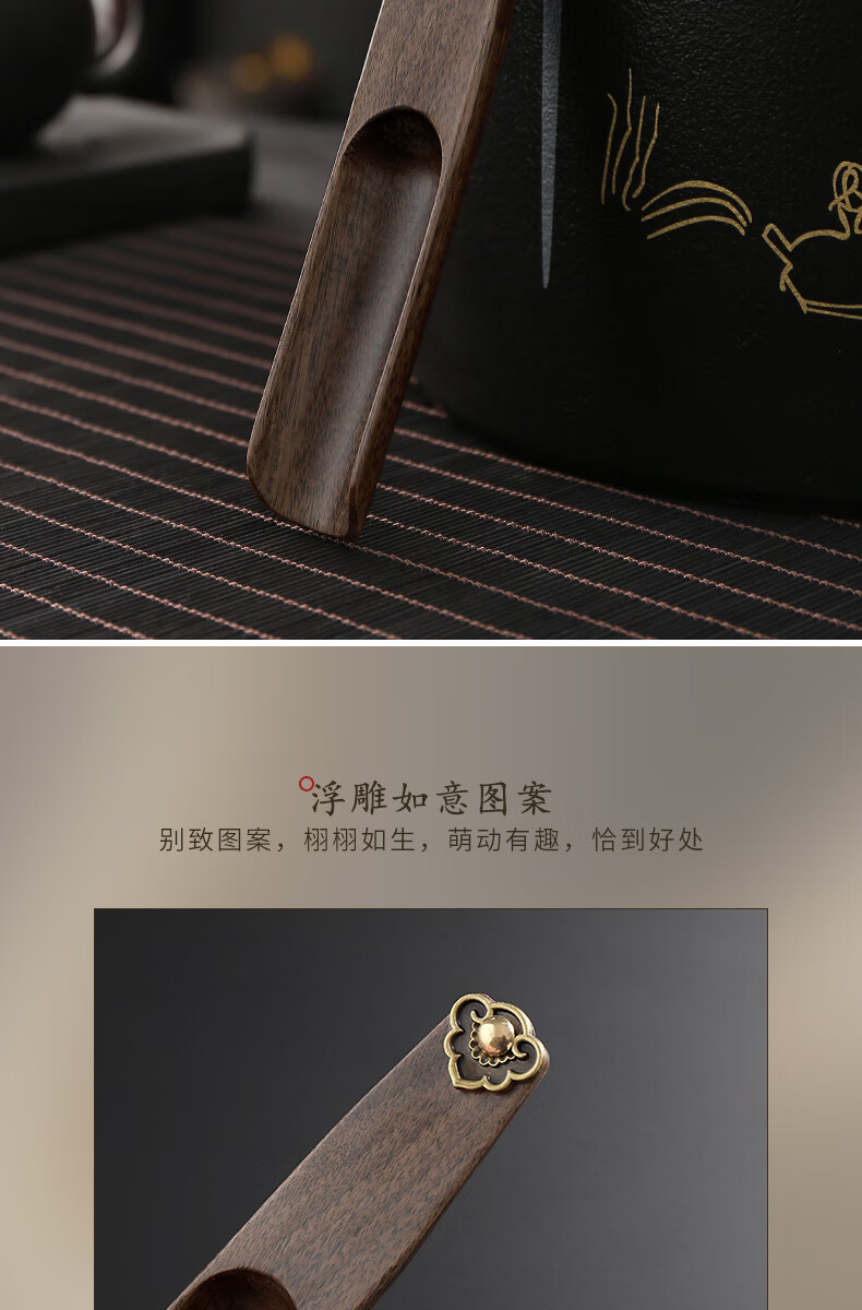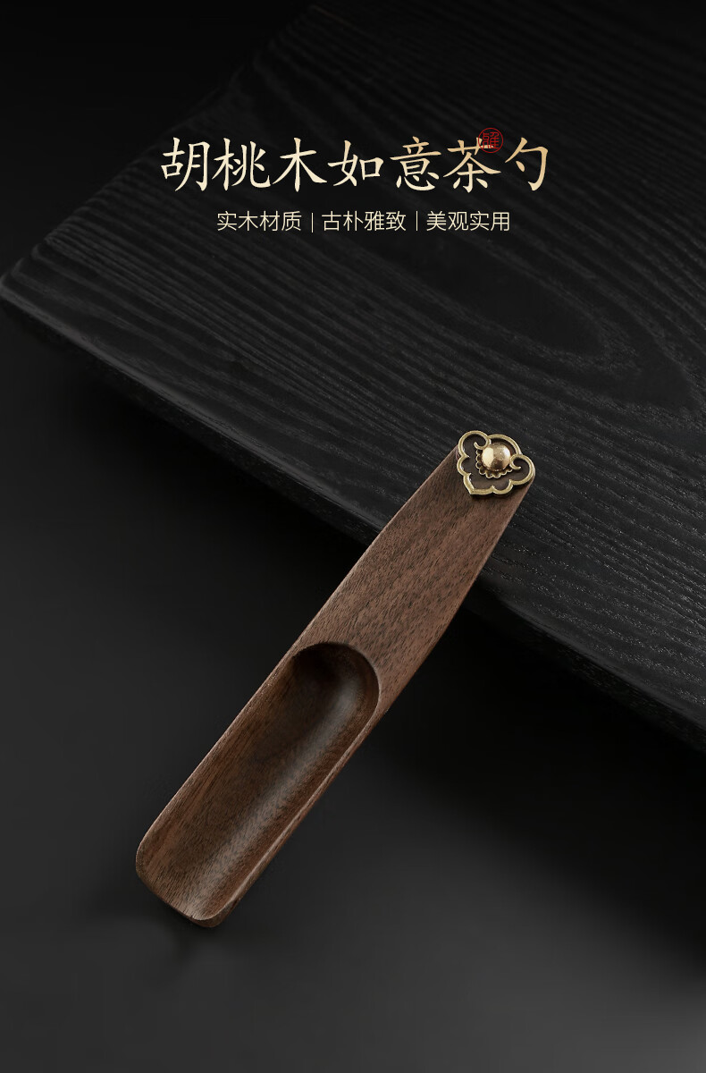 Tao Fuqi walnut tea spoon home reception Kung Fu tea ceremony tea set accessories tea can tea spoon measuring teaspoon tea shovel walnut Ruyi tea spoon