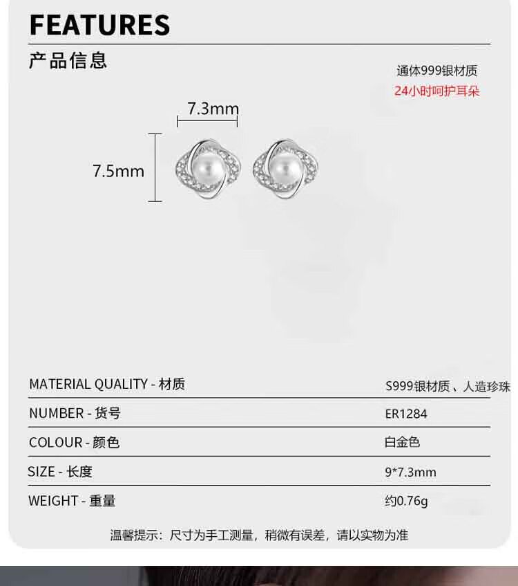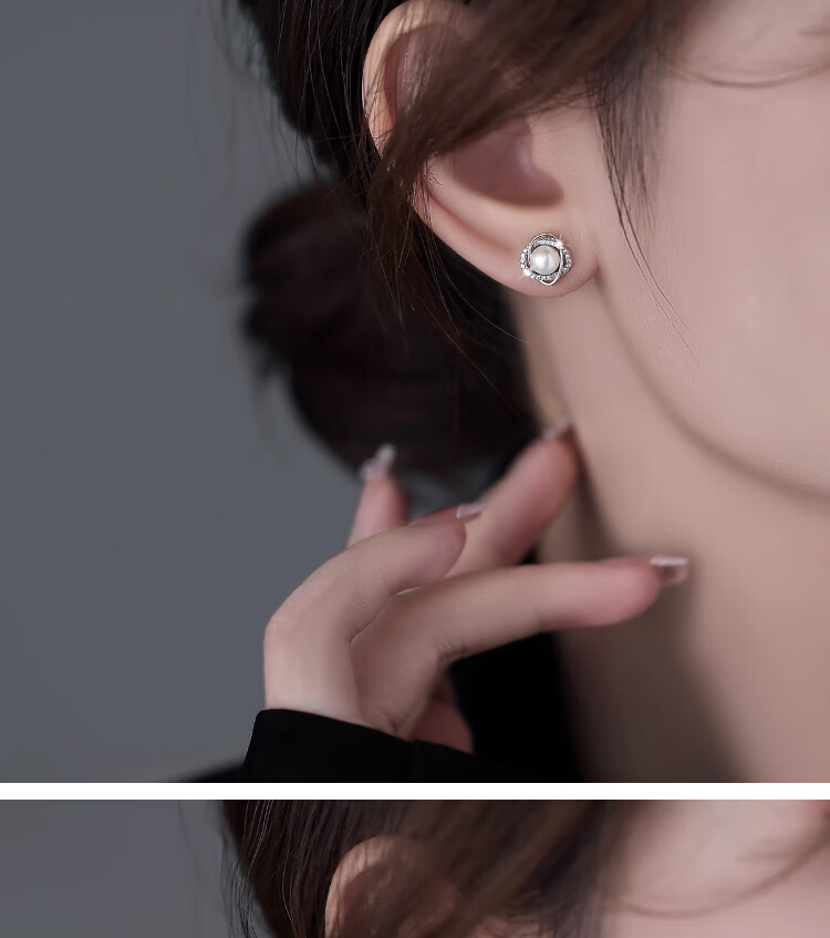 Qi Xiaomi Pure S999 Pure Silver Pearl Earrings for Women Sleeping Free Small Earrings 2025 New Trendy Imitation Pearl Earrings Pair