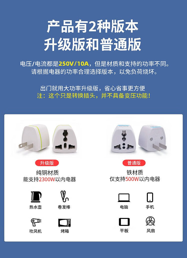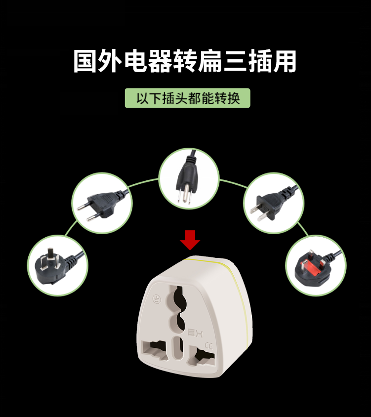 Philippi conversion plug power supply round head Hong Kong foreign round hole multi-function three plug international socket Australian global three to two flat three plug Australian standard
