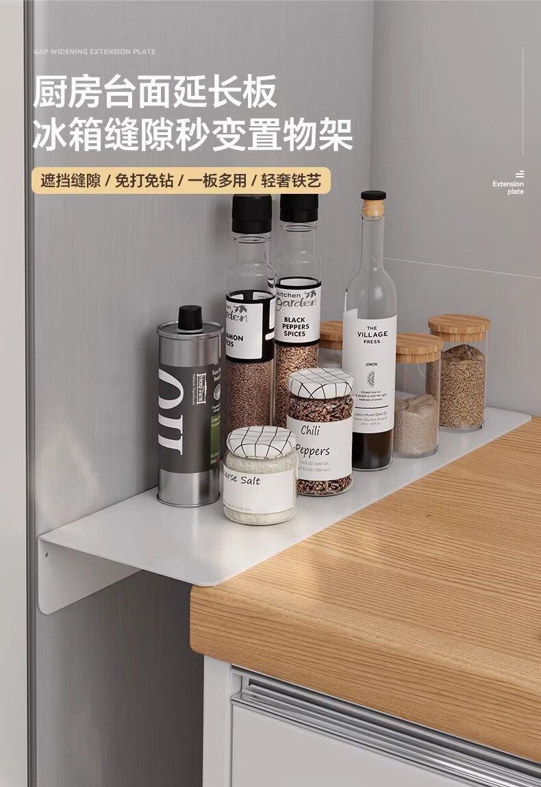 Countertop gap side widening extension partition punch-free magnetic absorption storage rack kitchen refrigerator gap baffle magnetic suction white 40cm*20