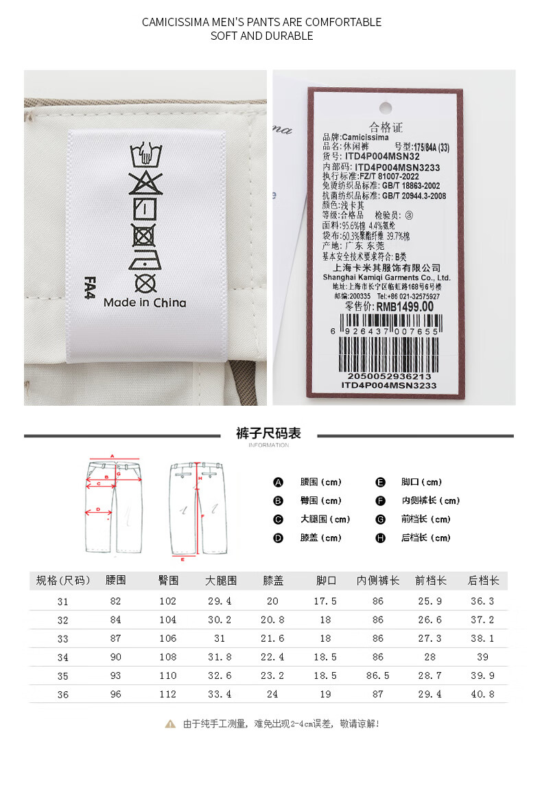 CAMICISSIMA antibacterial no-iron khaki casual trousers khaki 32