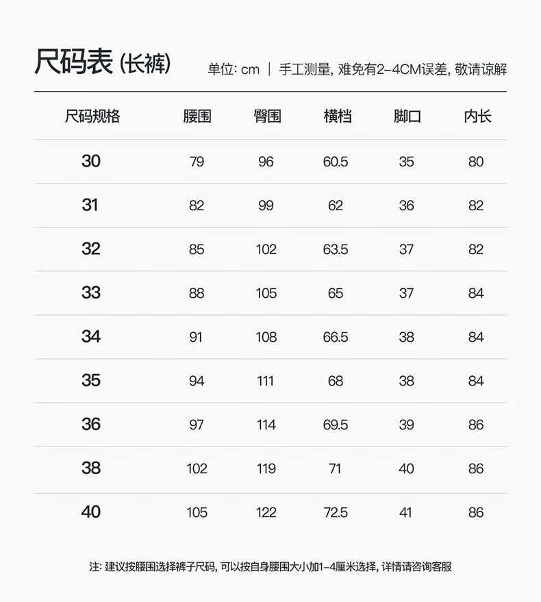Outseam (cm) 99 cm 101.5 cm 104 cm 106.5 cm 109 cm