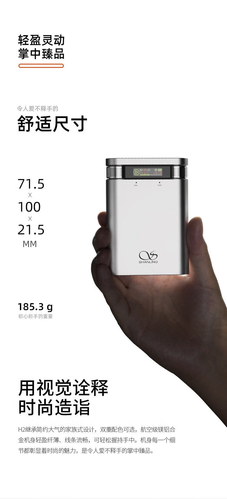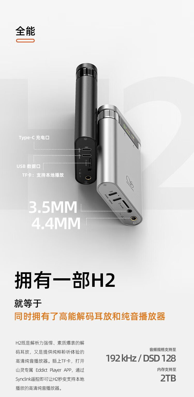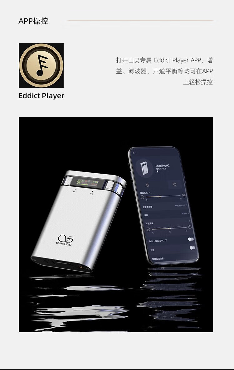 SHANLING H2 decoding headphone amp all-in-one headphone audio amplifier pure tone player portable small tail 4.4 balanced Bluetooth 5.0 H2 black