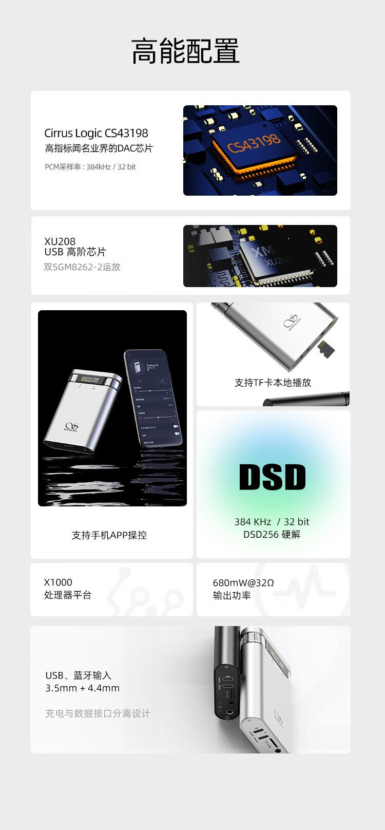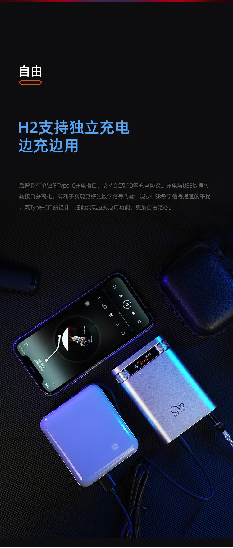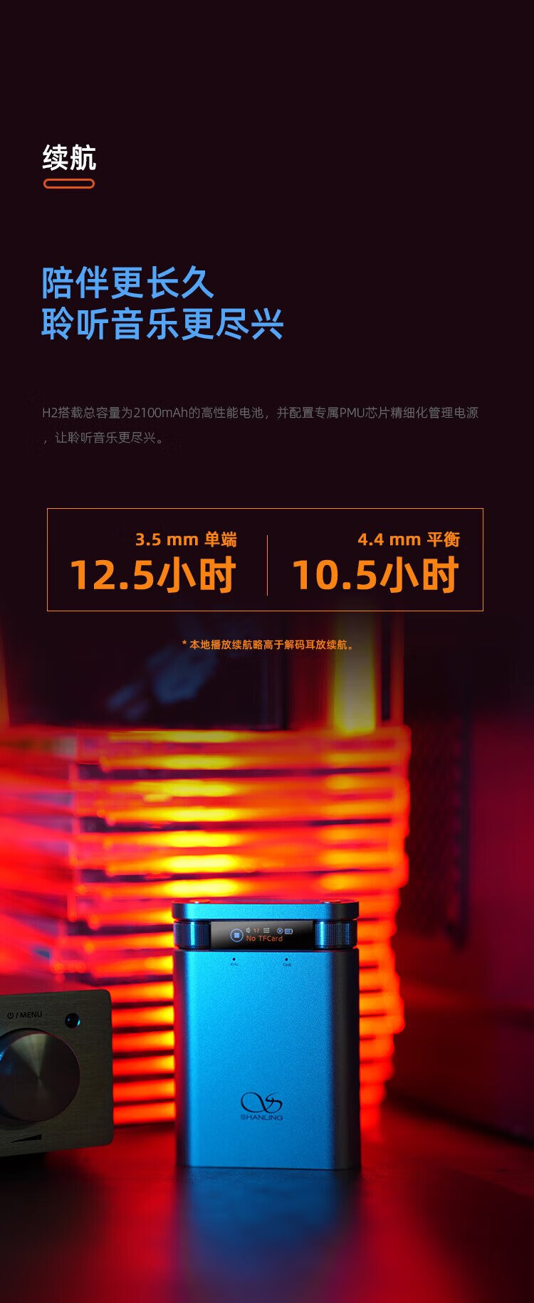 SHANLING H2 decoding headphone amp all-in-one headphone audio amplifier pure tone player portable small tail 4.4 balanced Bluetooth 5.0 H2 black