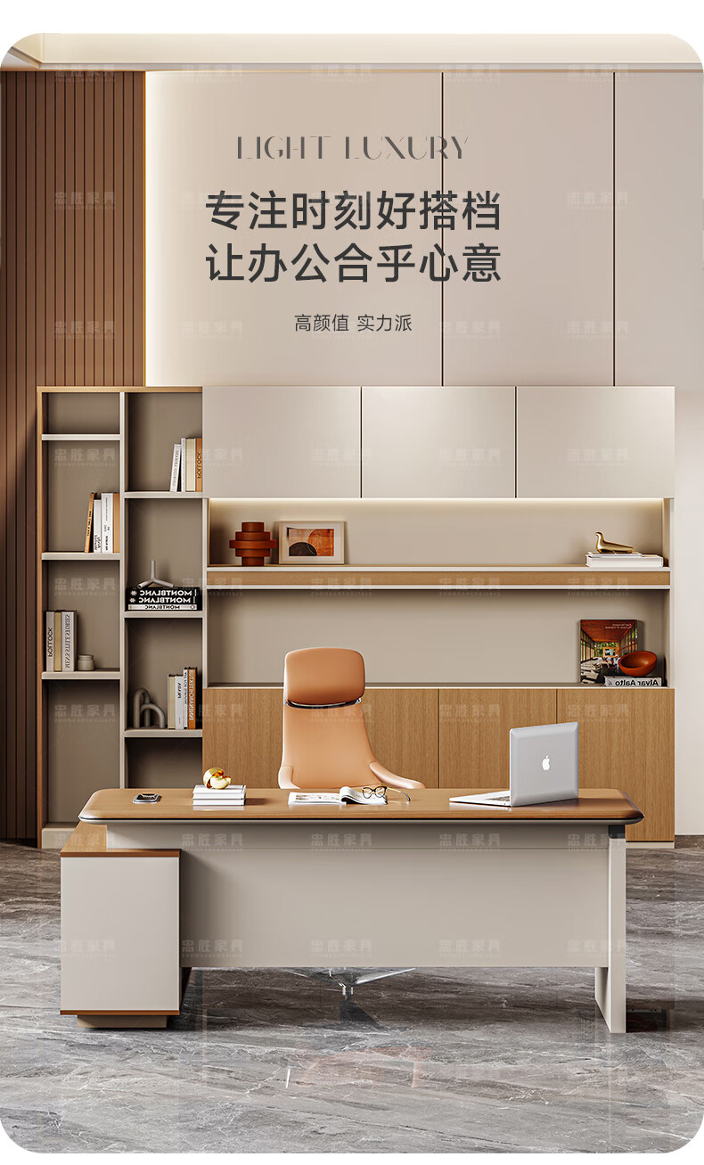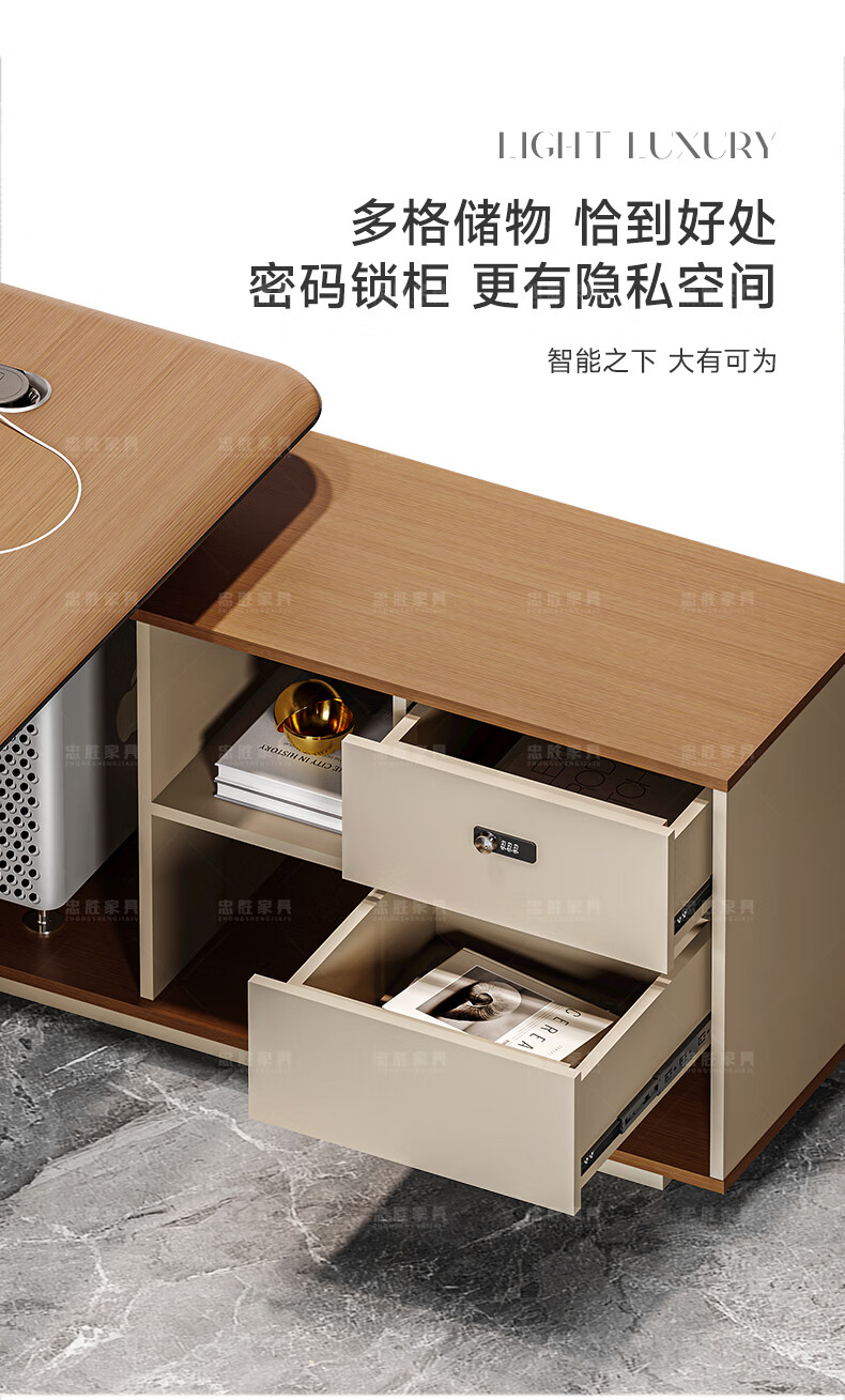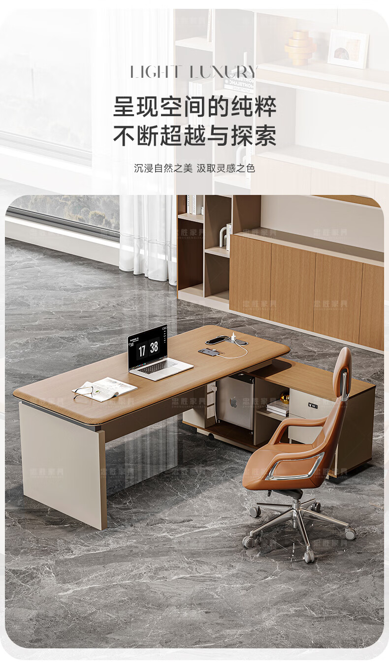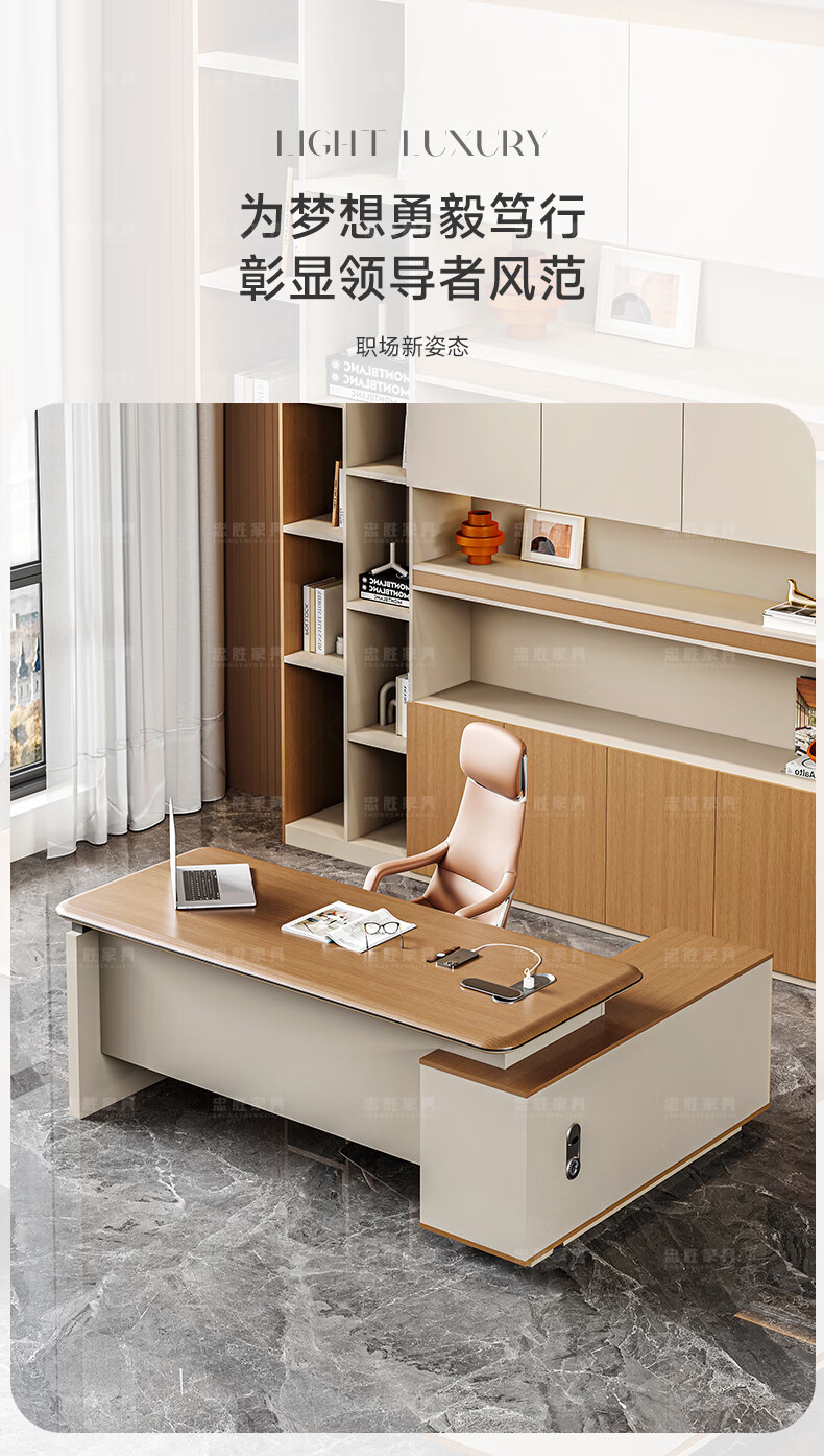 Zhongsheng Office Furniture E0 Level Manager Desk Boss Table and Chair Combination Simple Modern High-end Home Desk Supervisor Desk 2.24 Meter File Cabinet E0 Level Environmentally Friendly Material