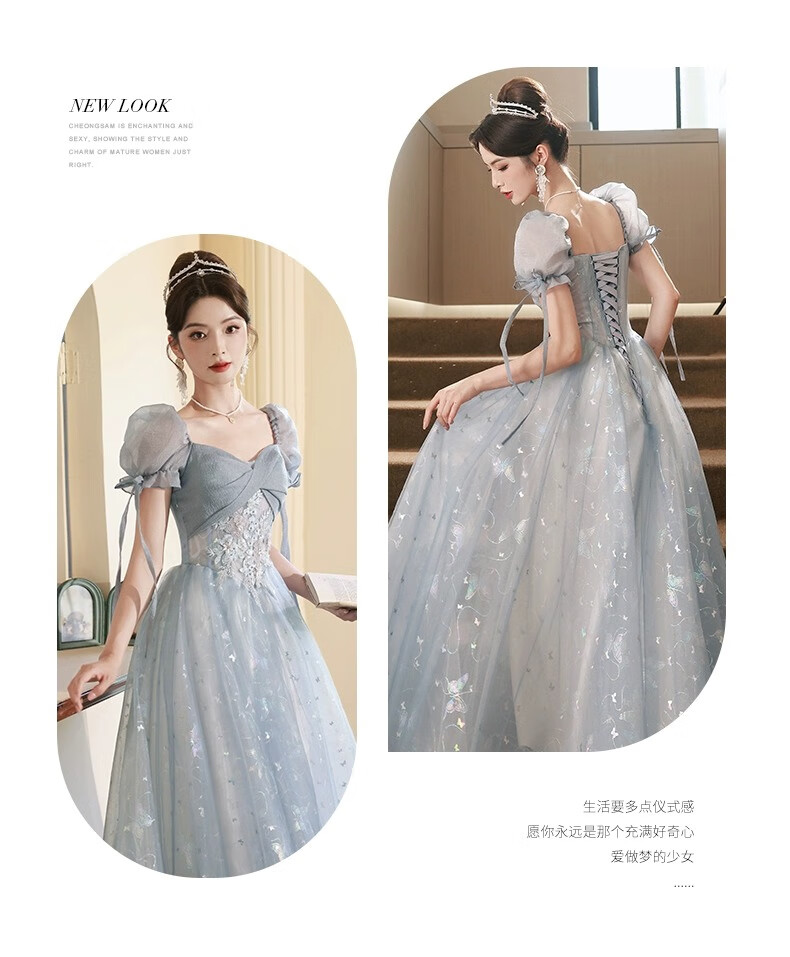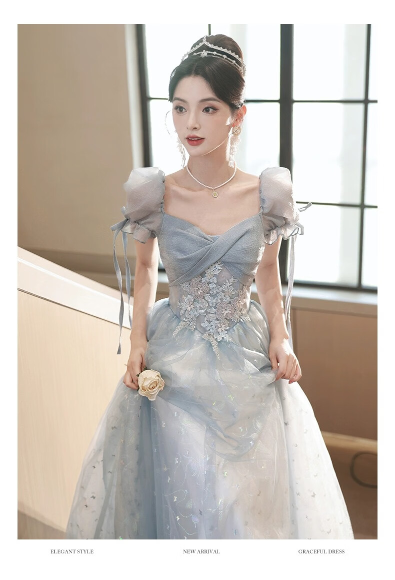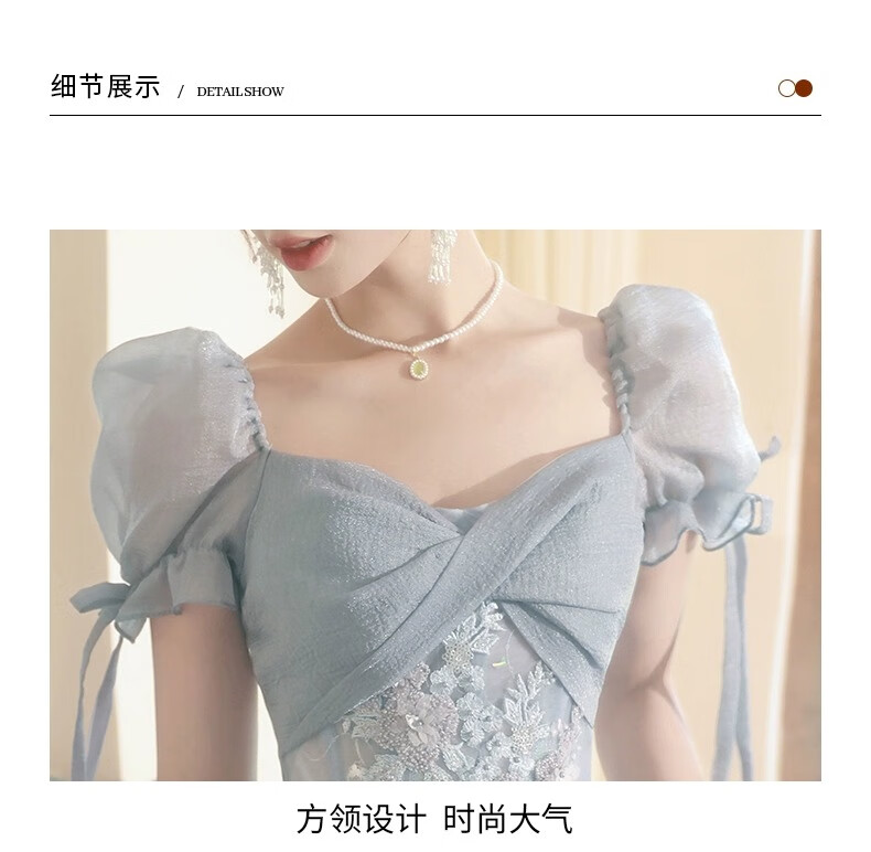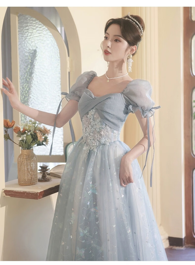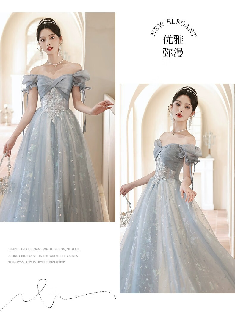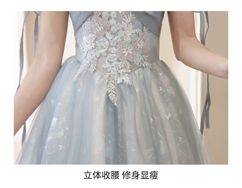 Li Baixin blue evening dress banquet light luxury niche temperament high-end advanced sense art test host adult ceremony for women spring blue M recommended 90-100Jin Jin equals 0.5 kg