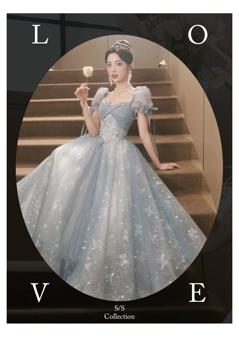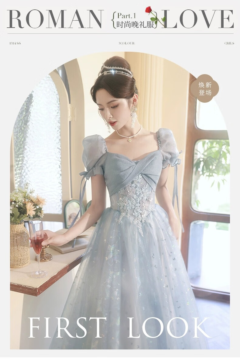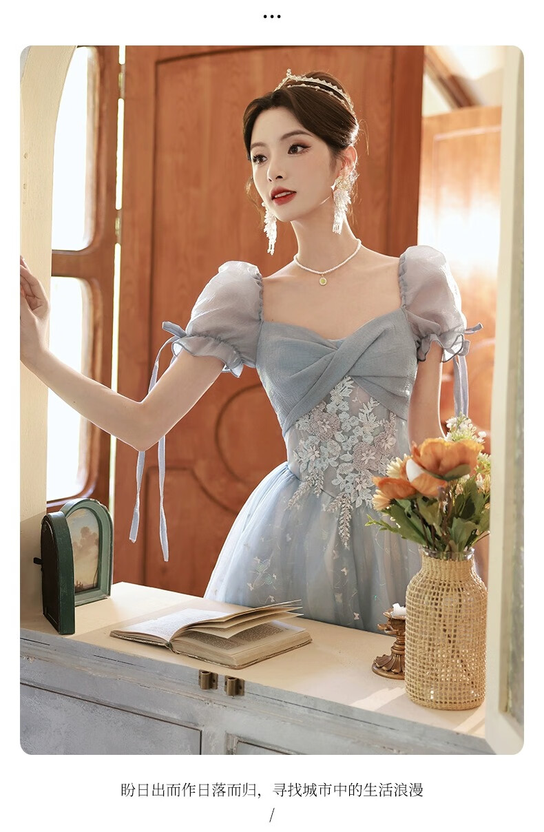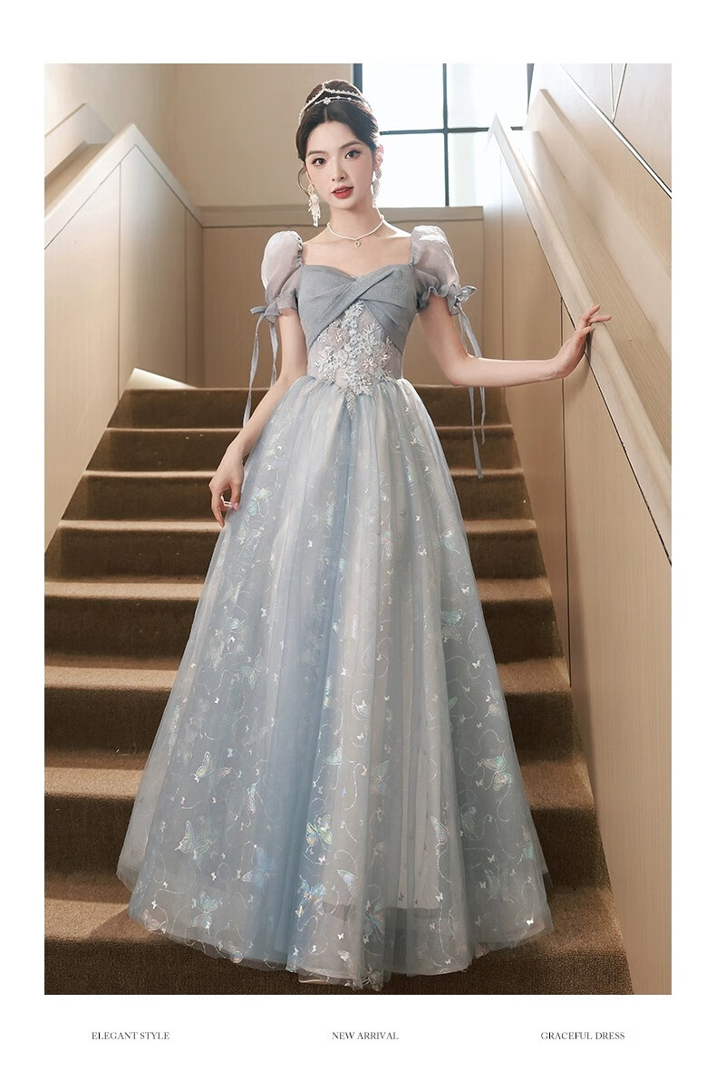 Li Baixin blue evening dress banquet light luxury niche temperament high-end advanced sense art test host adult ceremony for women spring blue M recommended 90-100Jin Jin equals 0.5 kg