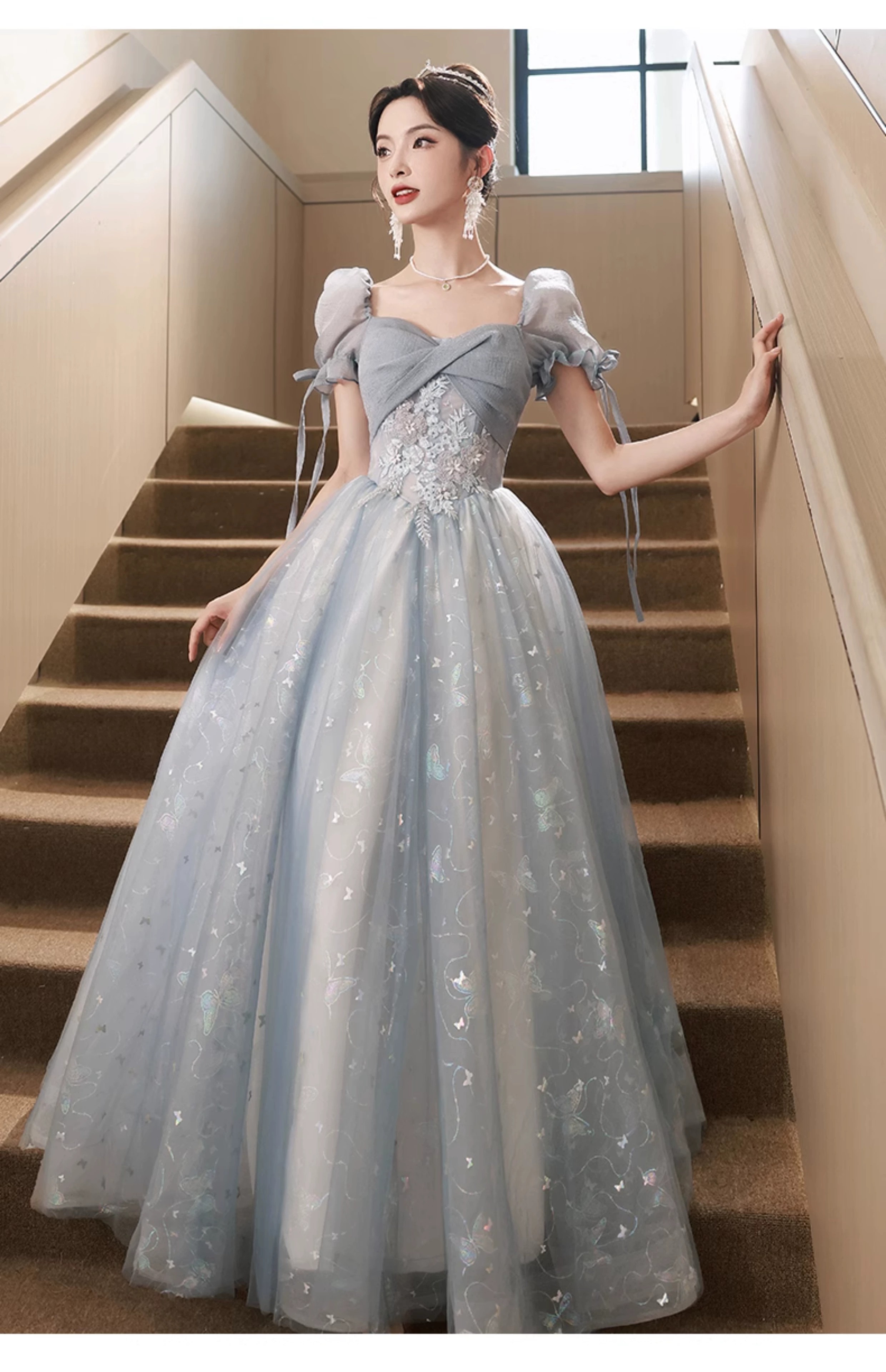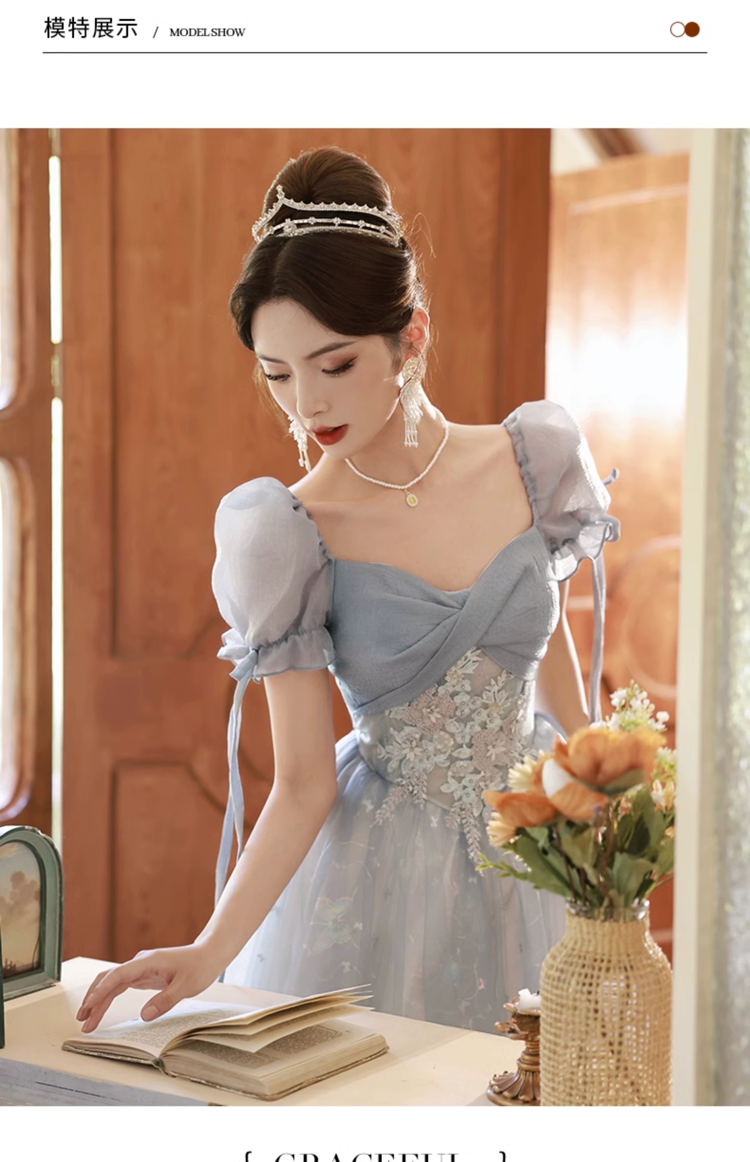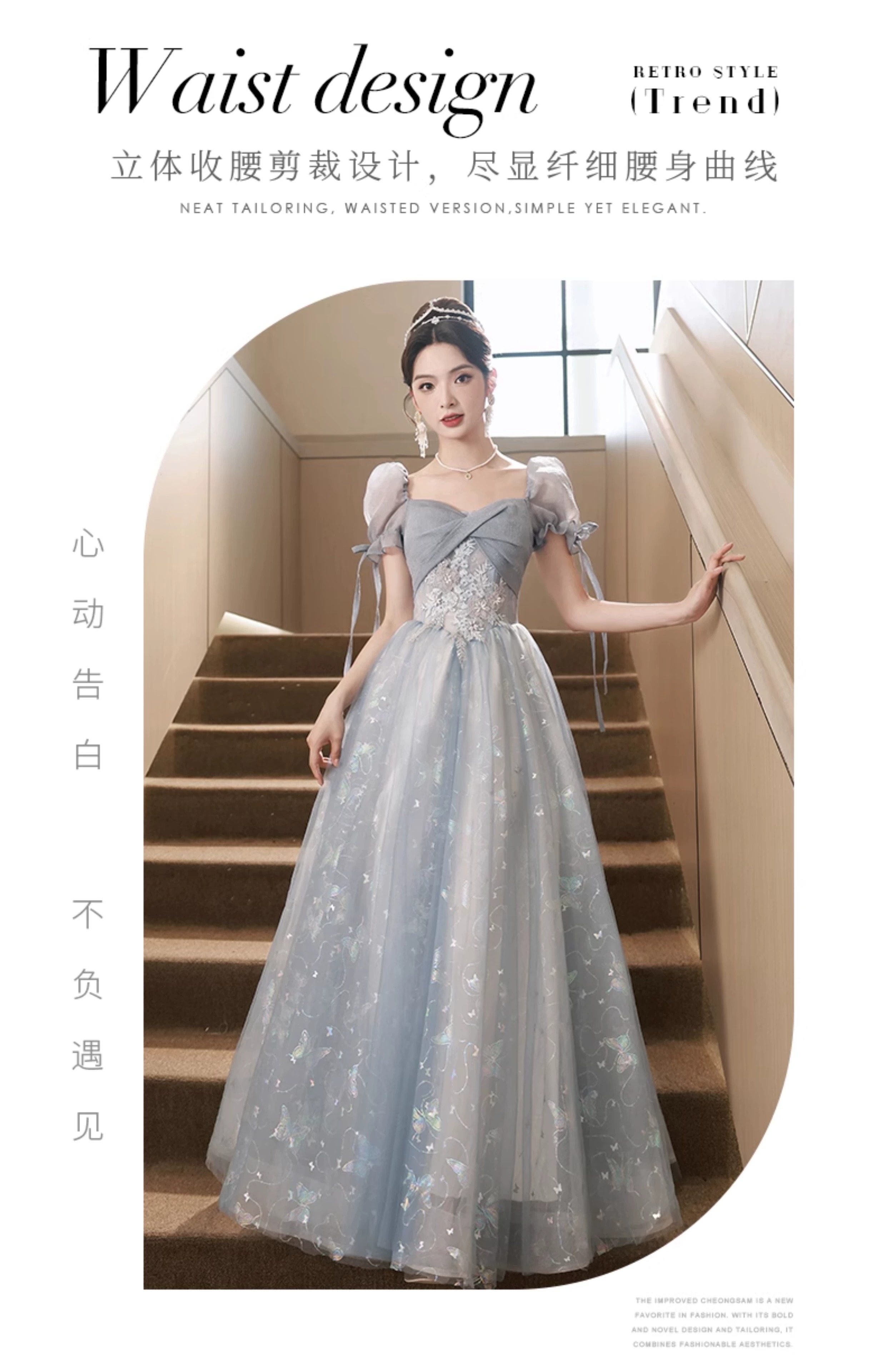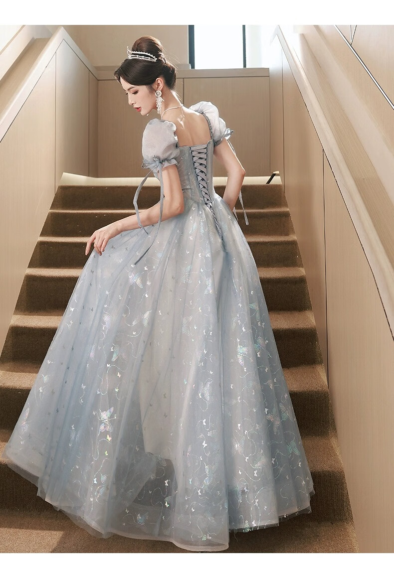 Li Baixin blue evening dress banquet light luxury niche temperament high-end advanced sense art test host adult ceremony for women spring blue M recommended 90-100Jin Jin equals 0.5 kg