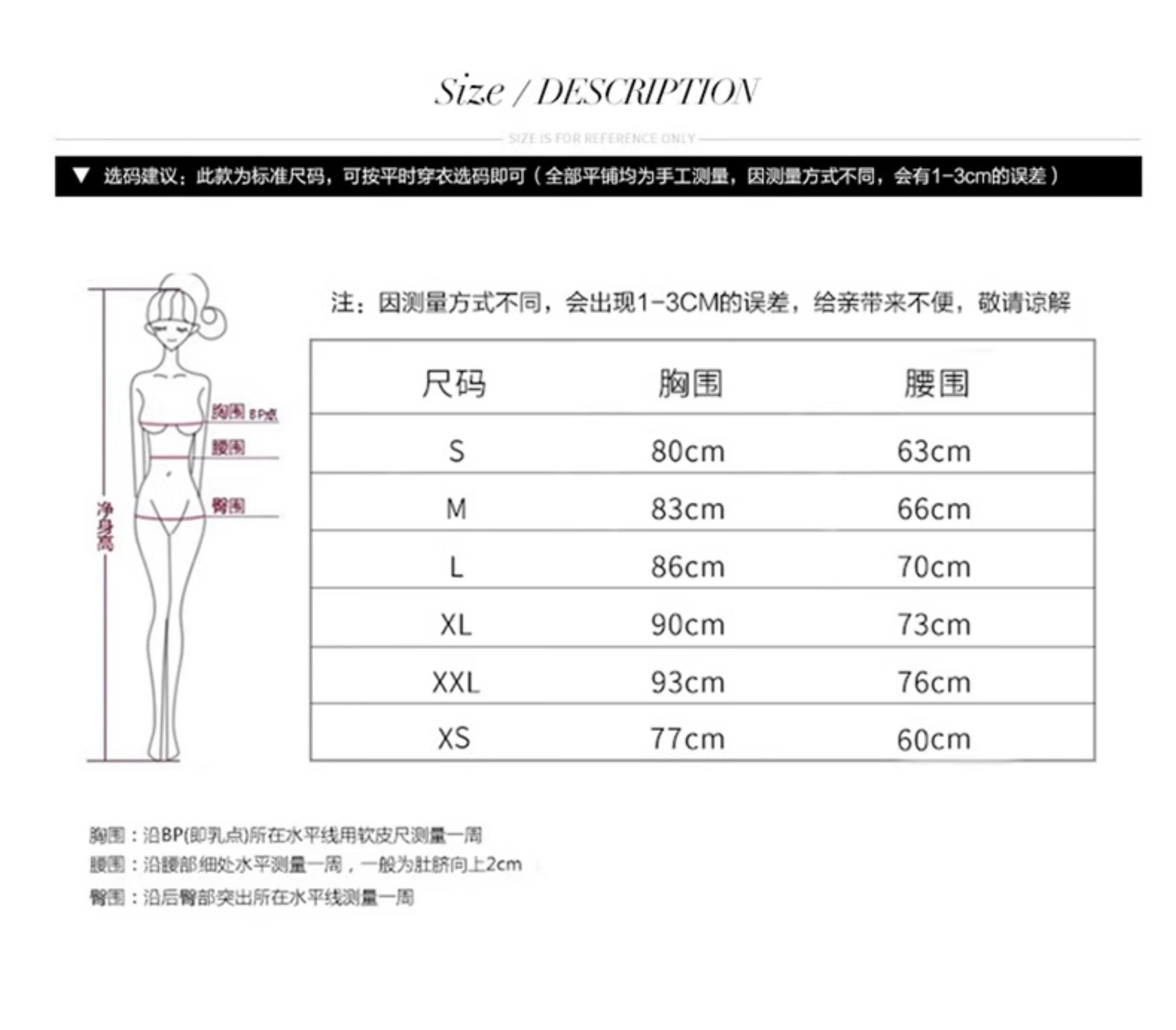 China (cm) 160-165/84-86 165-170 / 88-90 167-172 / 92-96 168-173 / 98-102 170-176 / 106-110