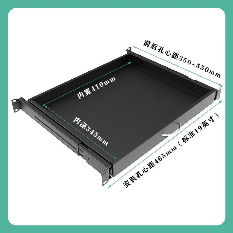 1U drawer keyboard tray network cabinet sliding shelf thickened telescopic tray computer room keyboard and mouse storage rack without holes in the panel 350 deep front and rear hole distance range 350-550 0x0x0cm
