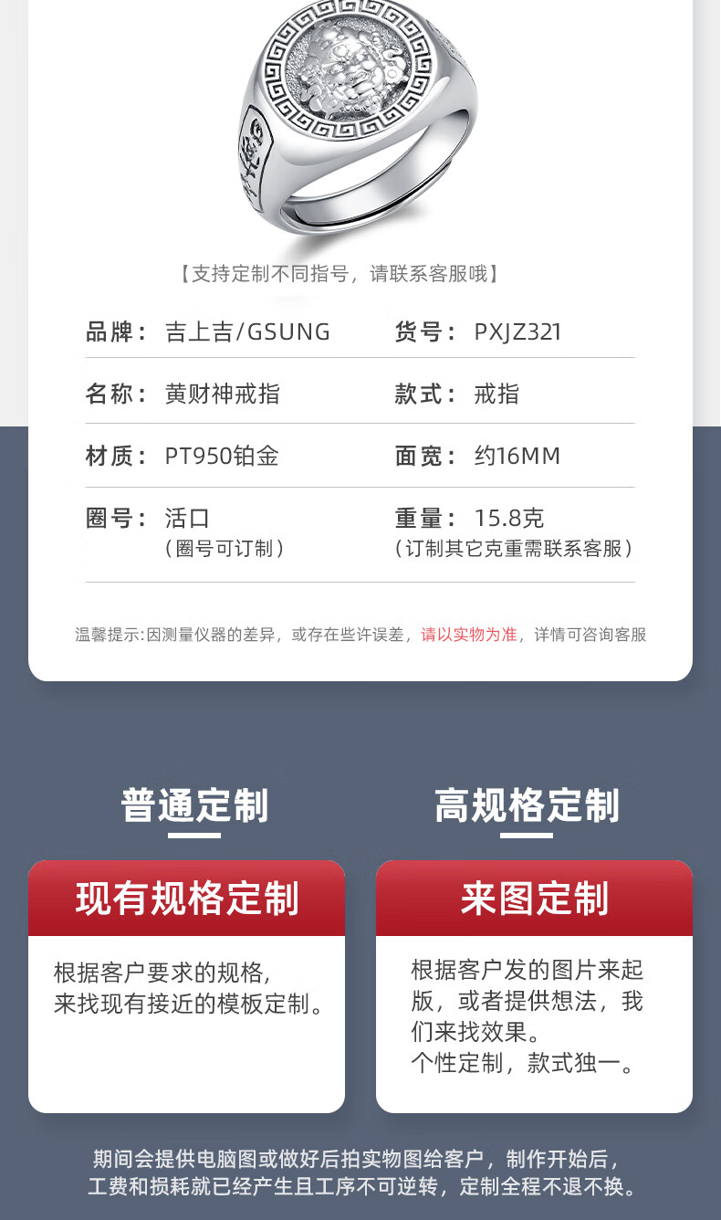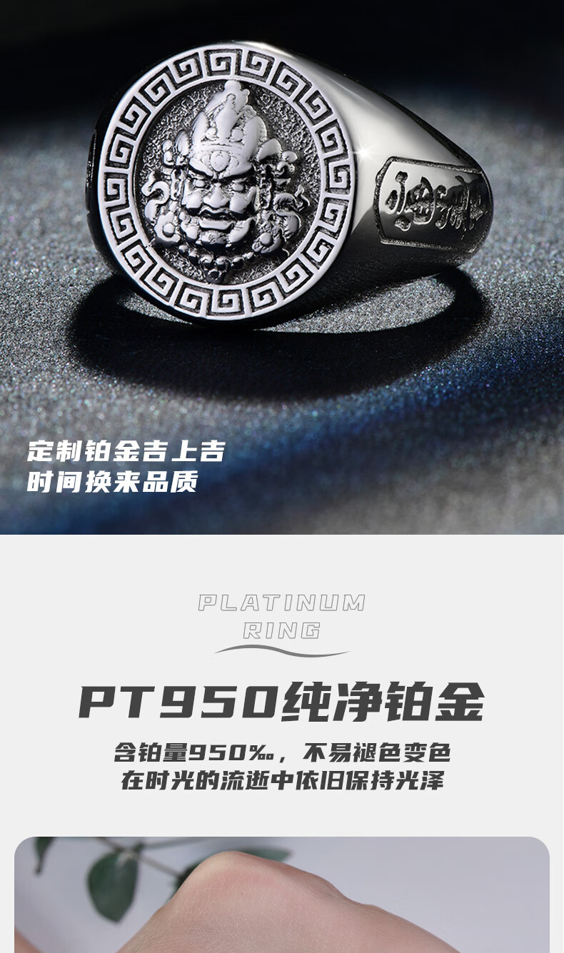 GsunG Platinum Ring Men's PT950 Yellow God of Wealth Live Ring Atmospheric Platinum Men's Ring Opening Order Priced by Gram Contact before bidding