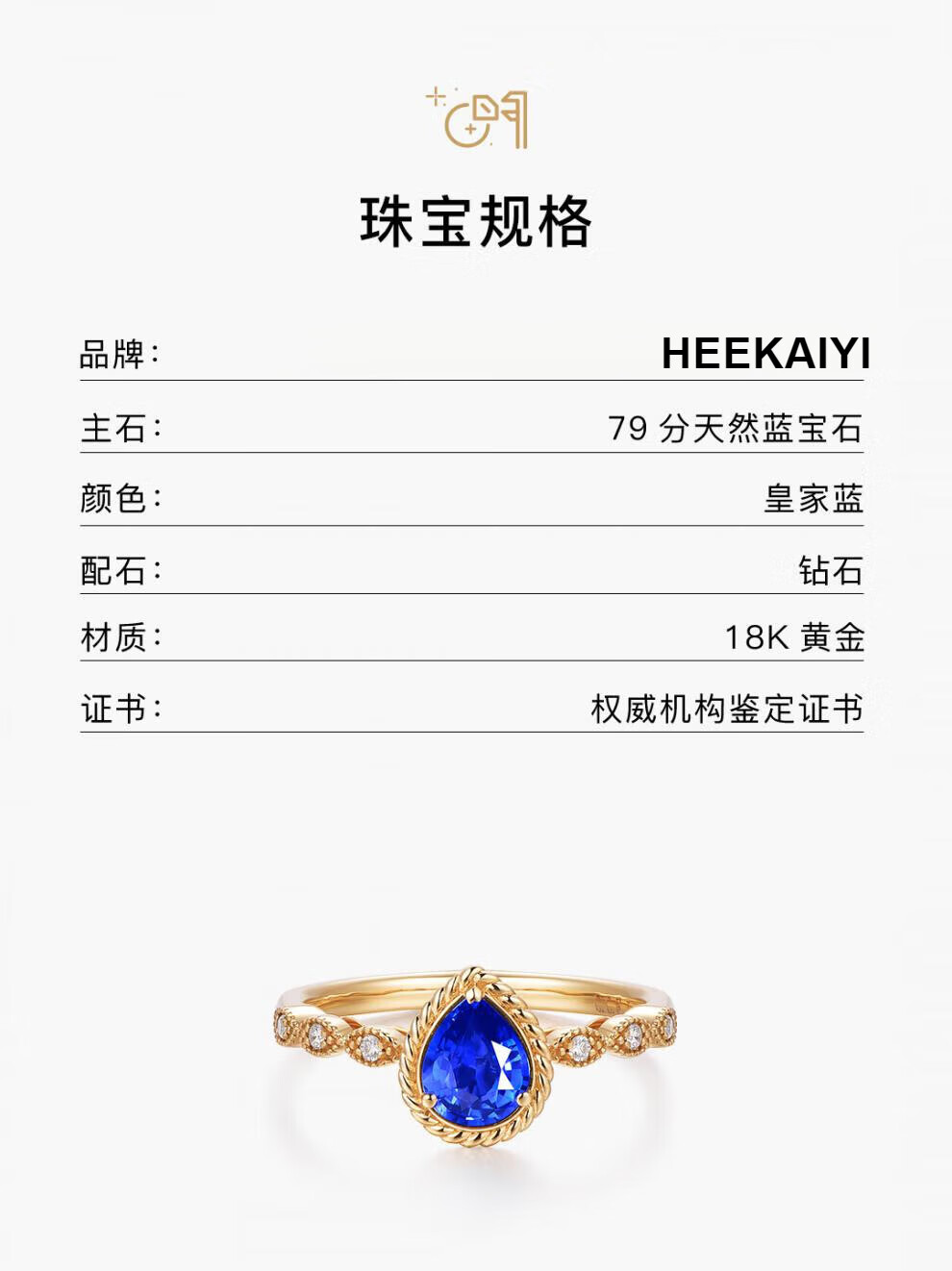 Haikai Ring Women's Blue Sapphire Water Drop Ring 18 Gold Luxury Jewelry Valentine's Day Birthday Gift Sapphire Ring/79 Points